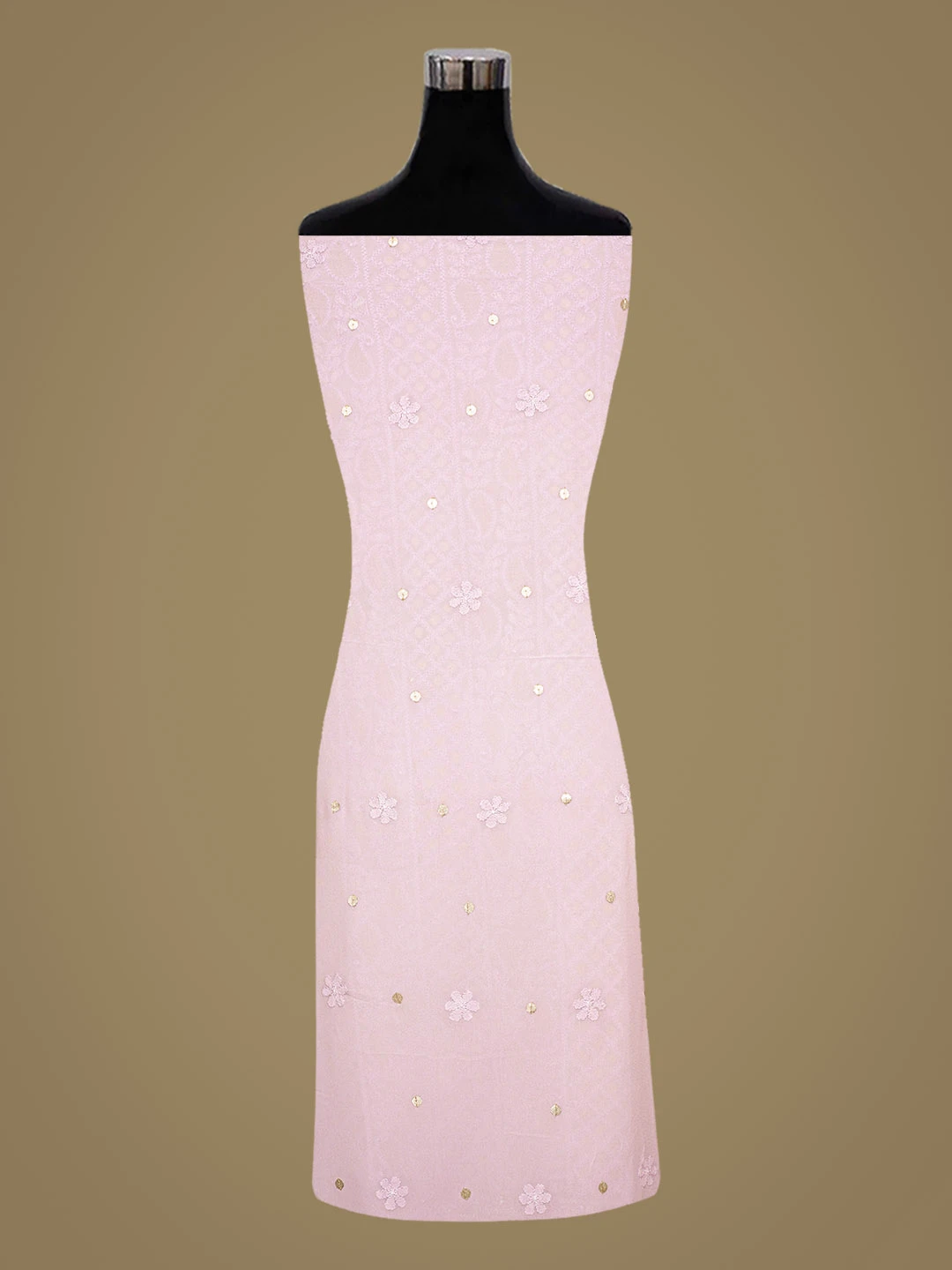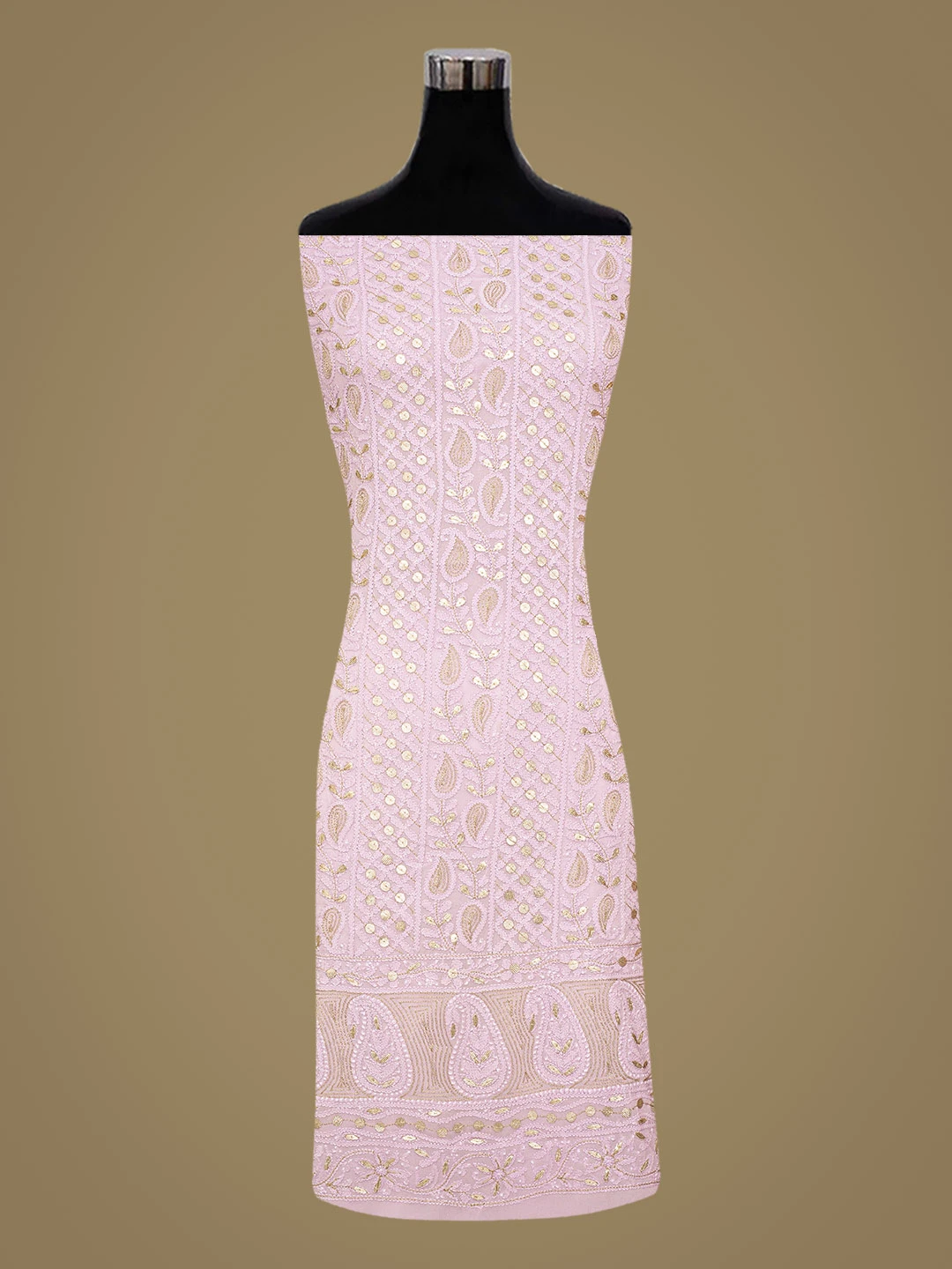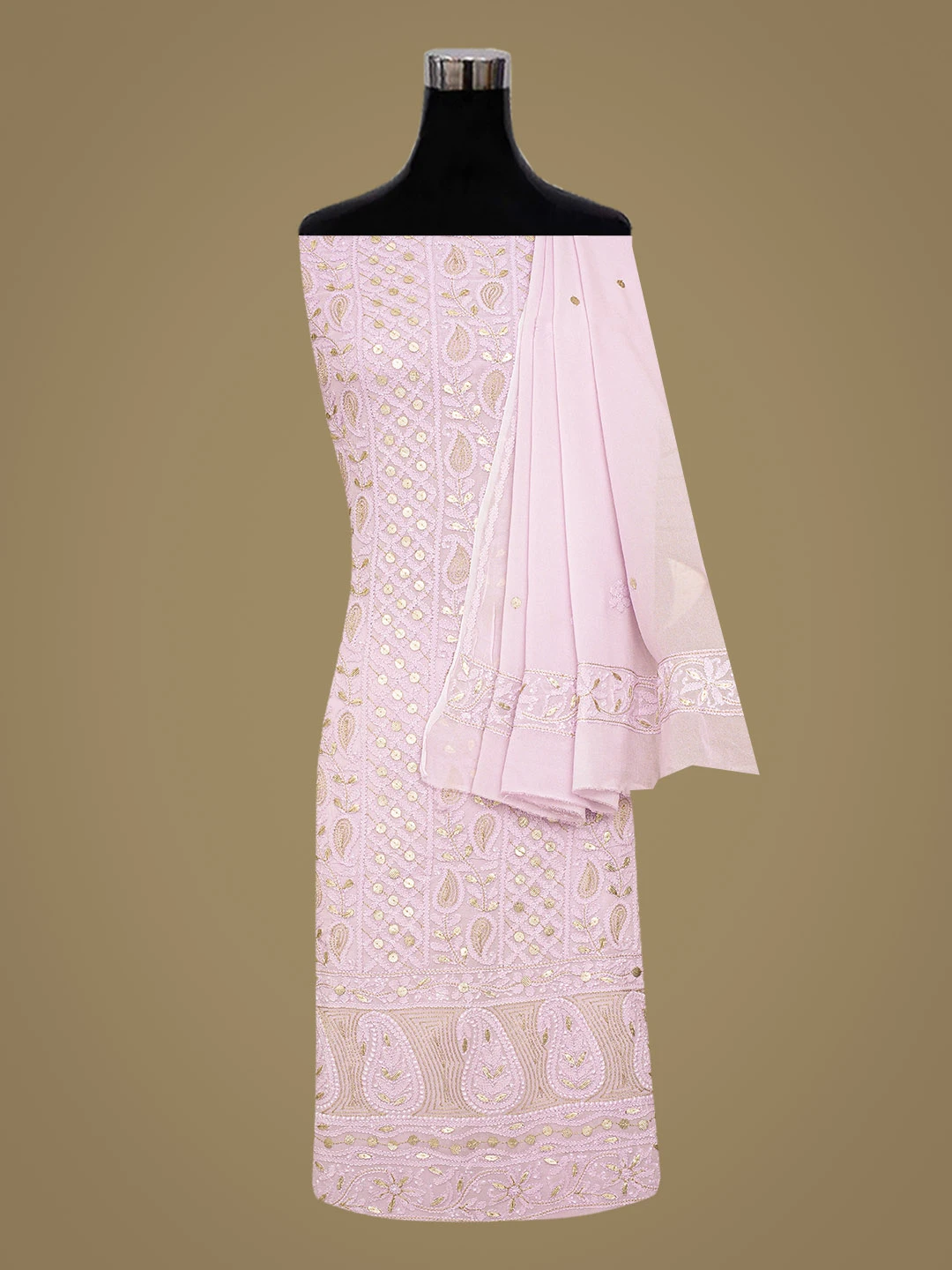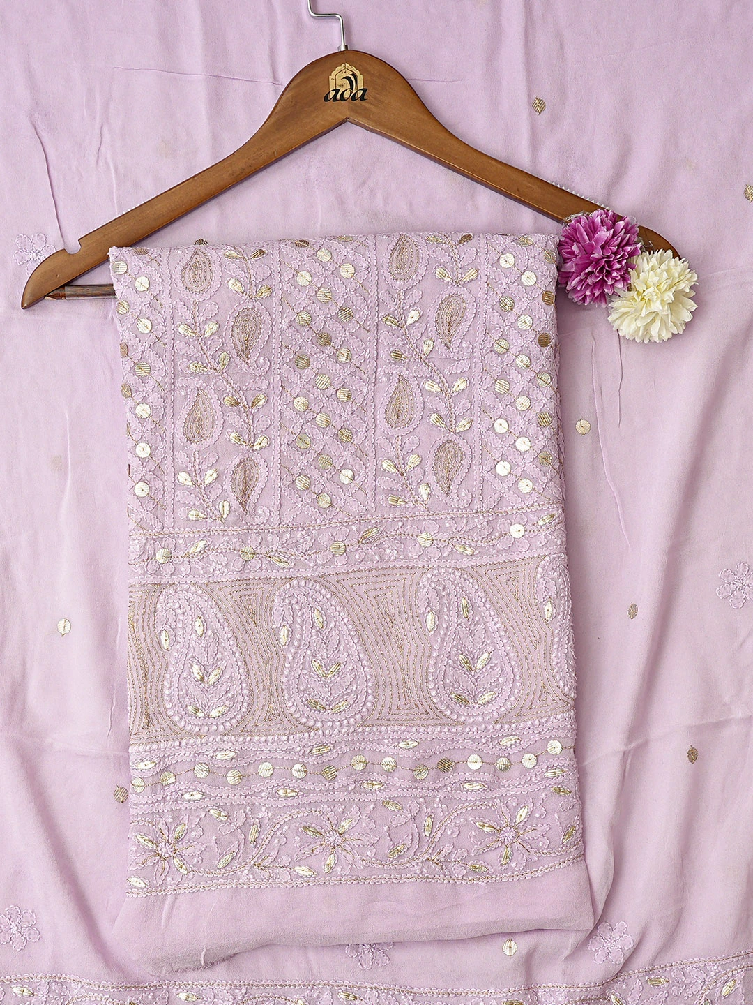Ada Hand Embroidered Mauve Viscose Georgette Lucknowi Chikankari Unstitched Kurta Dupatta Set With Gota Patti Work 01A751208