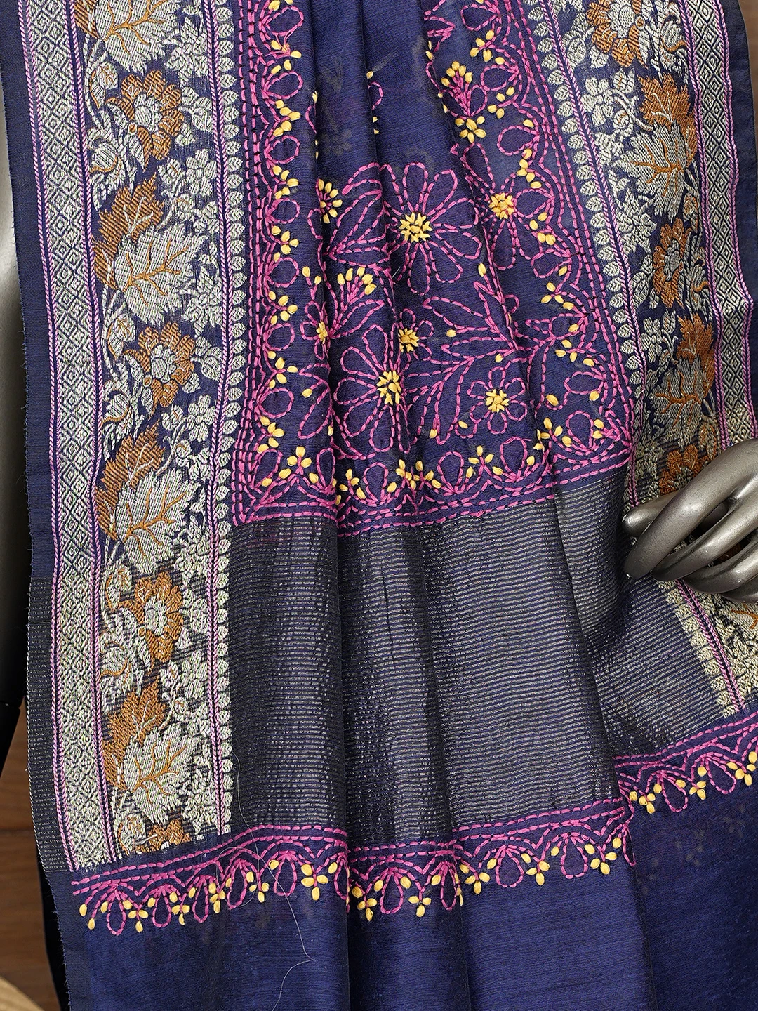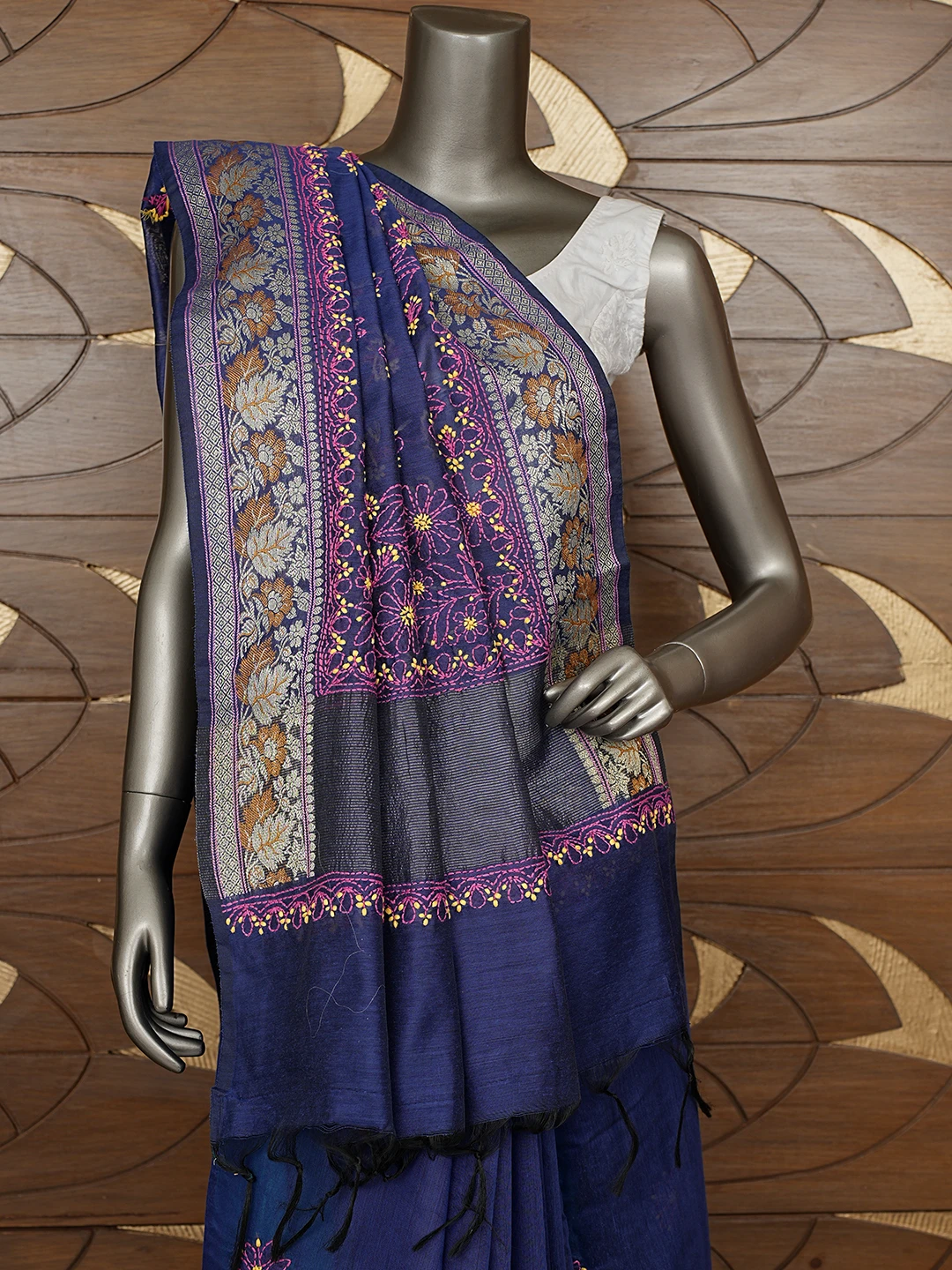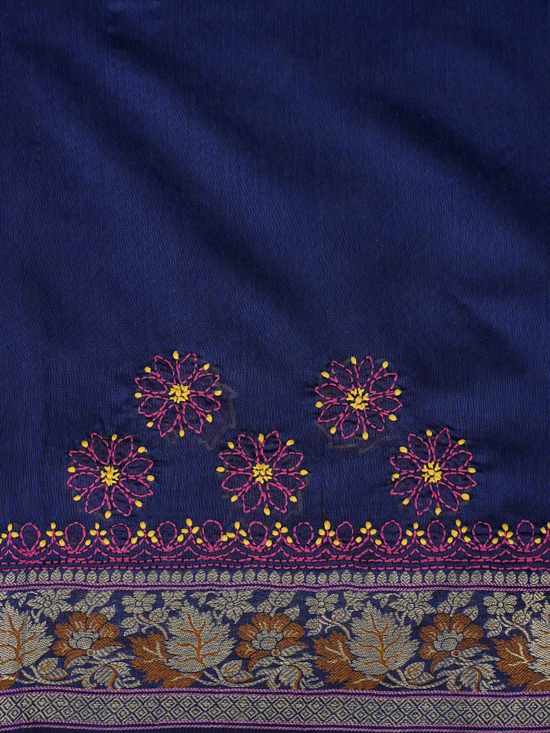 Ada Hand Embroidered Navy Blue Chanderi Lucknowi Chikankari Saree With Blouse 01A877305