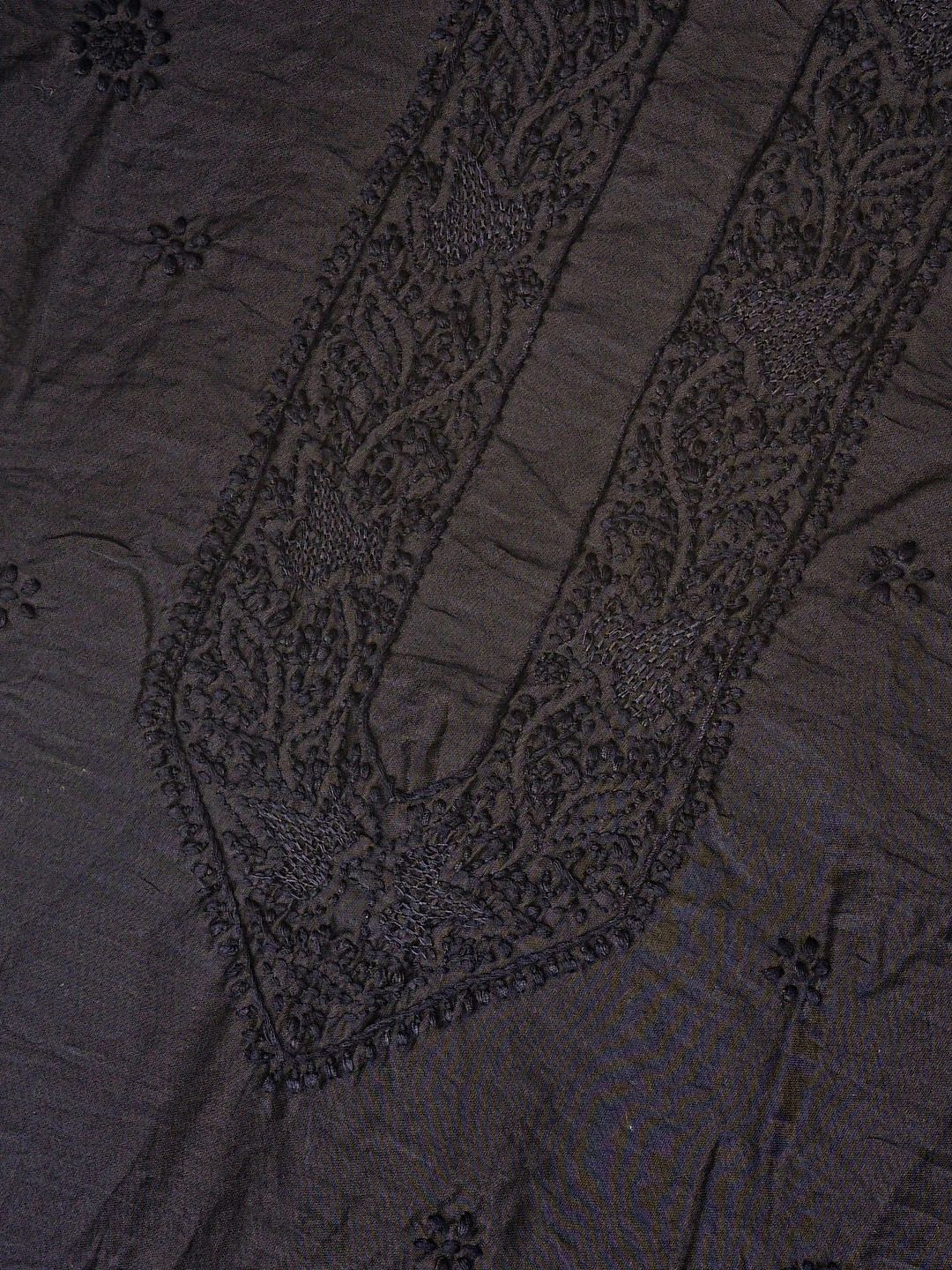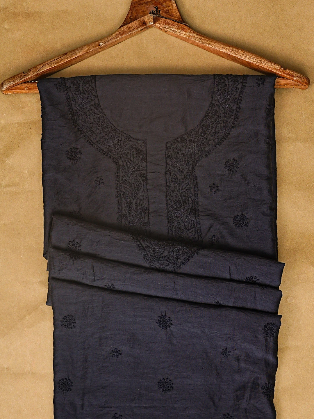 Ada Hand Embroidered Navy Blue Chanderi Lucknowi Chikankari Unstitched Men's Kurta Piece 01A866031