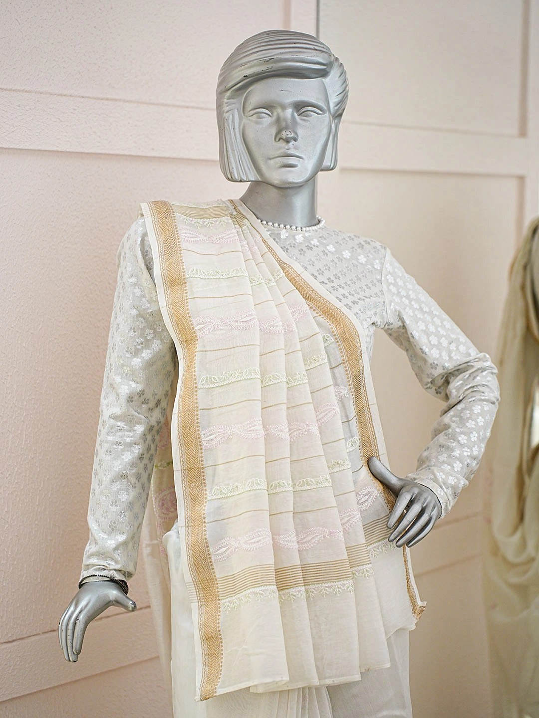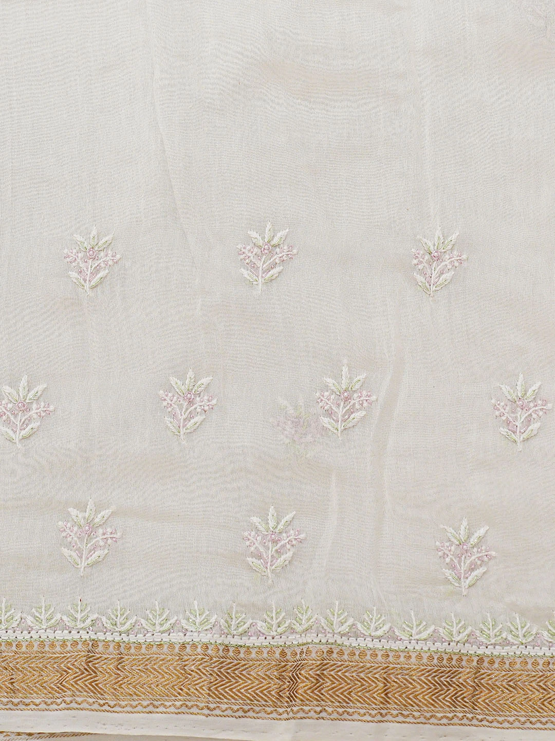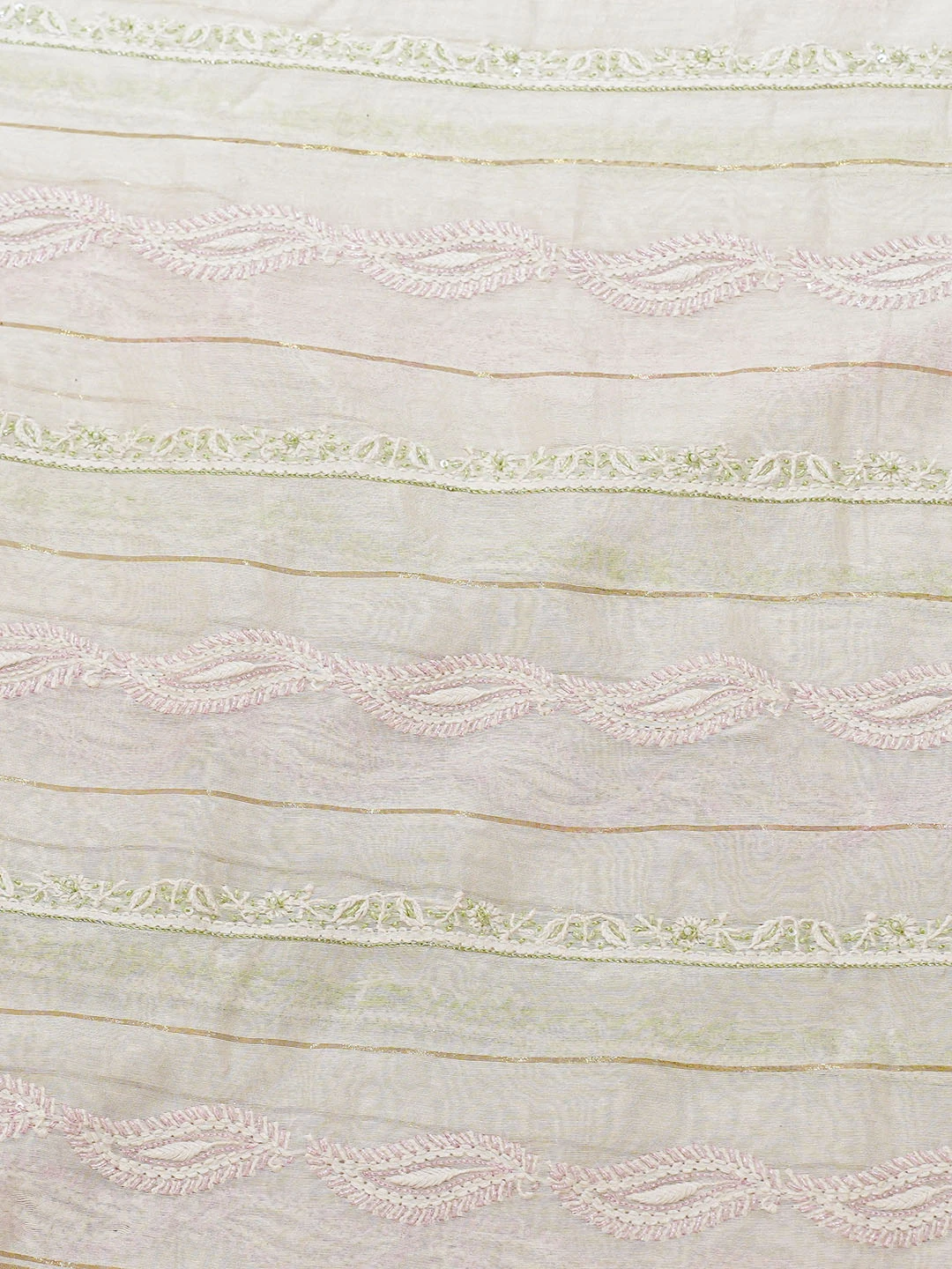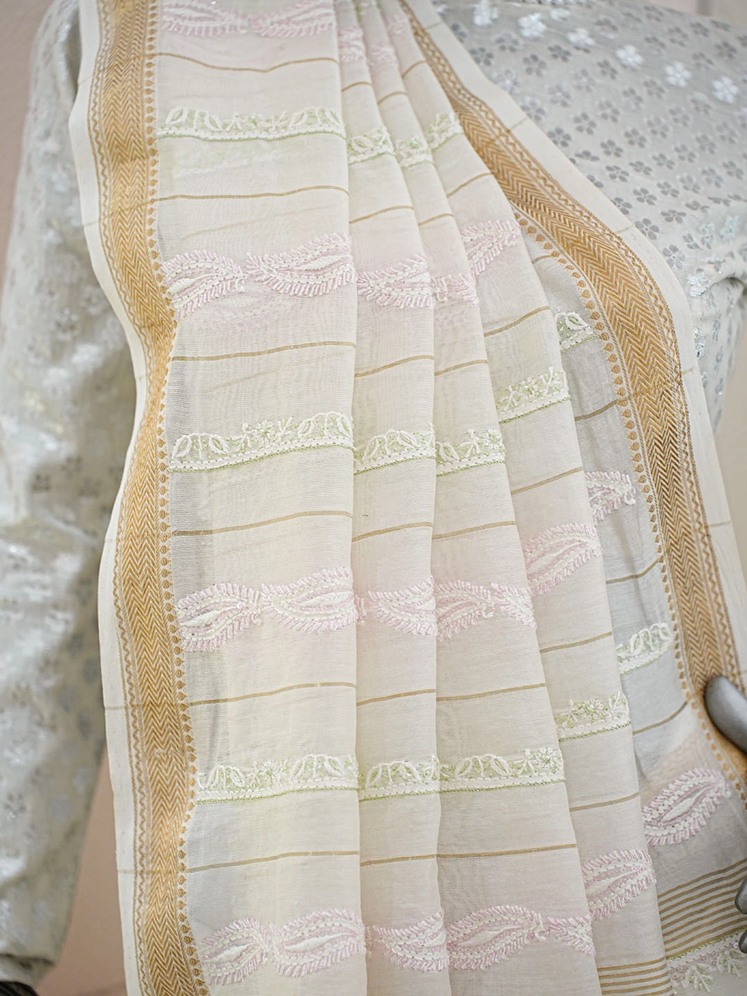 Ada Hand Embroidered Off White Chanderi Lucknowi Chikankari Saree And Blouse With Cutdana Work 01A681217