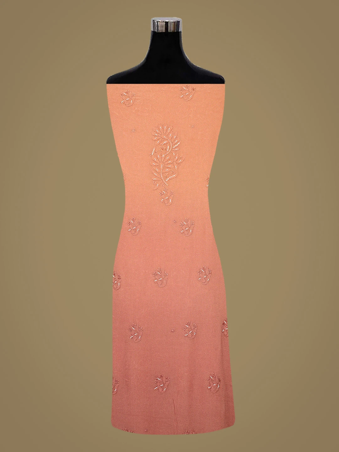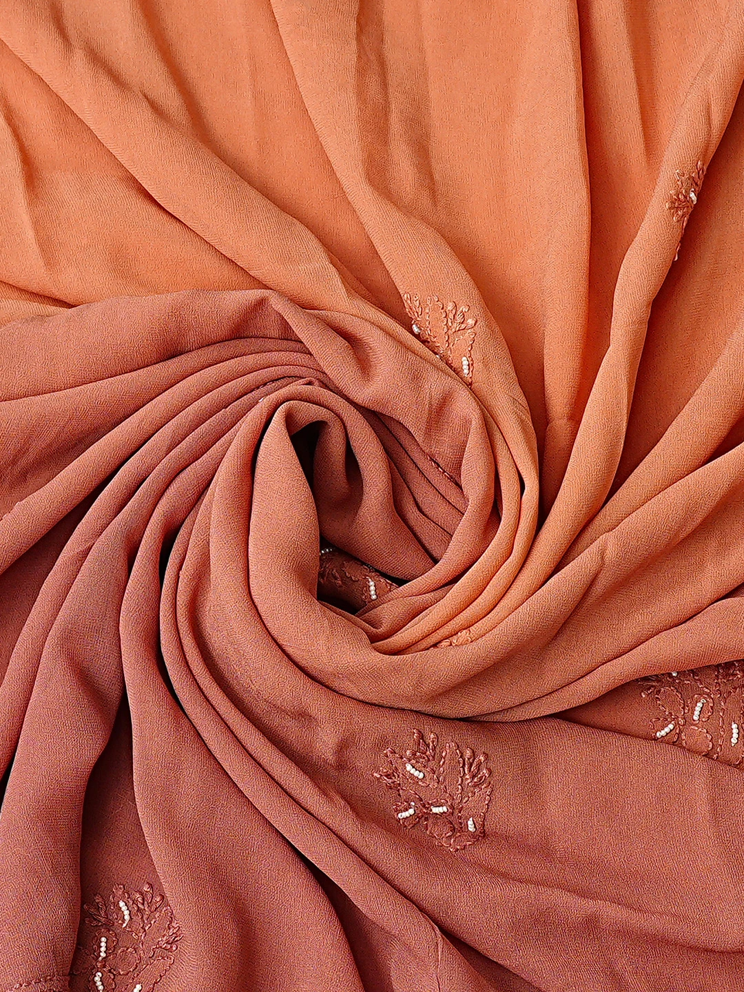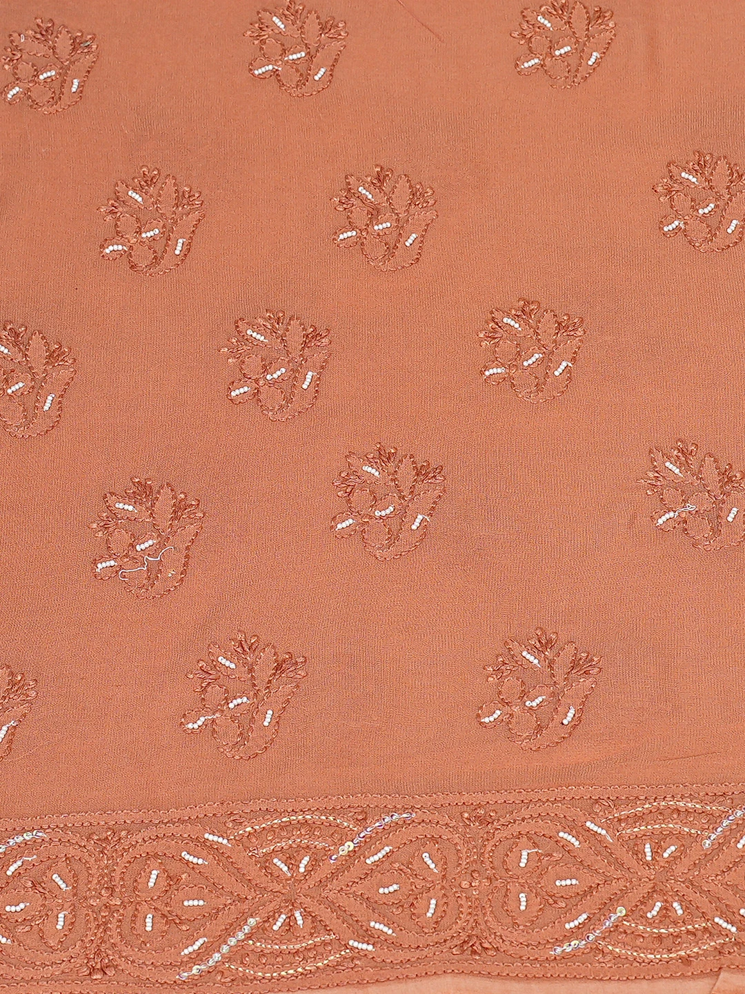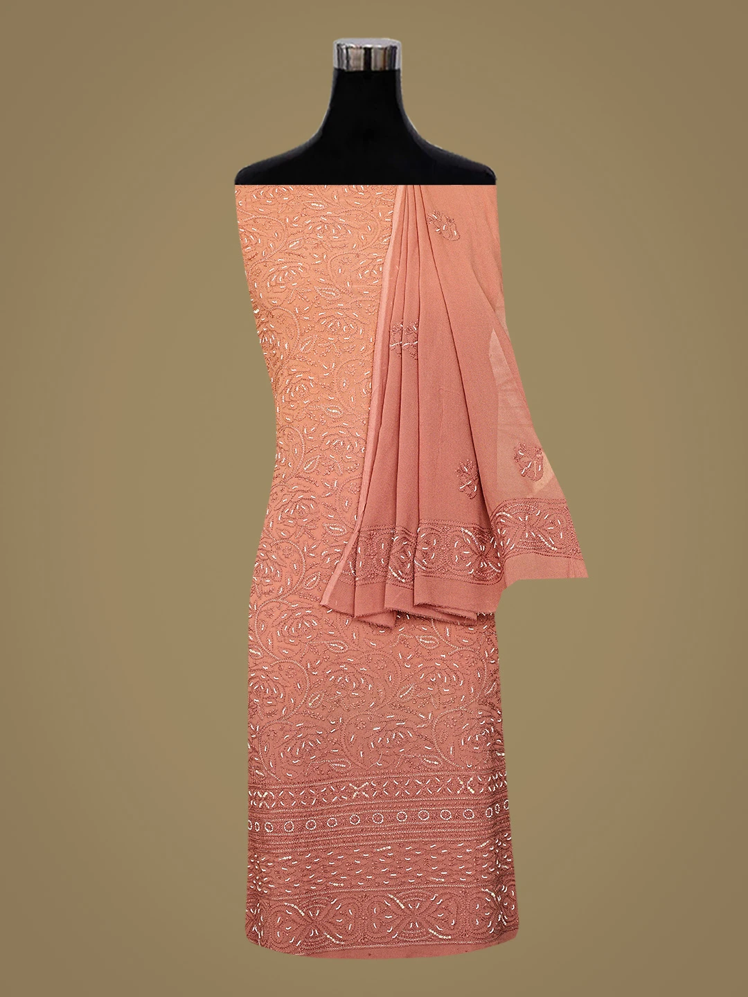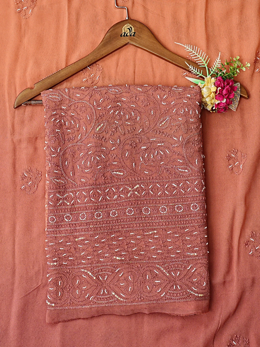 Ada Hand Embroidered Ombre Shade Of Brown Viscose Georgette Lucknowi Chikankari Unstitched Kurta Dupatta Set With Pearl Work 01A125213
