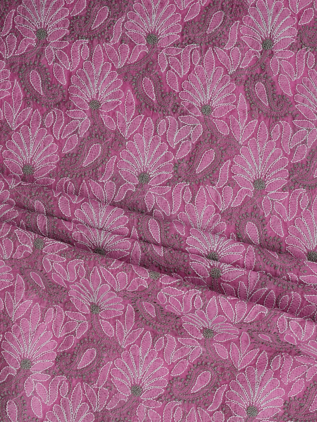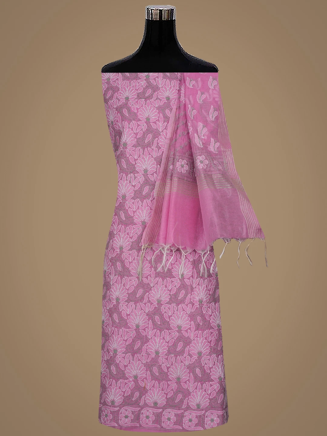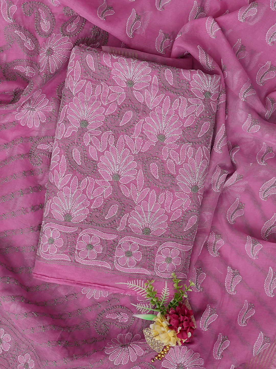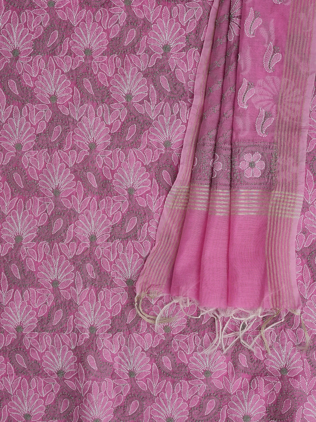 Ada Hand Embroidered Onion Pink Chanderi Lucknowi Chikankari Unstitched Kurta Dupatta Set 01A870972