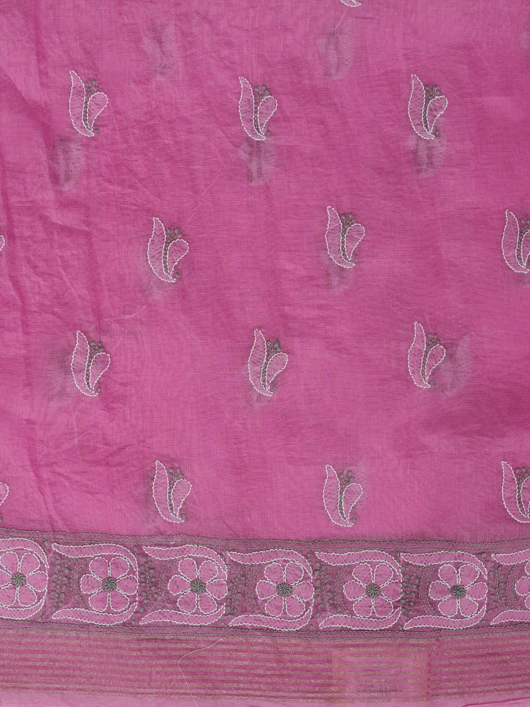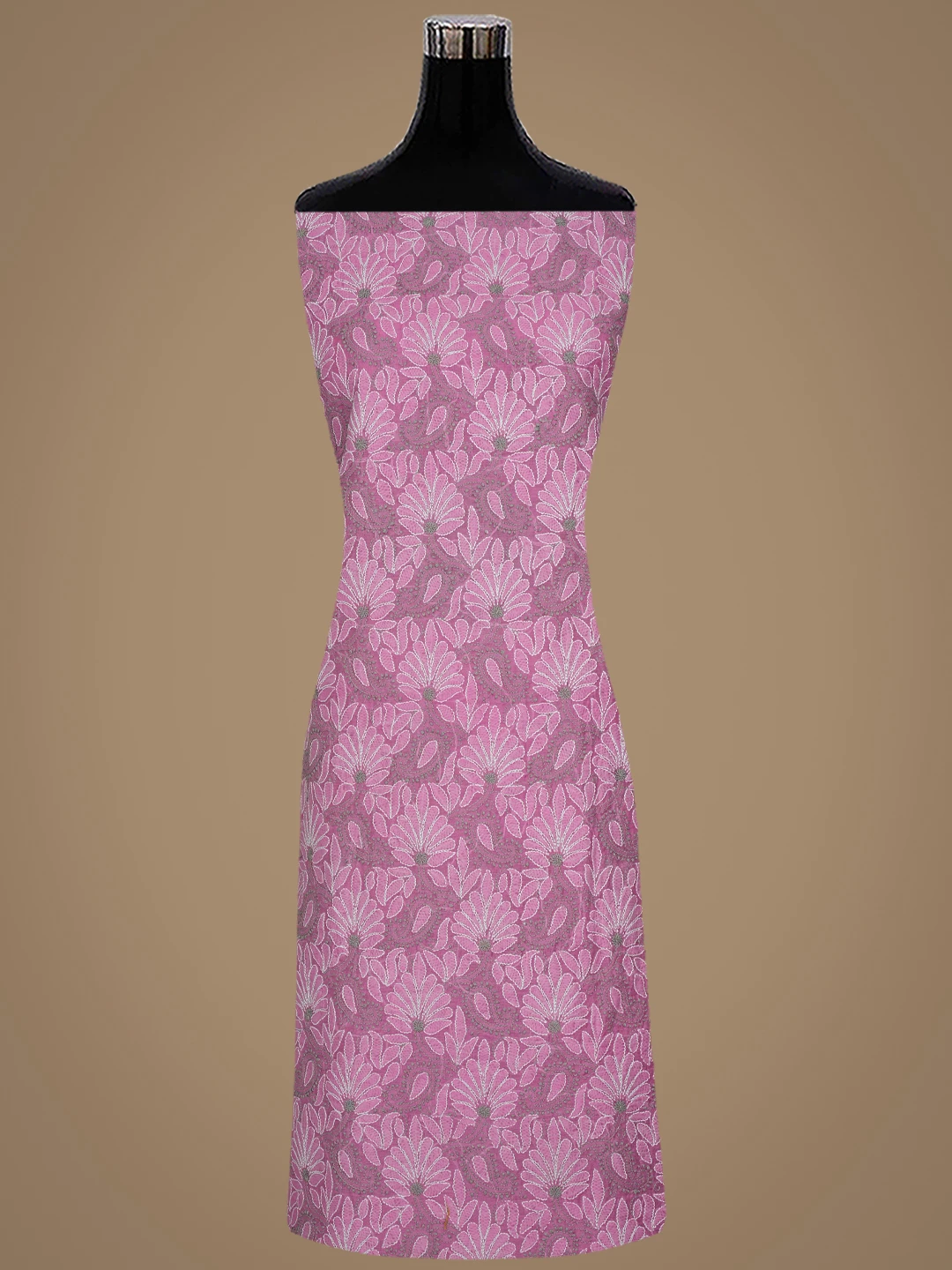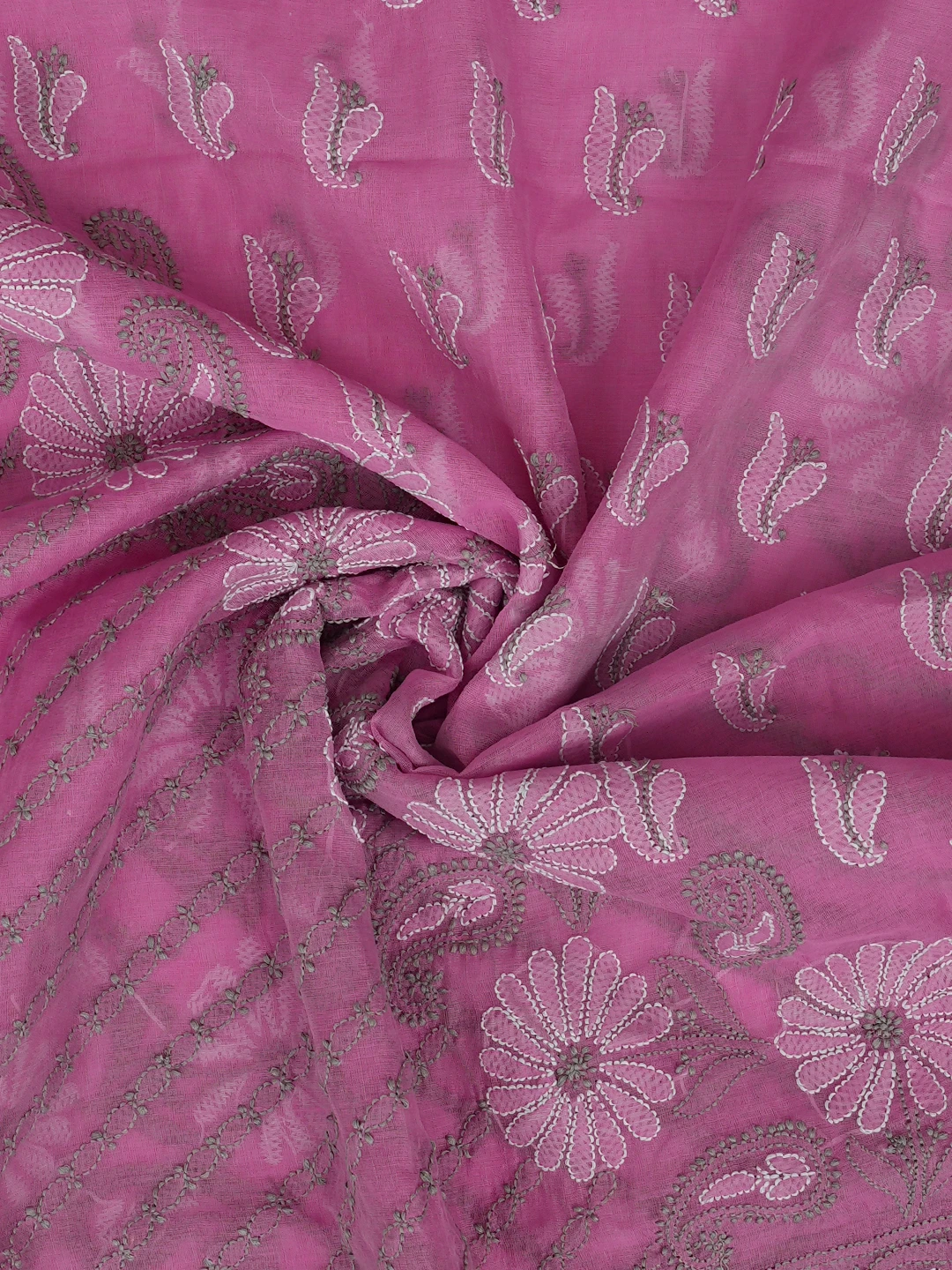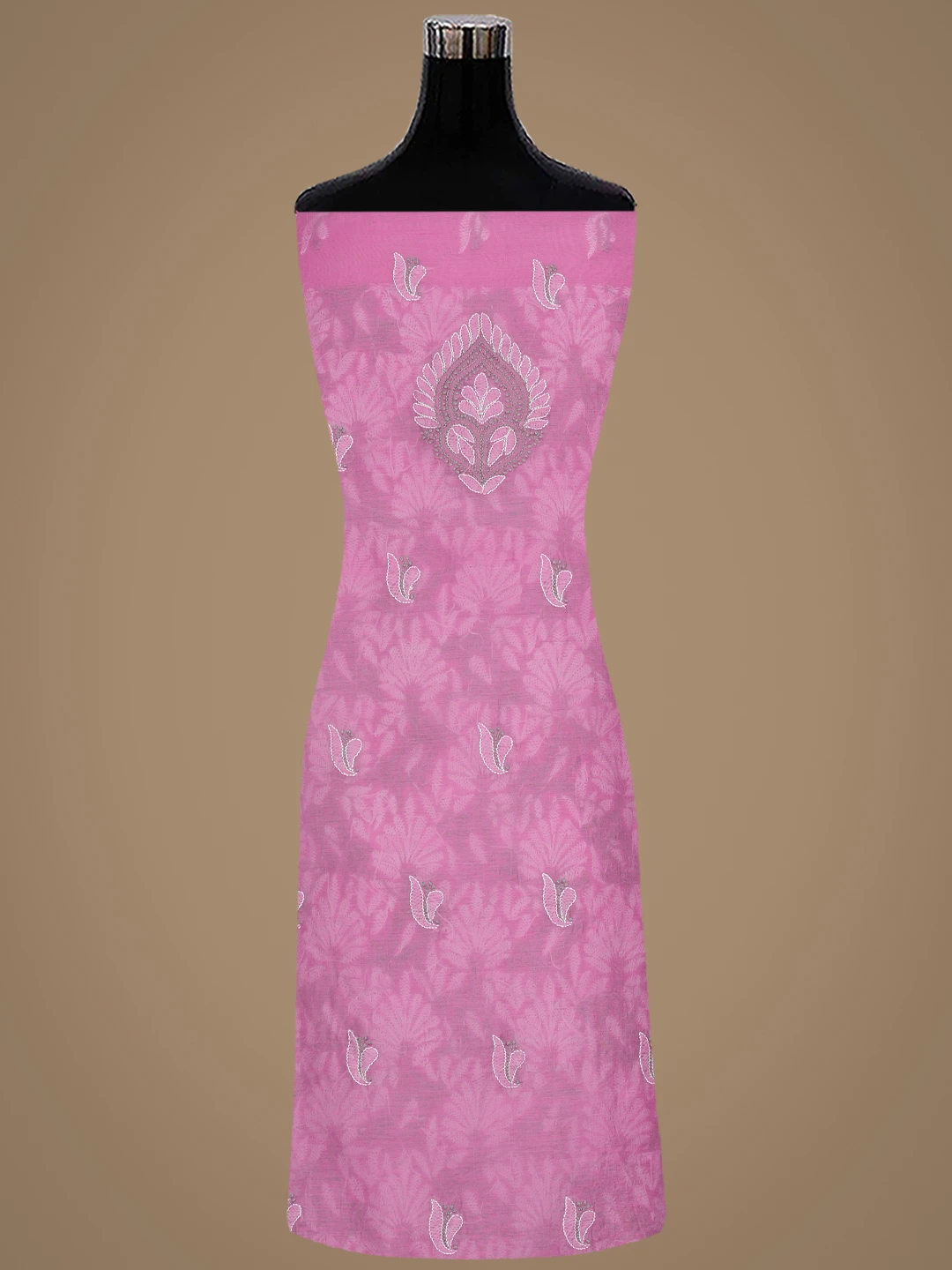 Ada Hand Embroidered Onion Pink Chanderi Lucknowi Chikankari Unstitched Kurta Dupatta Set 01A870972