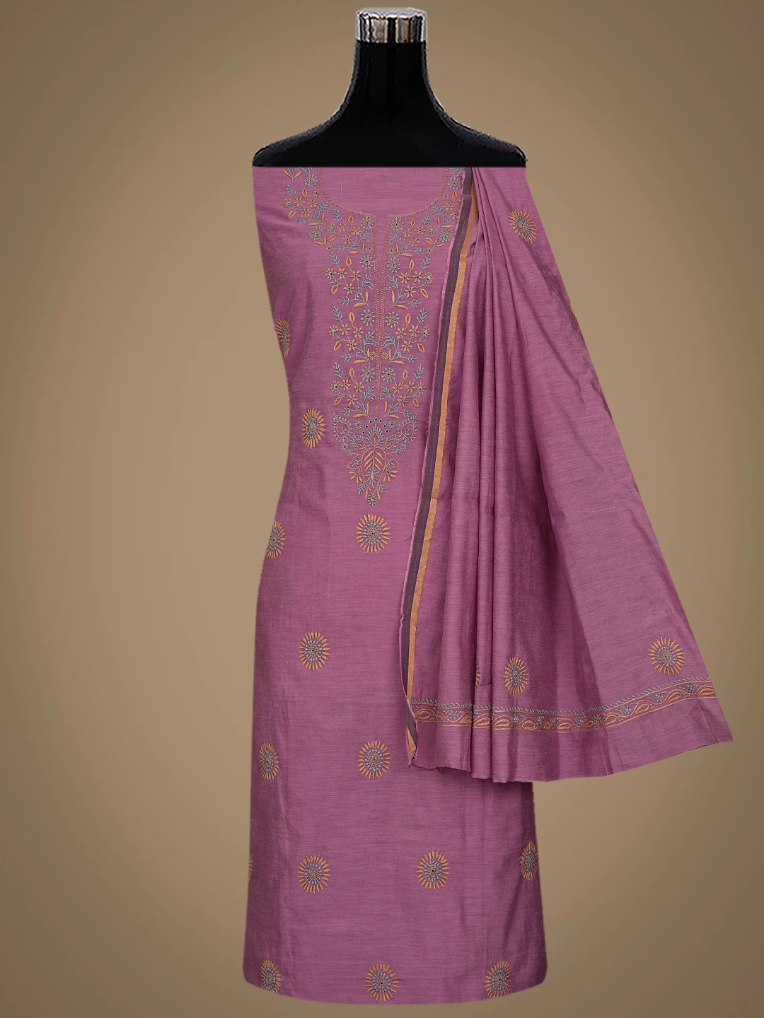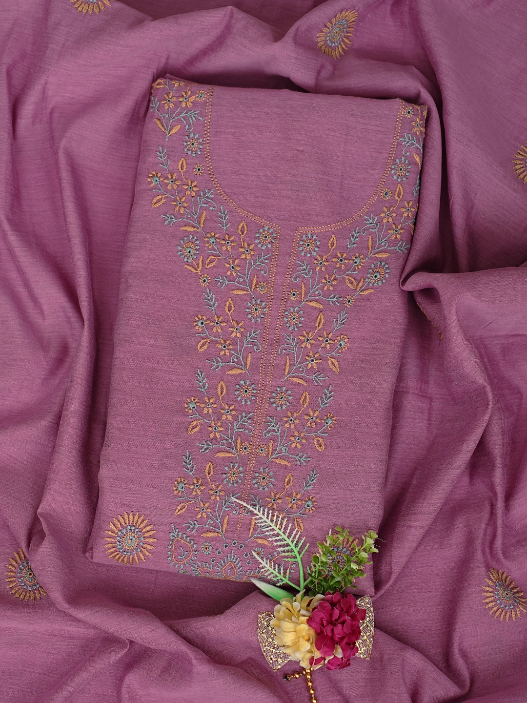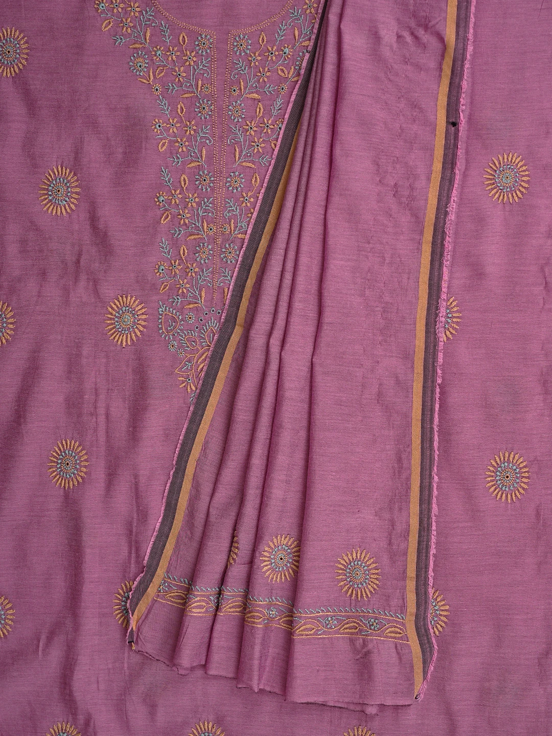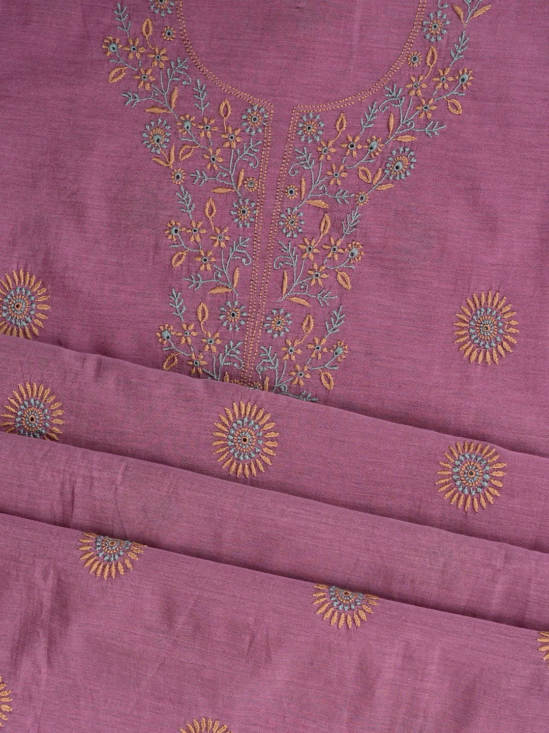 Ada Hand Embroidered Onion Pink Chanderi Lucknowi Chikankari Untitched Kurta Dupatta Set 01A841569