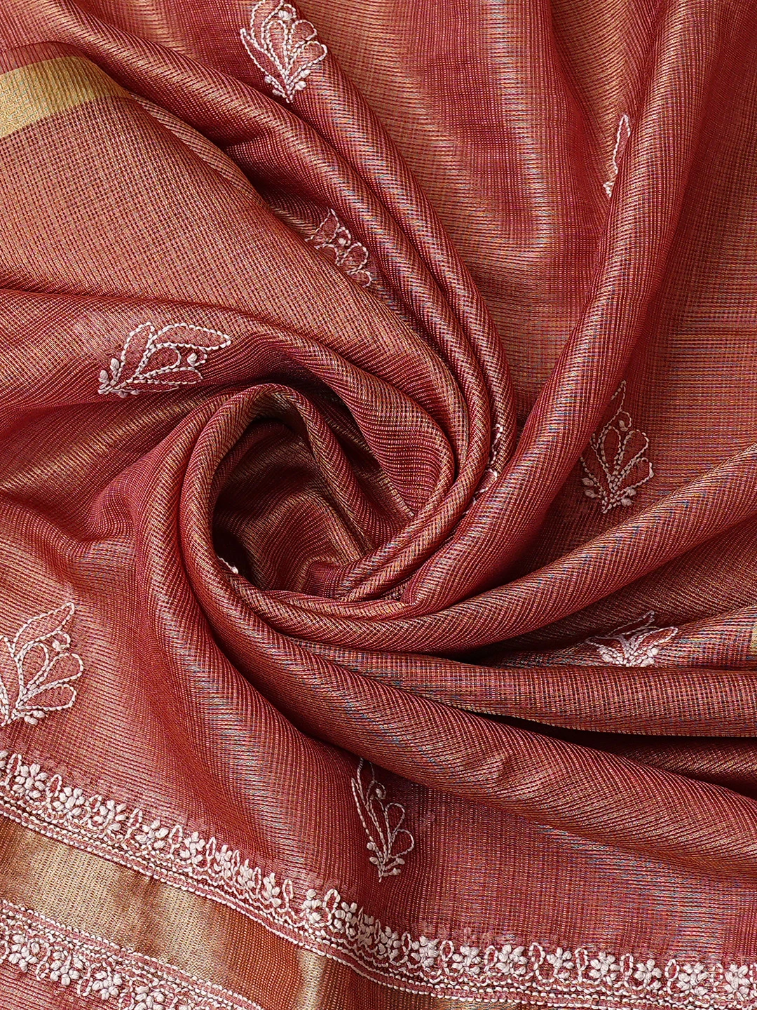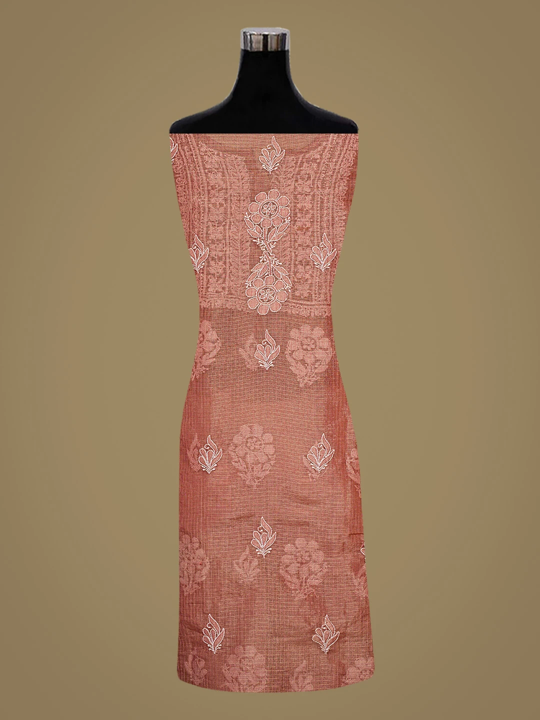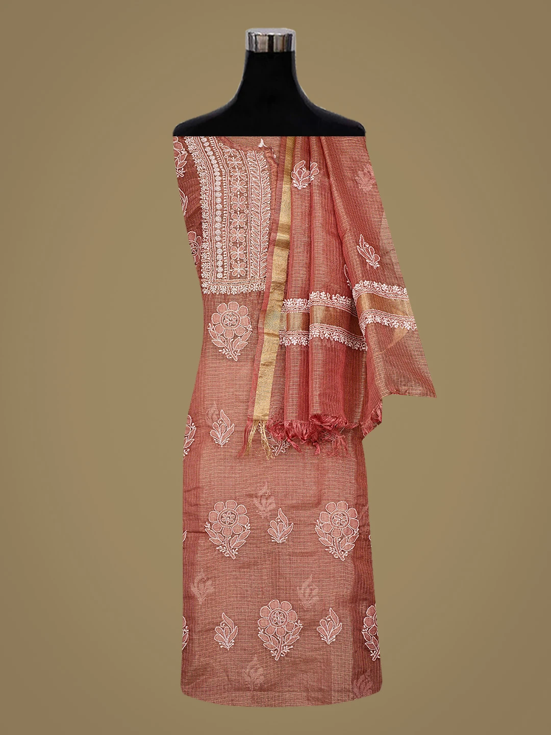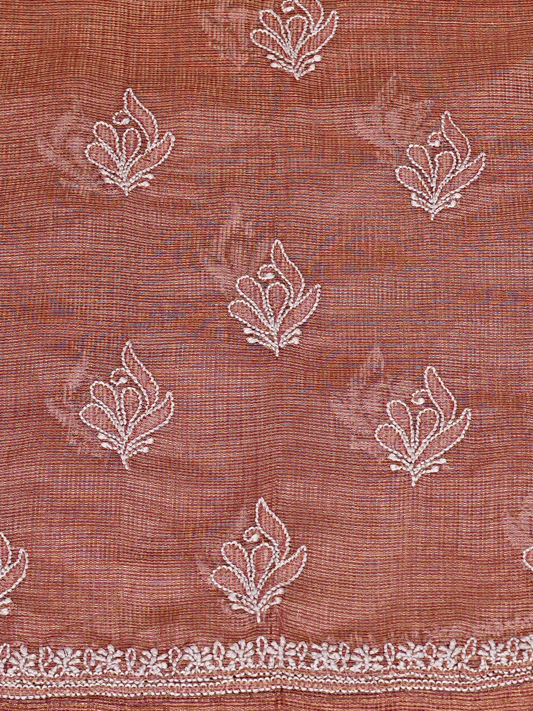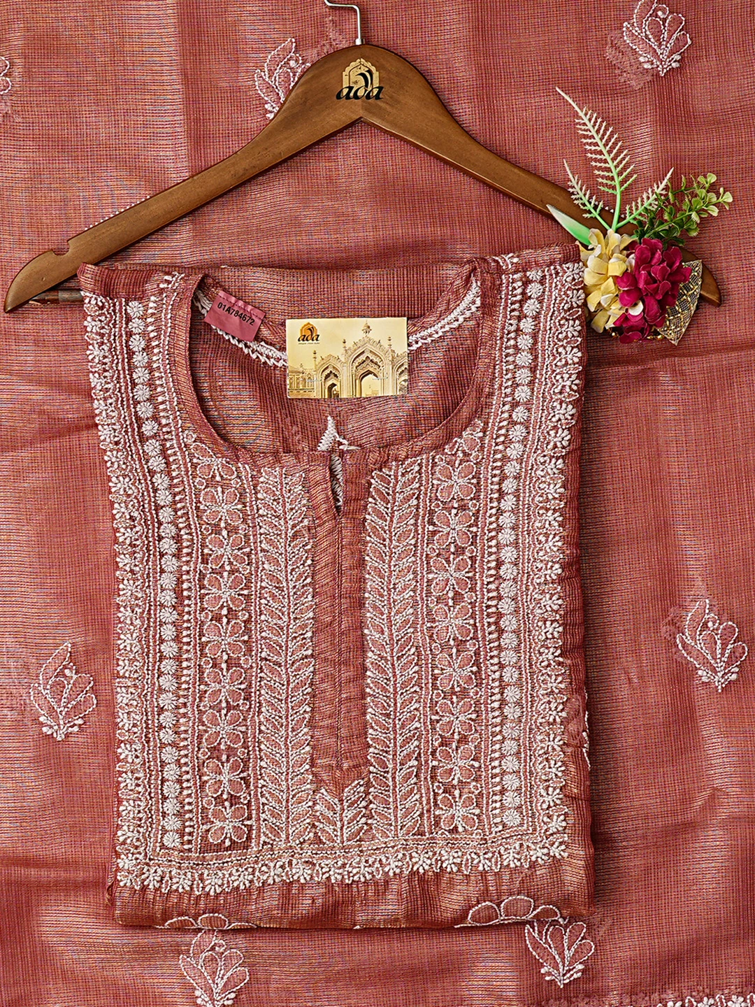 Ada Hand Embroidered Onion Pink Tissue Lucknowi Chikankari Semi-stitched Kurta Dupatta Set 01A784672