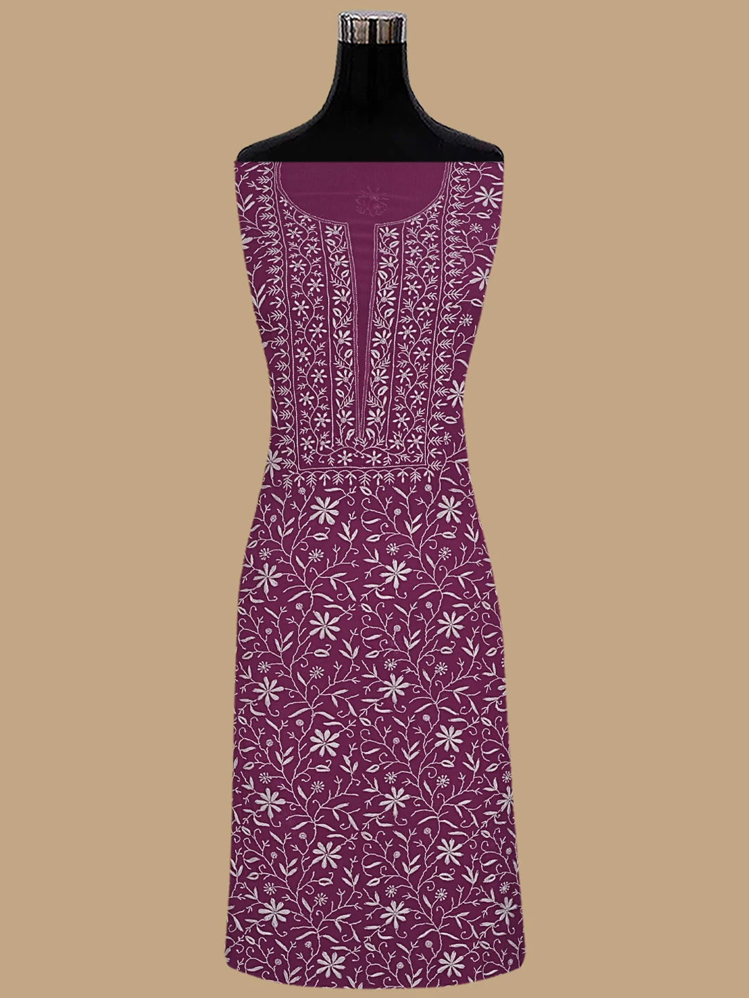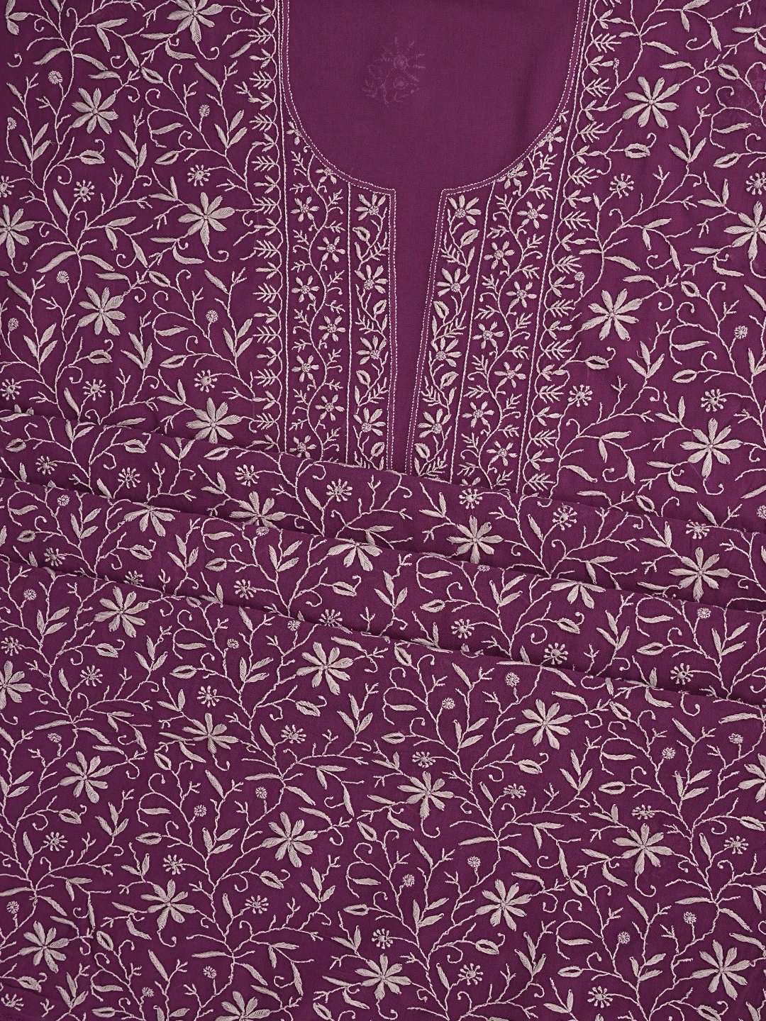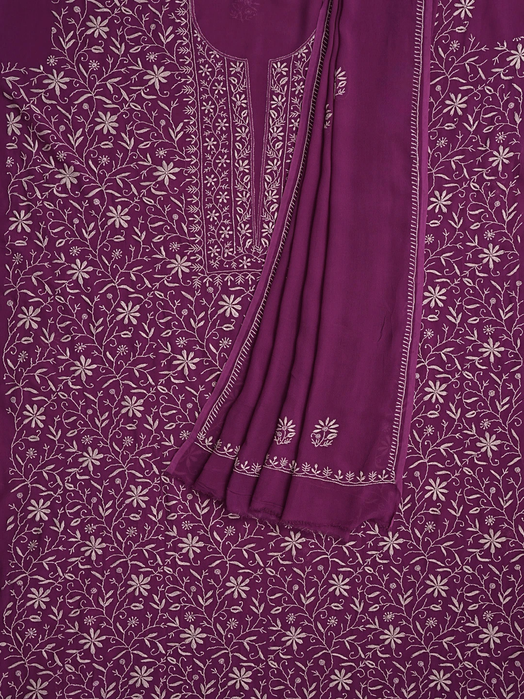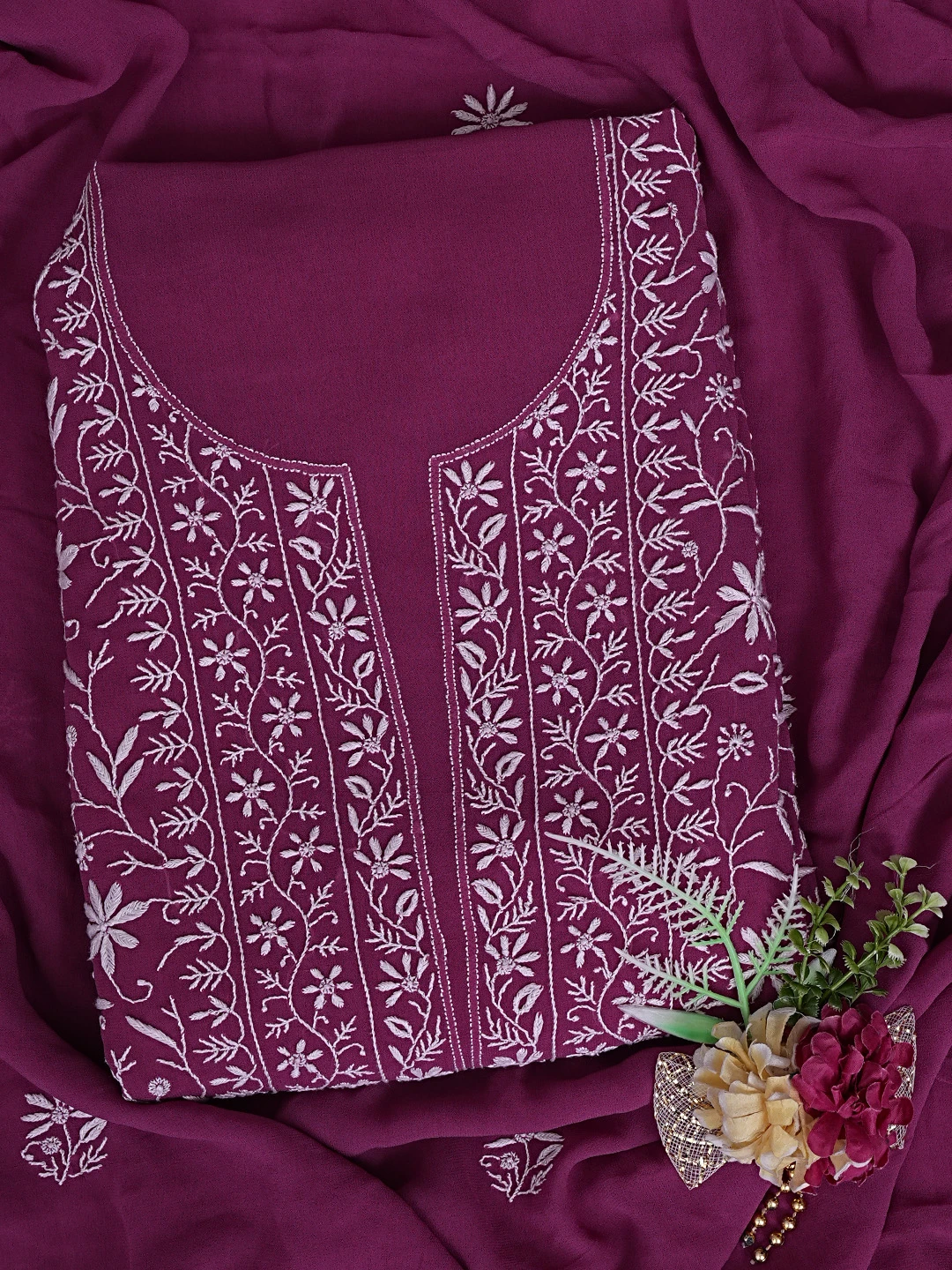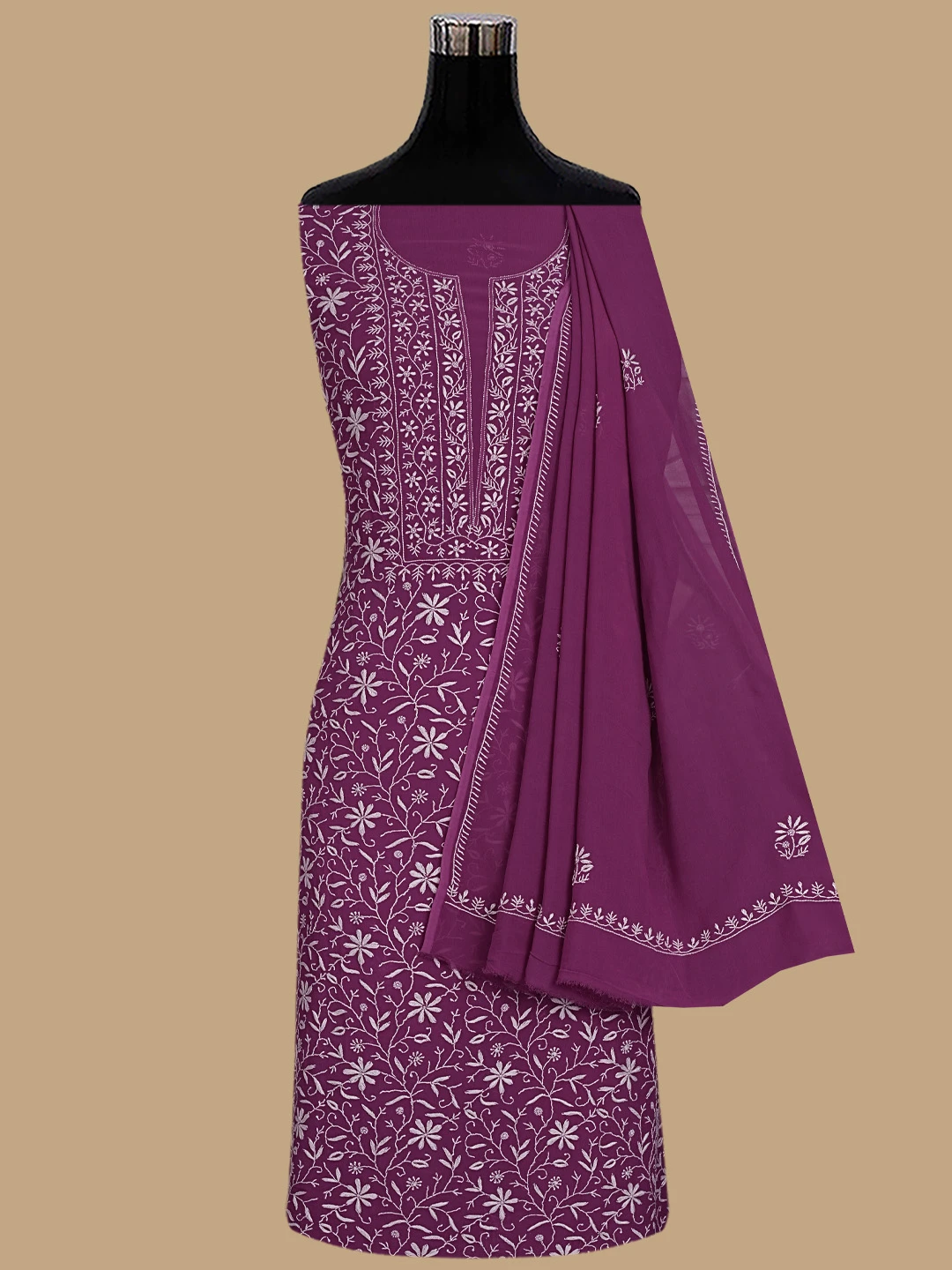 Ada Hand Embroidered Onion Pink Viscose Georgette Lucknowi Chikankari Unstitched Kurta Dupatta Set 01A856659