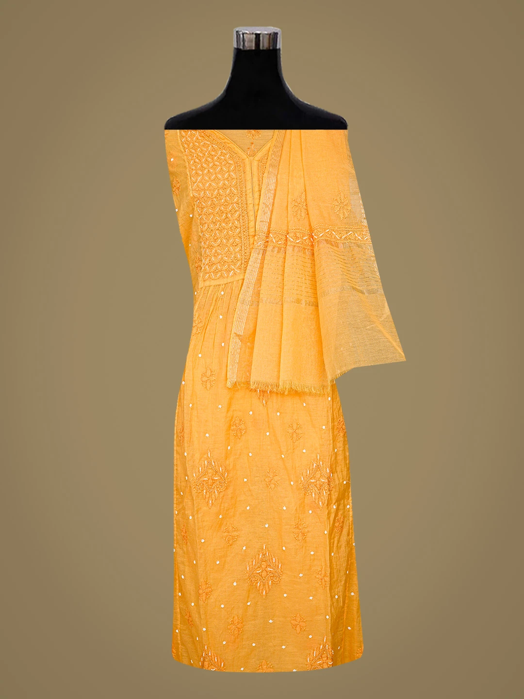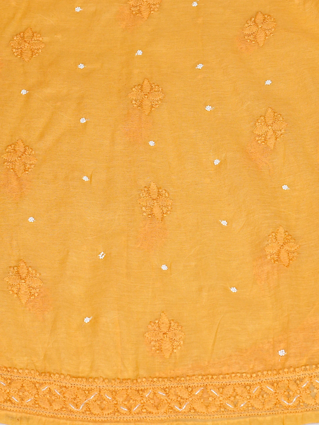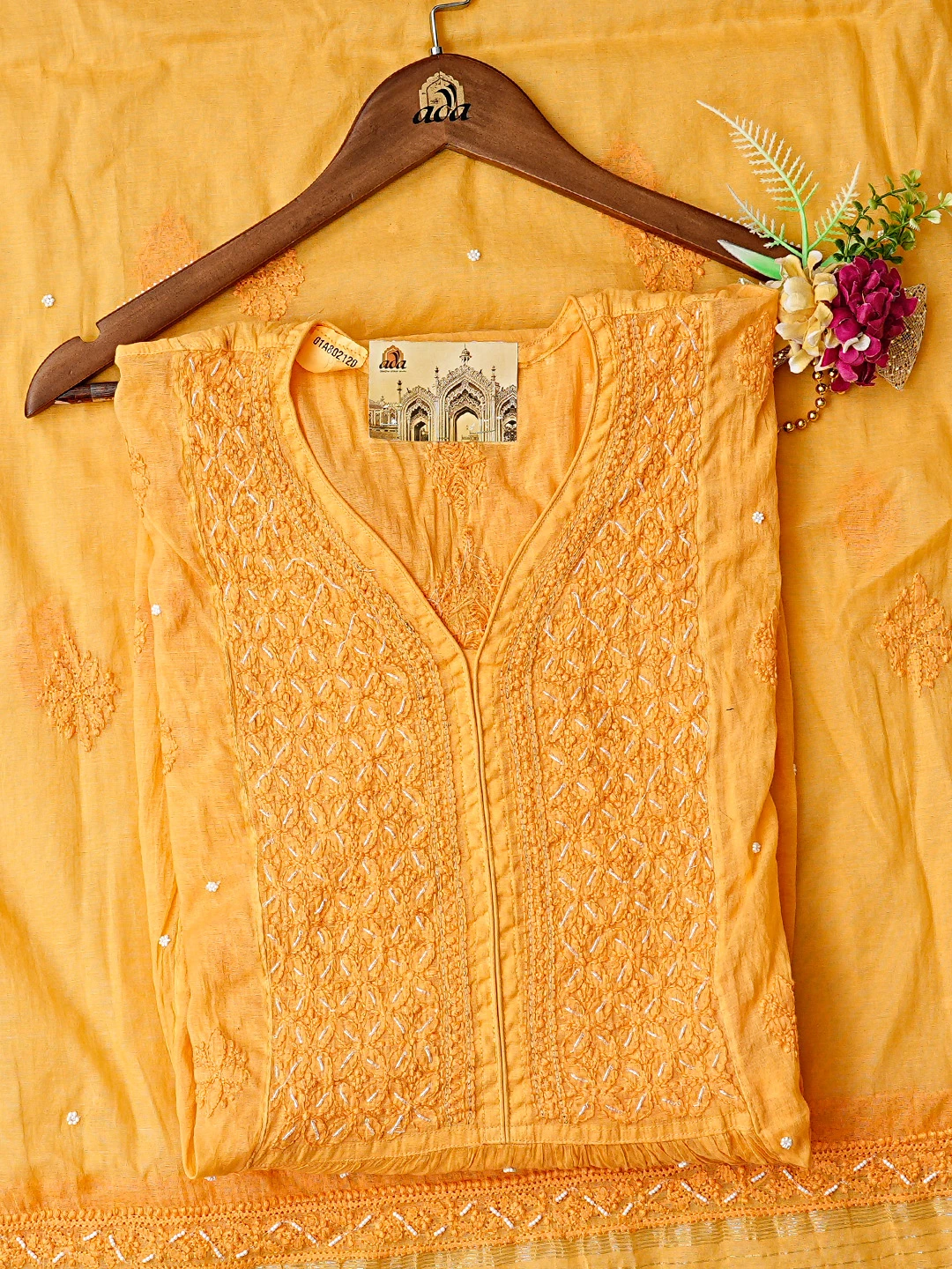 Ada Hand Embroidered Orange Chanderi Lucknowi Chikankari Semi-Stitched Kurta Dupatta Set With Cutdana Work 01A802120
