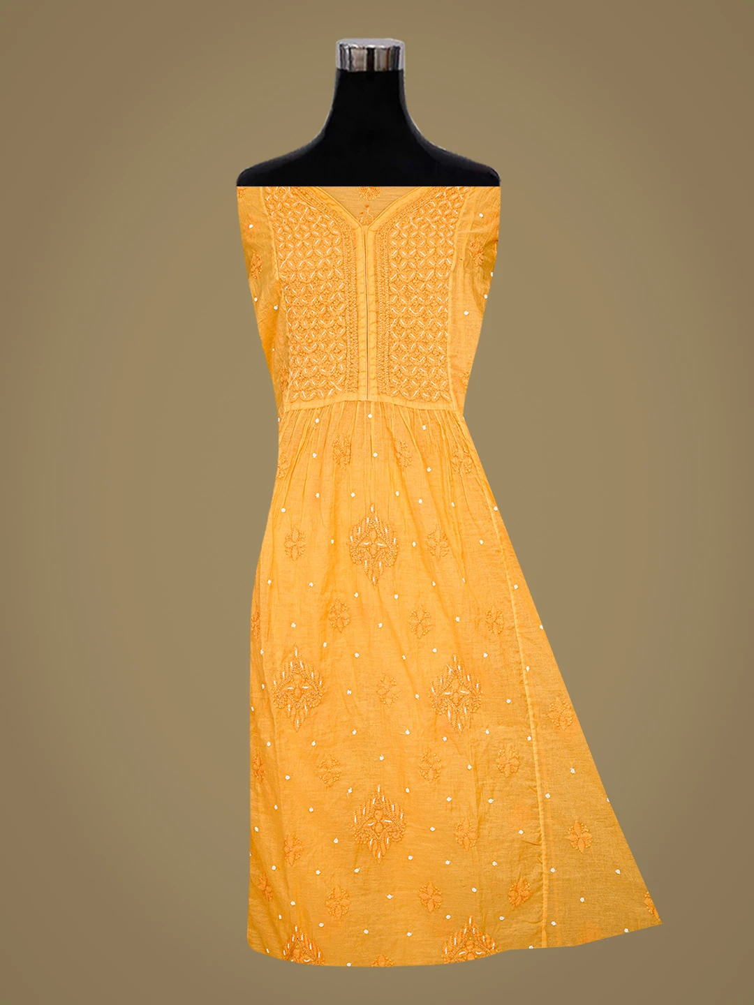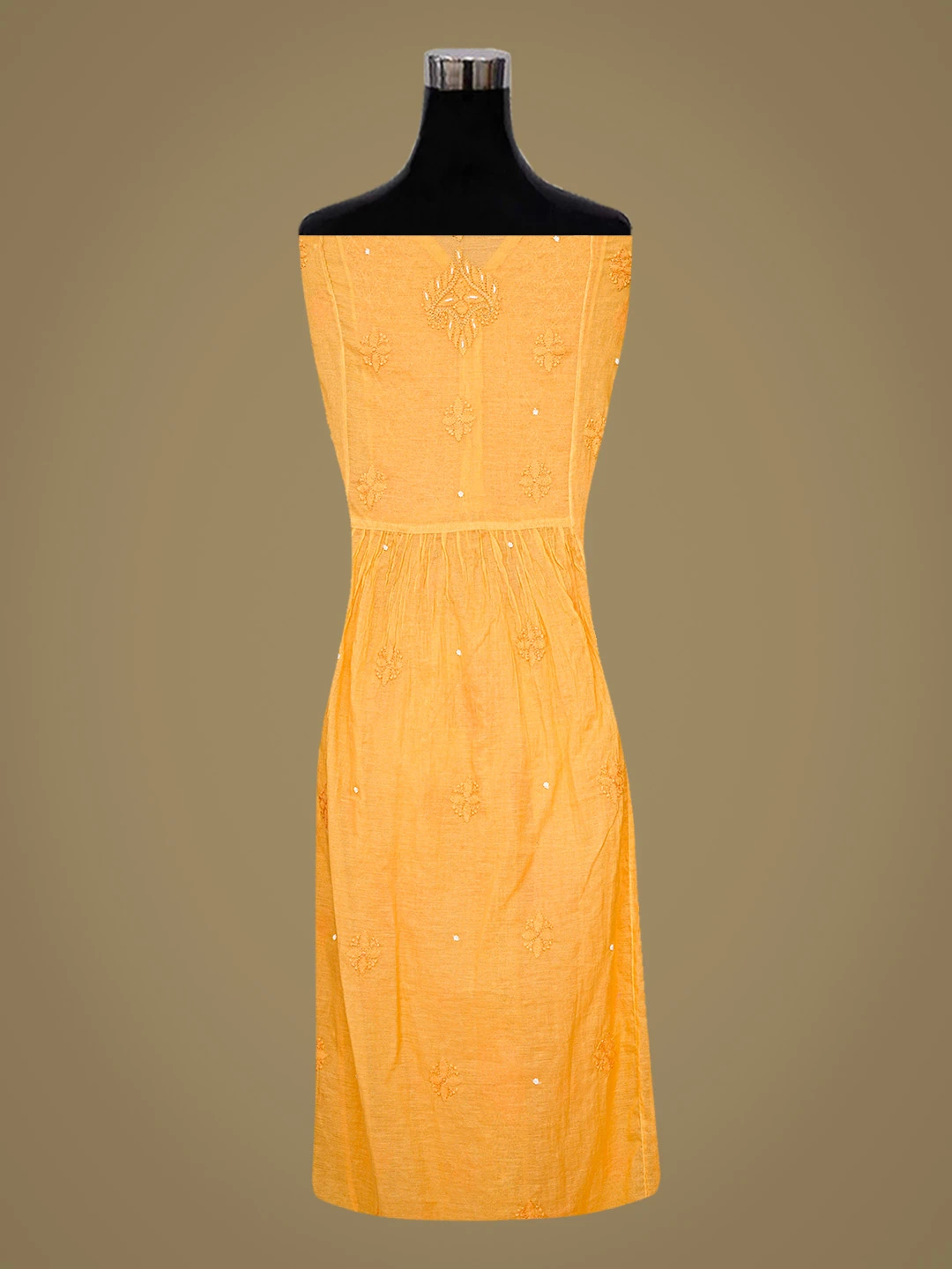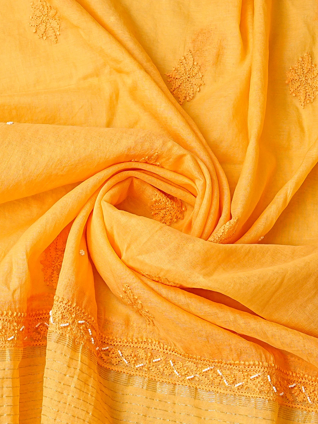 Ada Hand Embroidered Orange Chanderi Lucknowi Chikankari Semi-Stitched Kurta Dupatta Set With Cutdana Work 01A802120