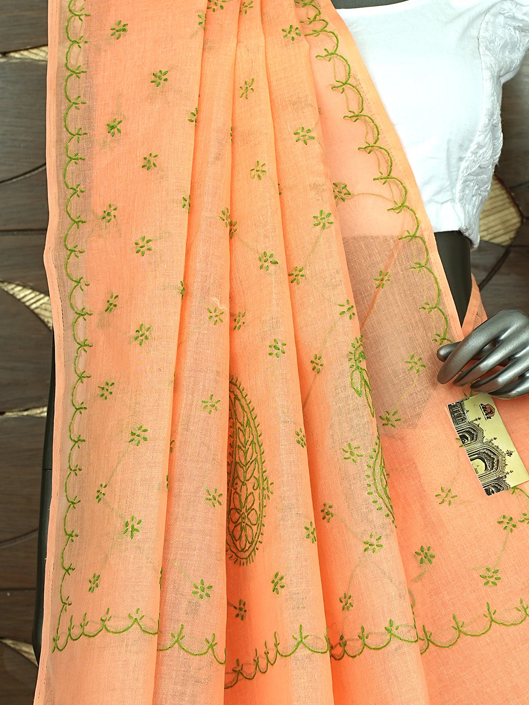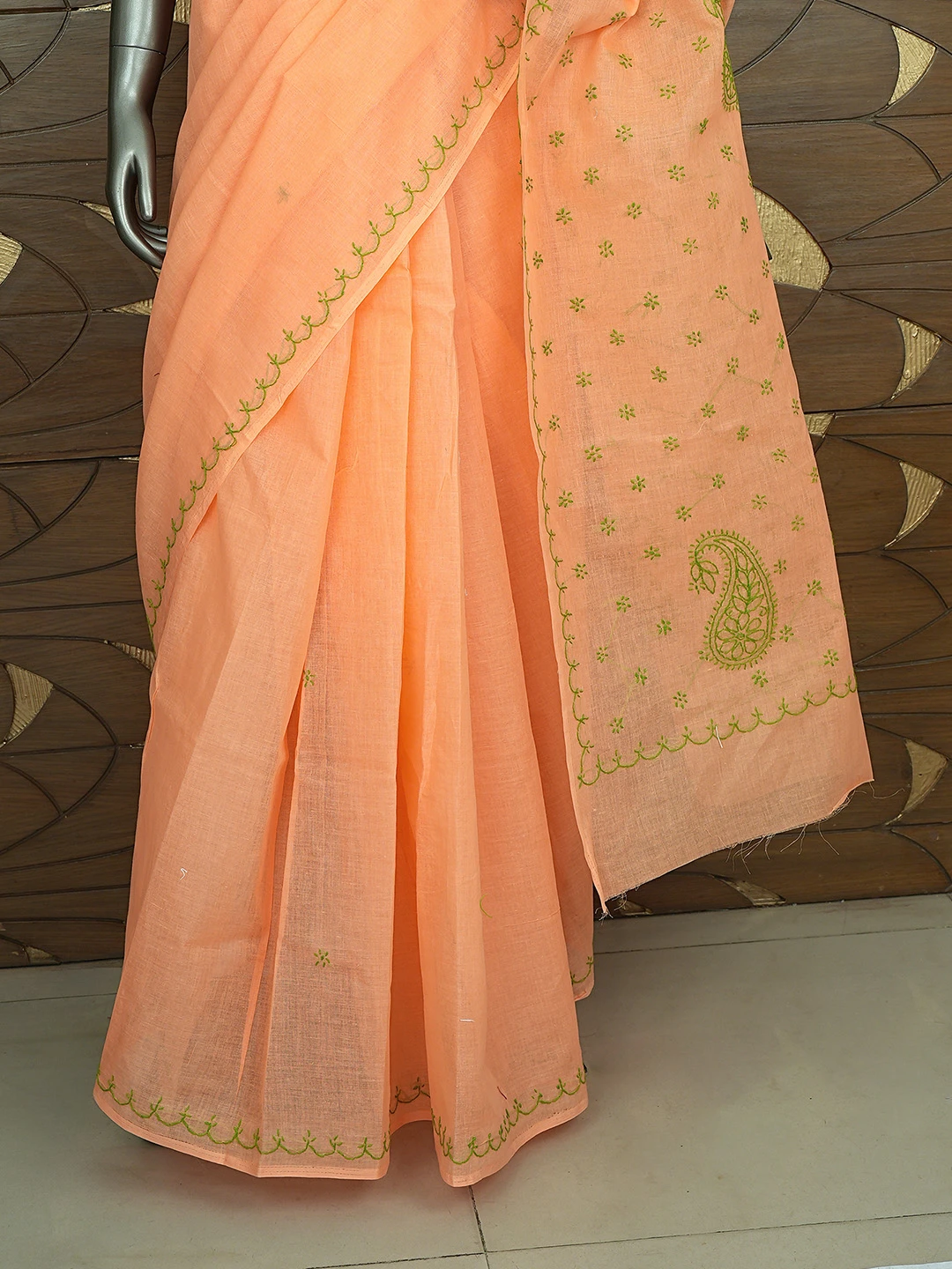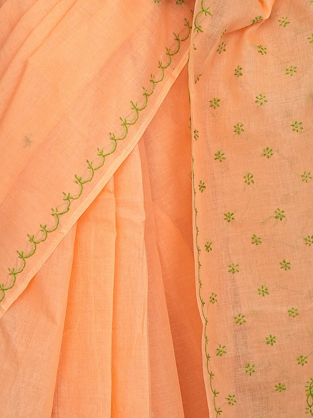 Ada Hand Embroidered Orange Cotton Lucknowi Chikankari Saree and Blouse 01A882925