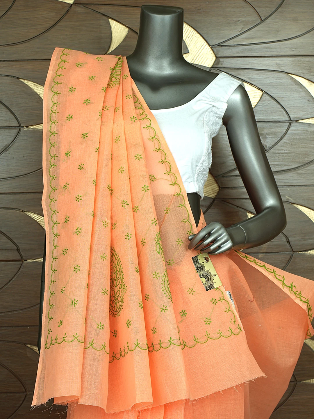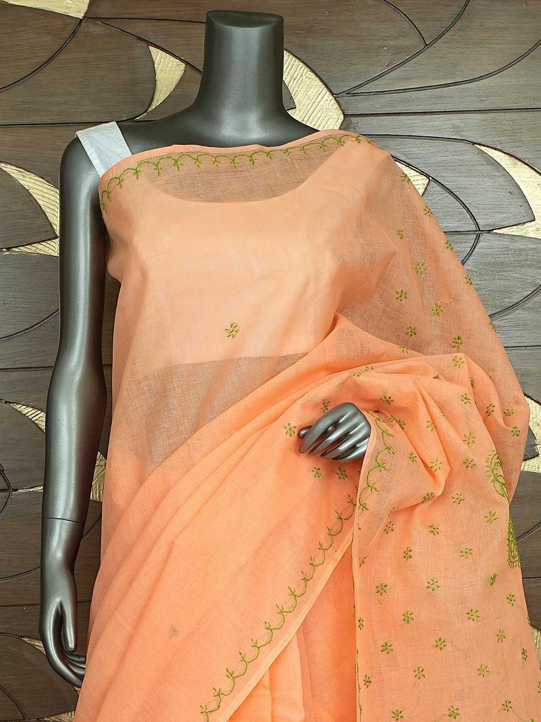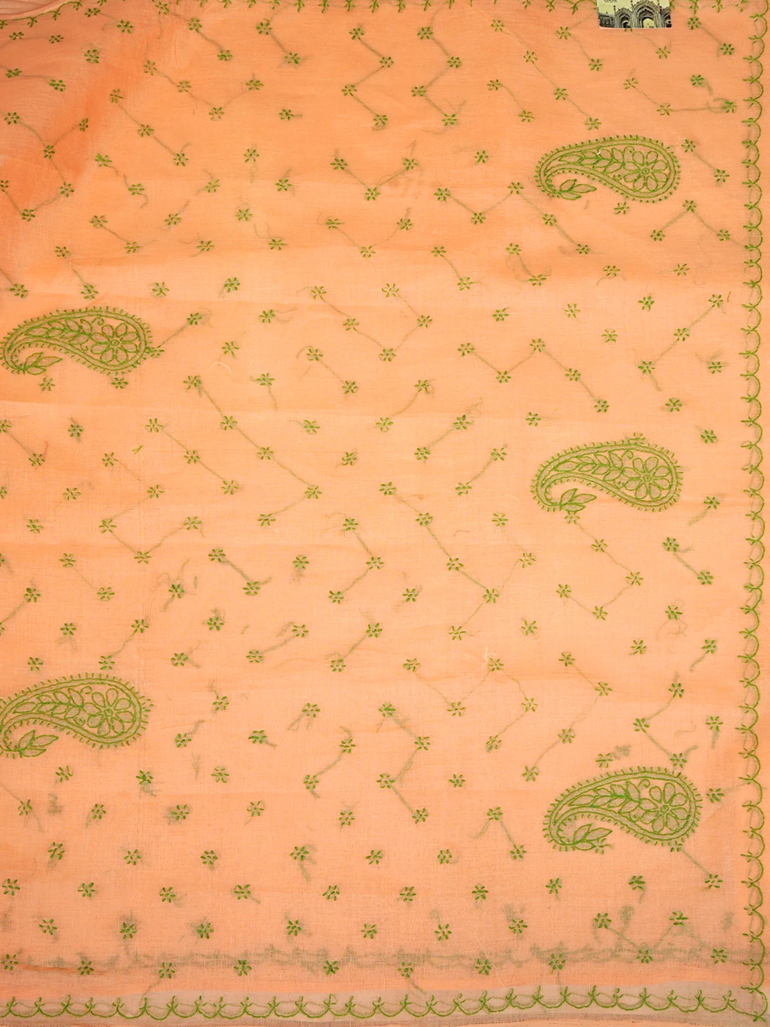 Ada Hand Embroidered Orange Cotton Lucknowi Chikankari Saree and Blouse 01A882925