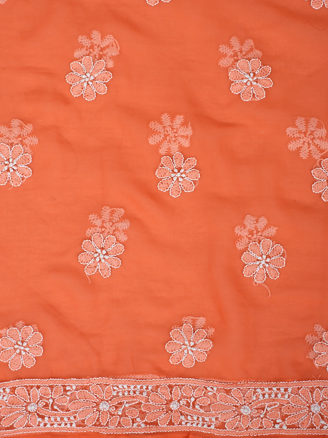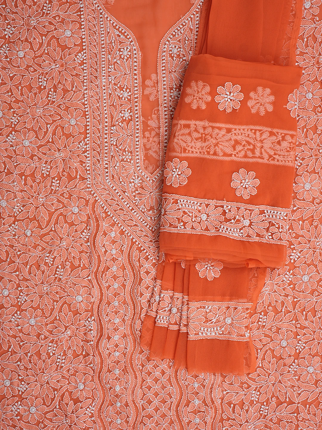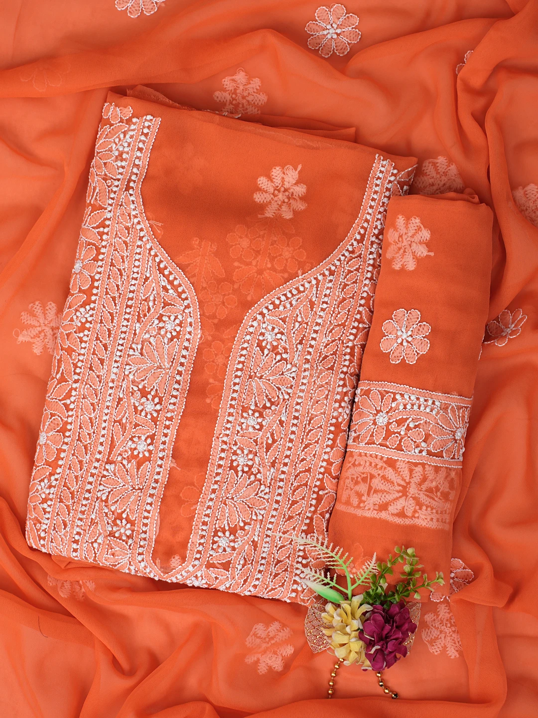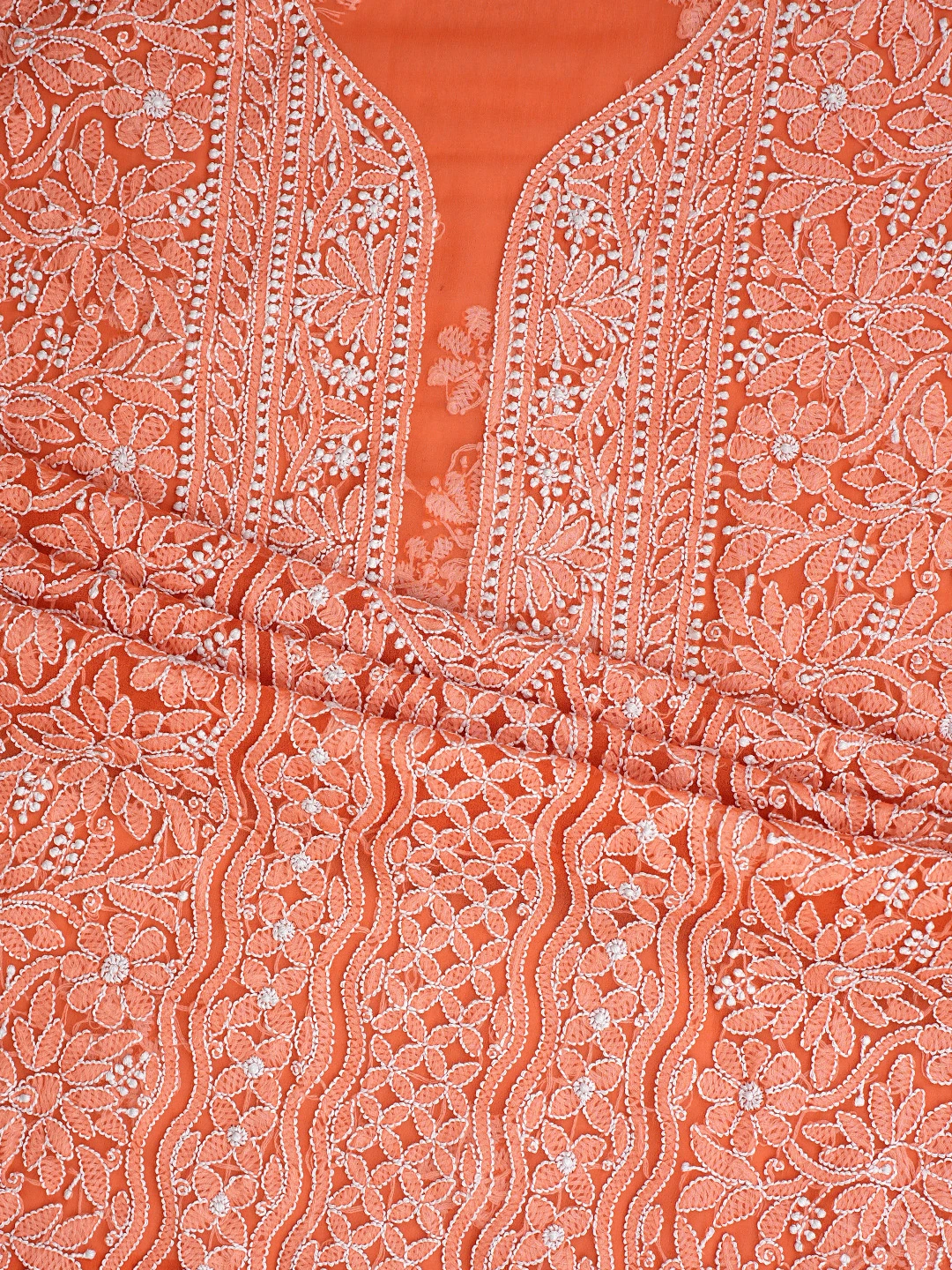 Ada Hand Embroidered Orange Georgette Lucknowi Chikankari Unstitched Suit Piece 01A835622
