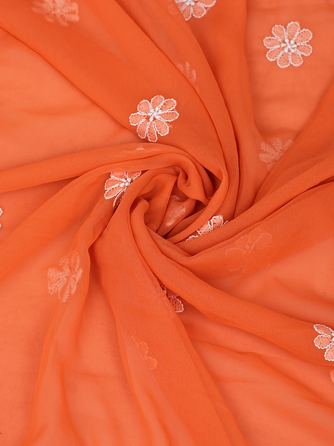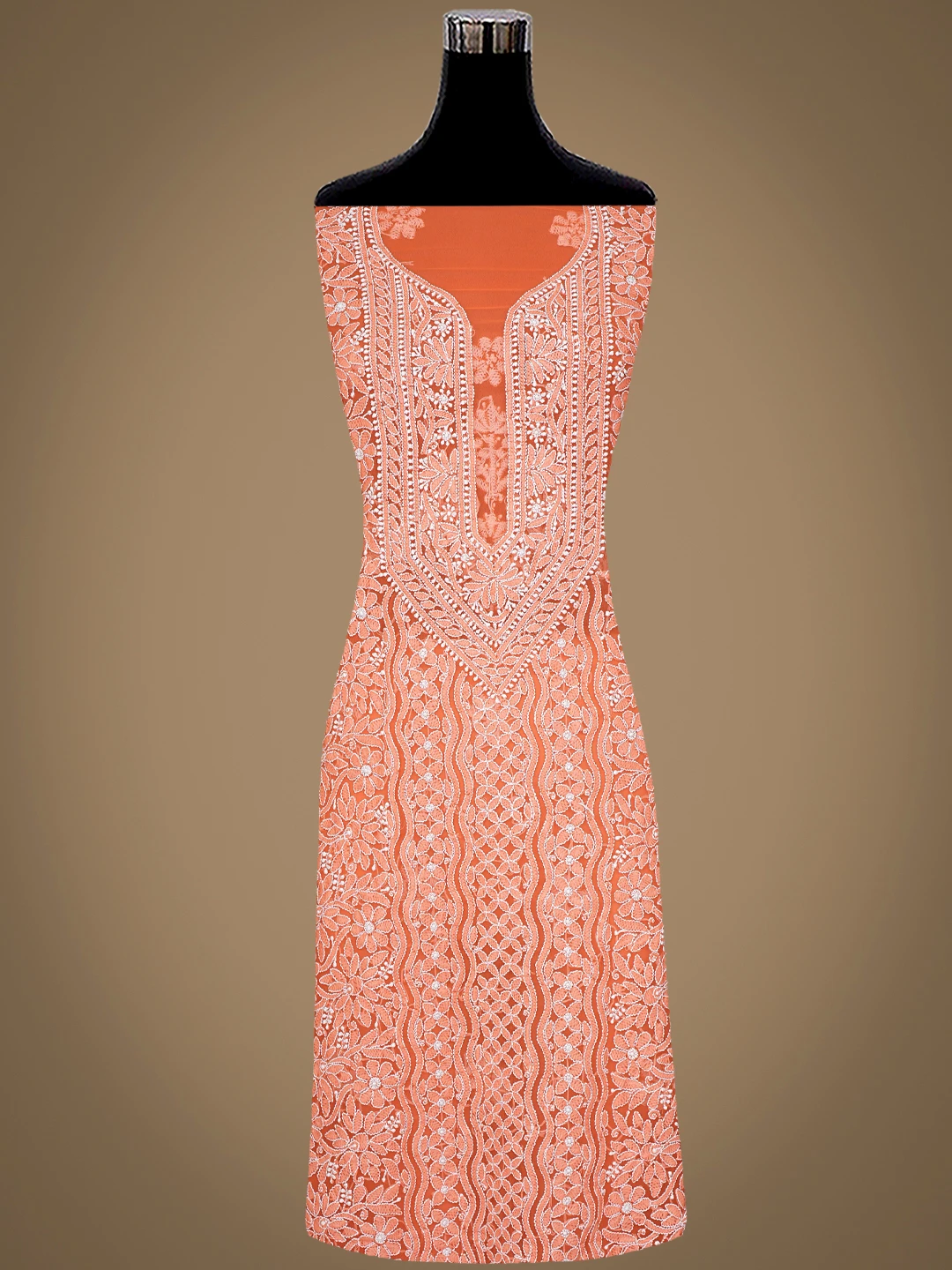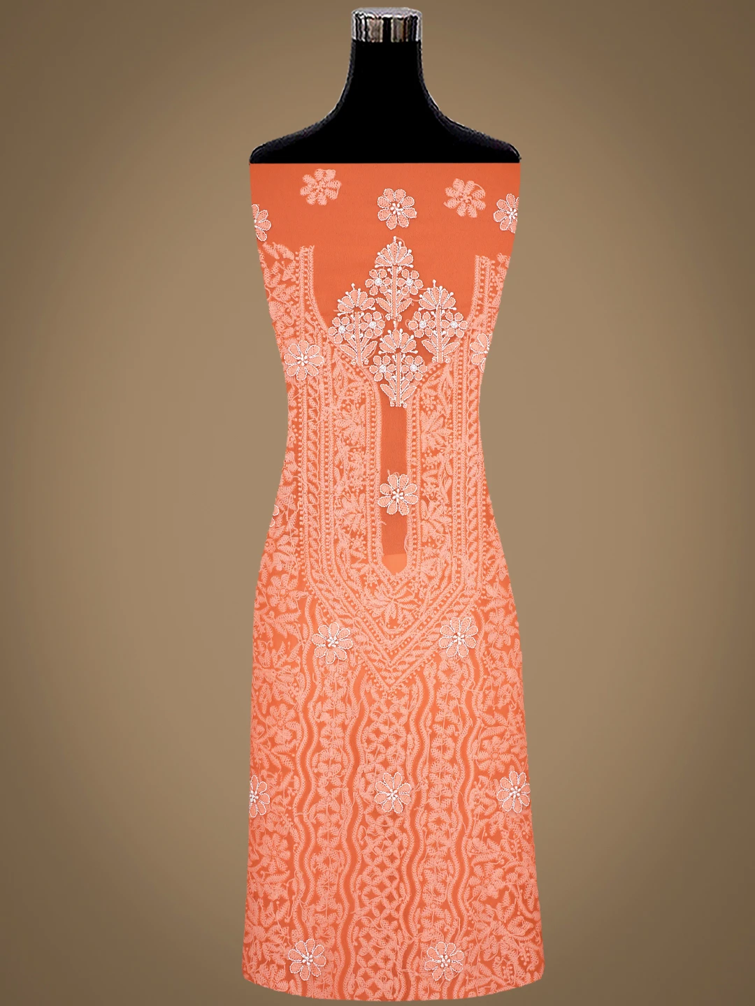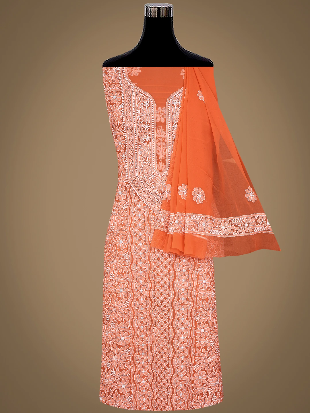 Ada Hand Embroidered Orange Georgette Lucknowi Chikankari Unstitched Suit Piece 01A835622