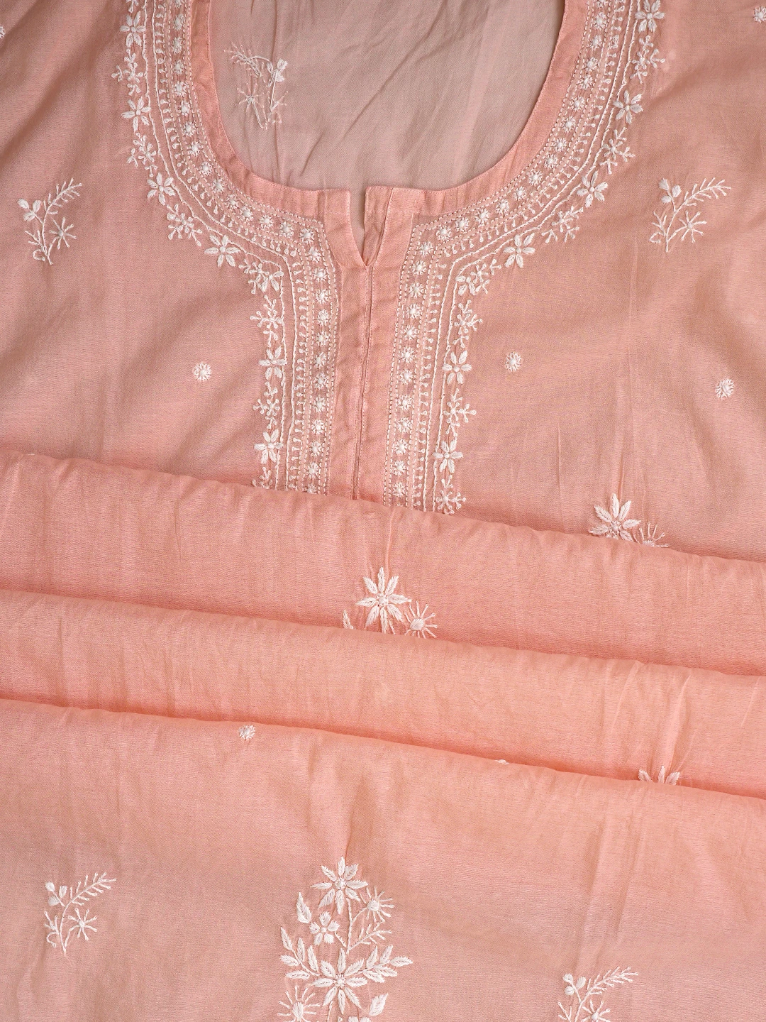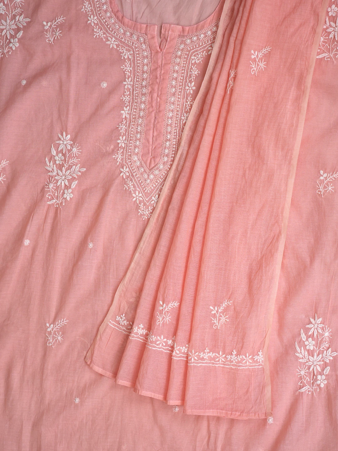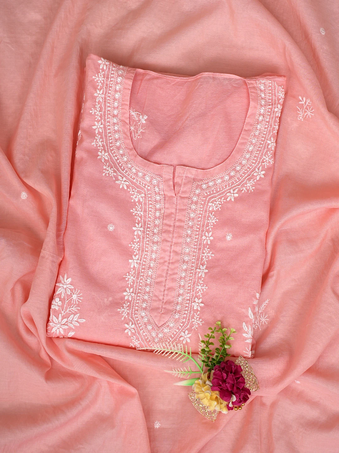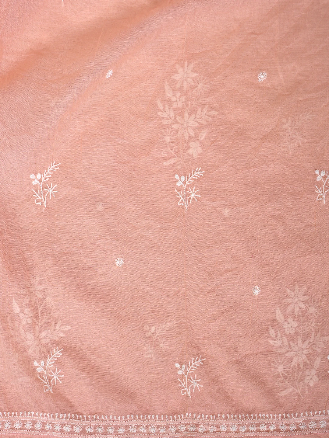 Ada Hand Embroidered Peach Chanderi Lucknowi Chikankari Semi-Stitched Kurta Dupatta Set 01A864366