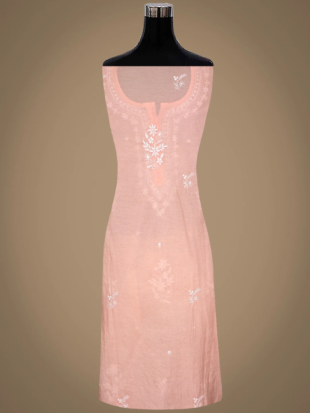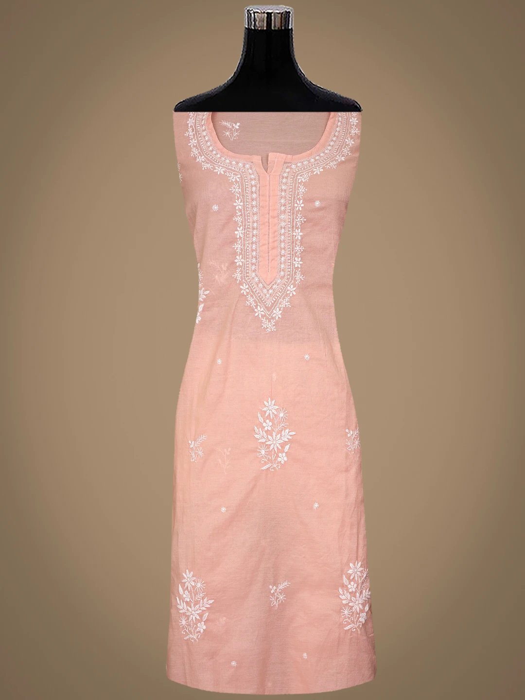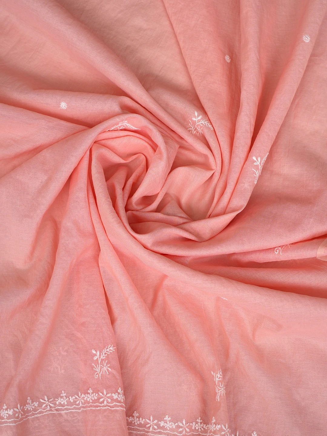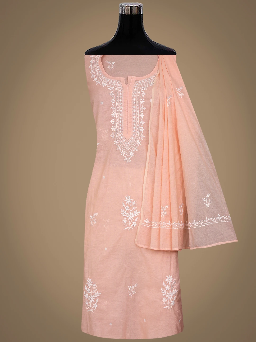 Ada Hand Embroidered Peach Chanderi Lucknowi Chikankari Semi-Stitched Kurta Dupatta Set 01A864366