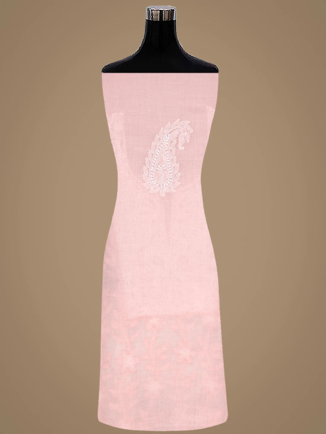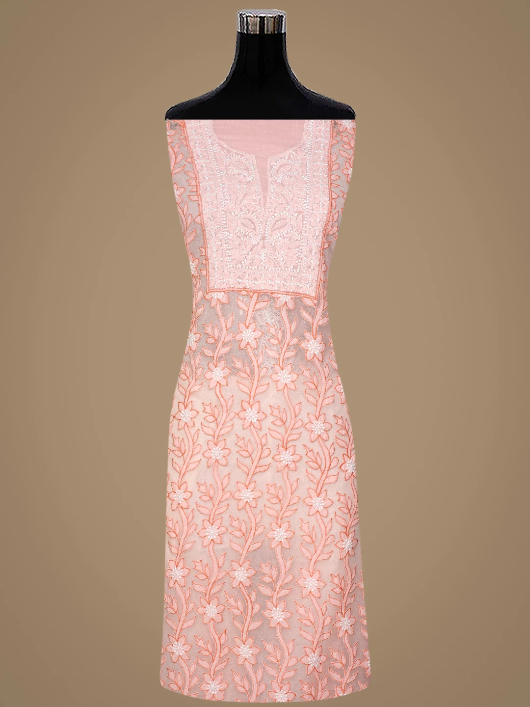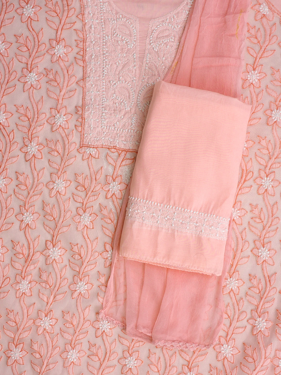 Ada Hand Embroidered Peach Cotton And Net Lucknowi Chikankari Unstitched Suit Piece 01A821974