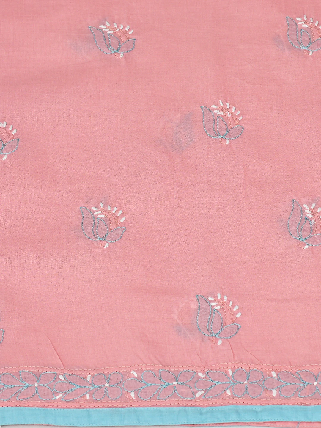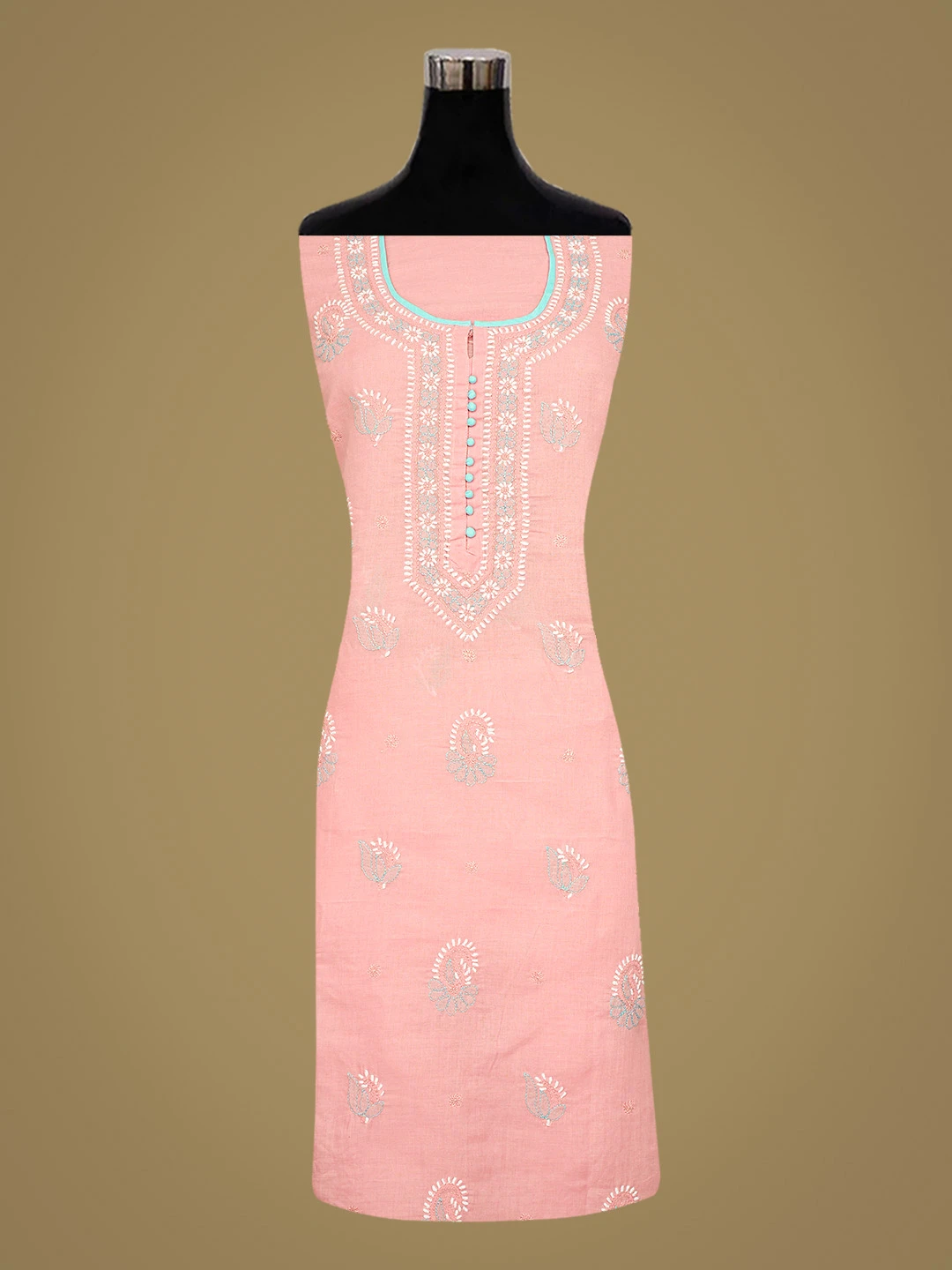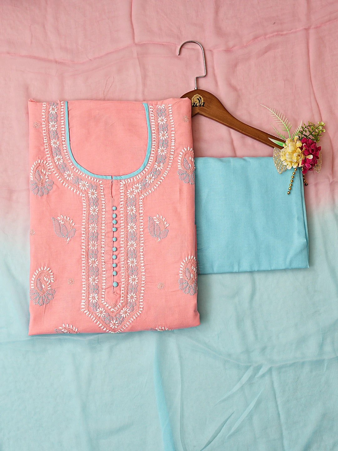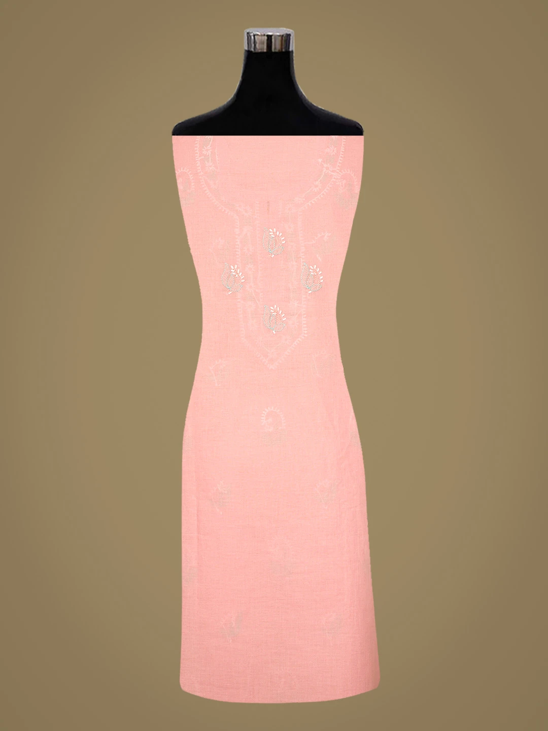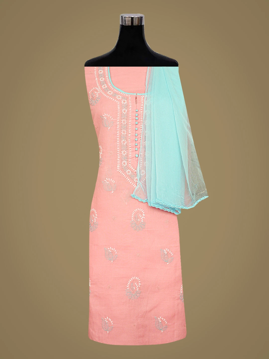 Ada Hand Embroidered Peach Cotton Lucknowi Chikankari Unstitched Suit Piece 01A818962