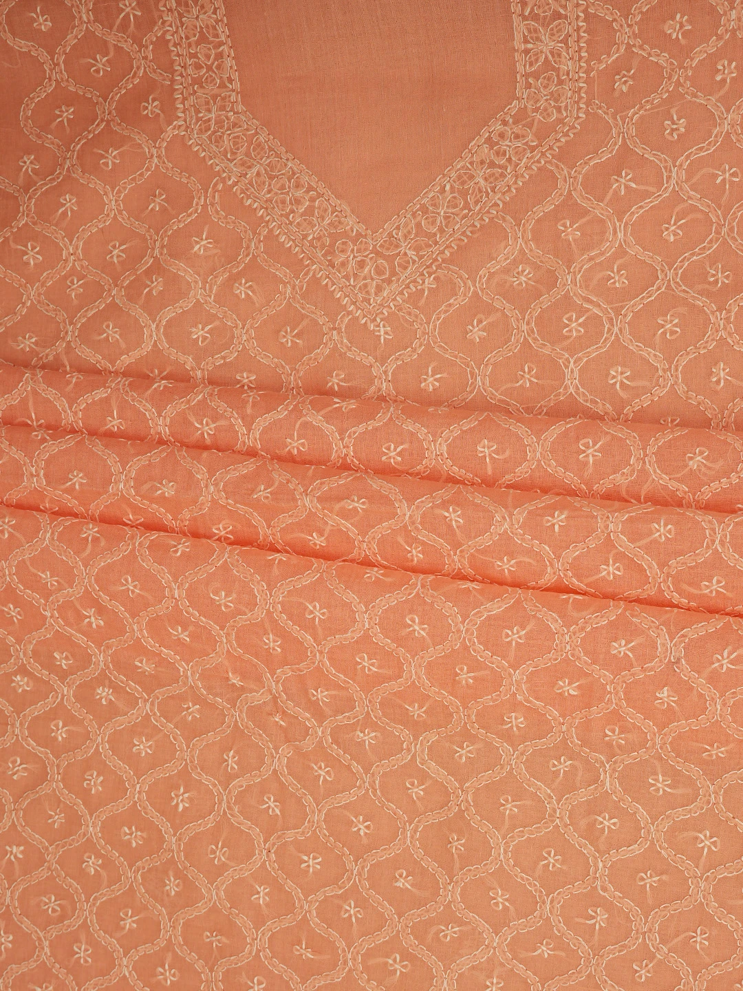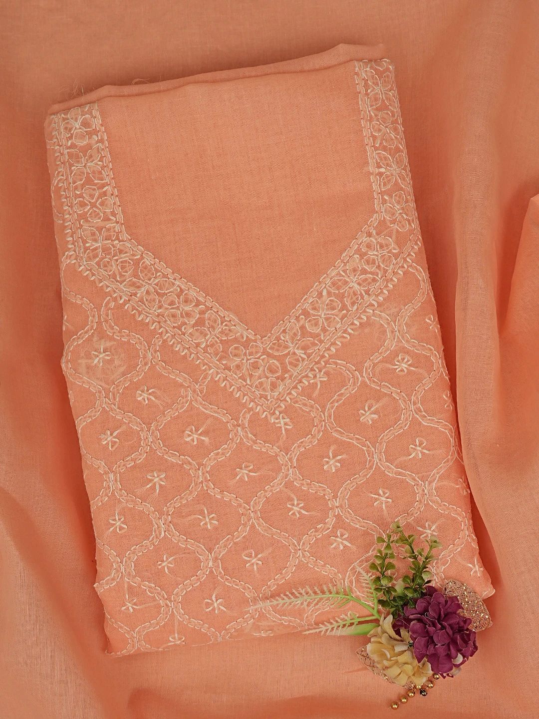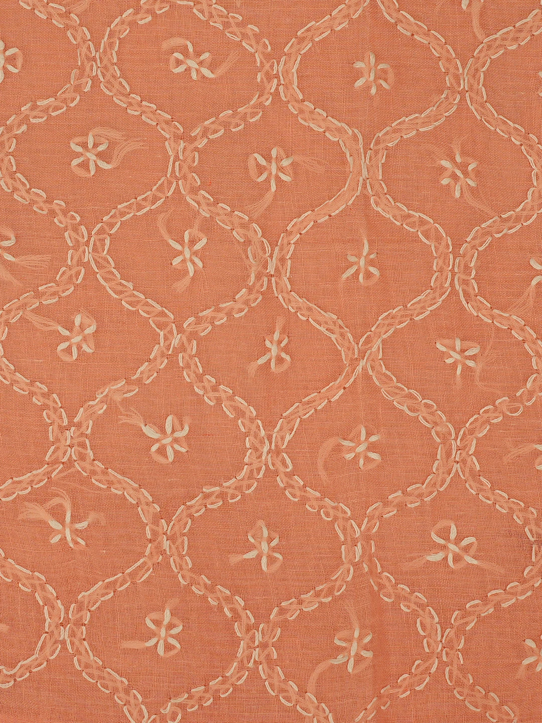 Ada Hand Embroidered Peach Cotton Lucknowi Chikankari Unstitched Suit Piece 01A854939