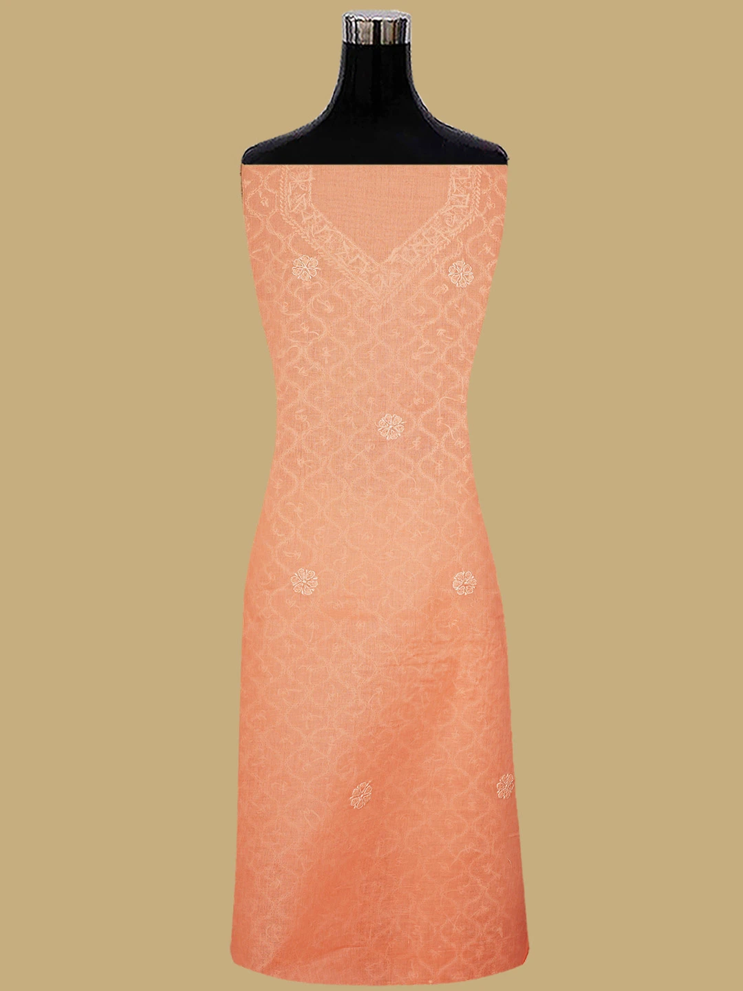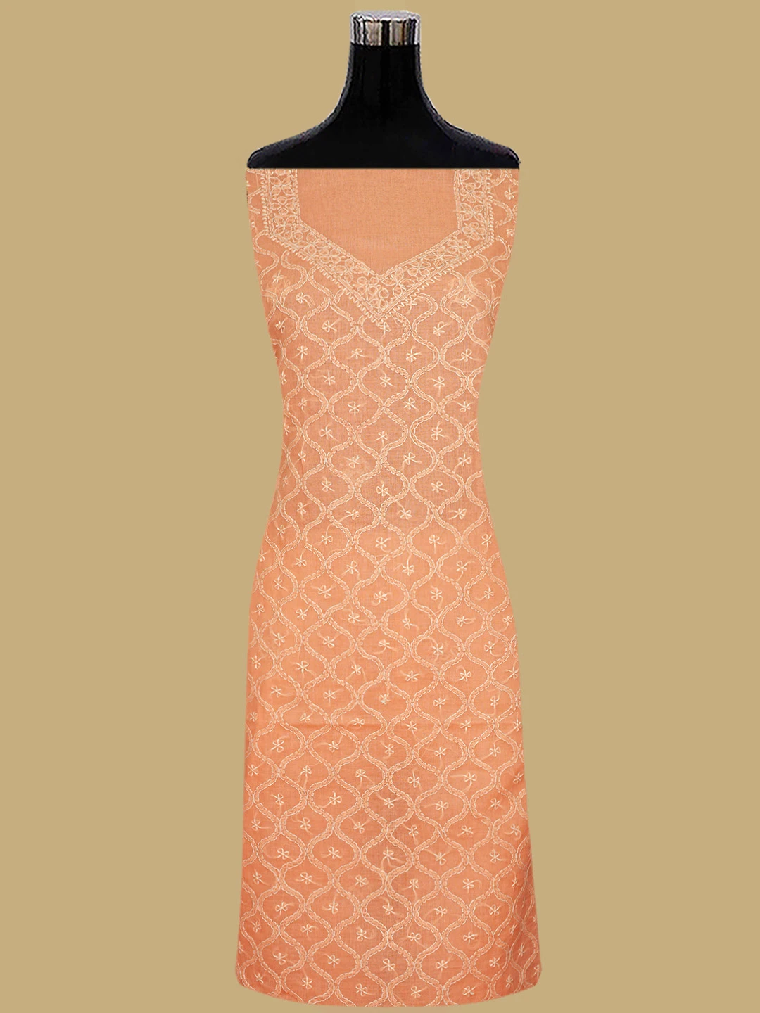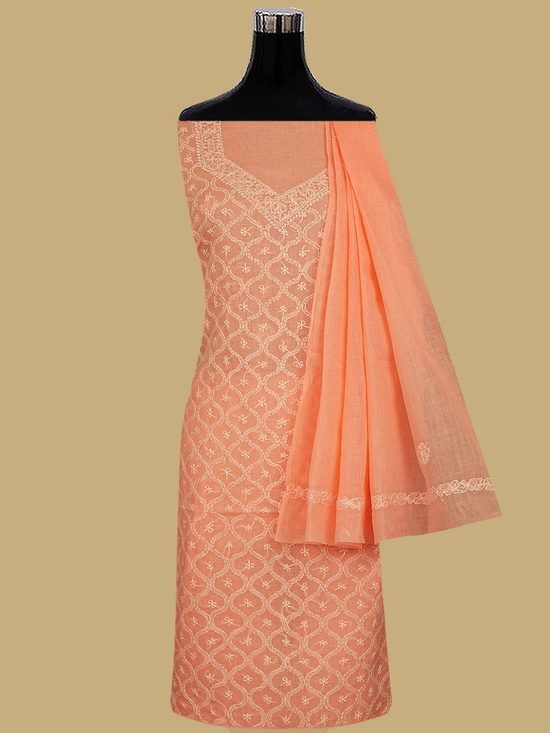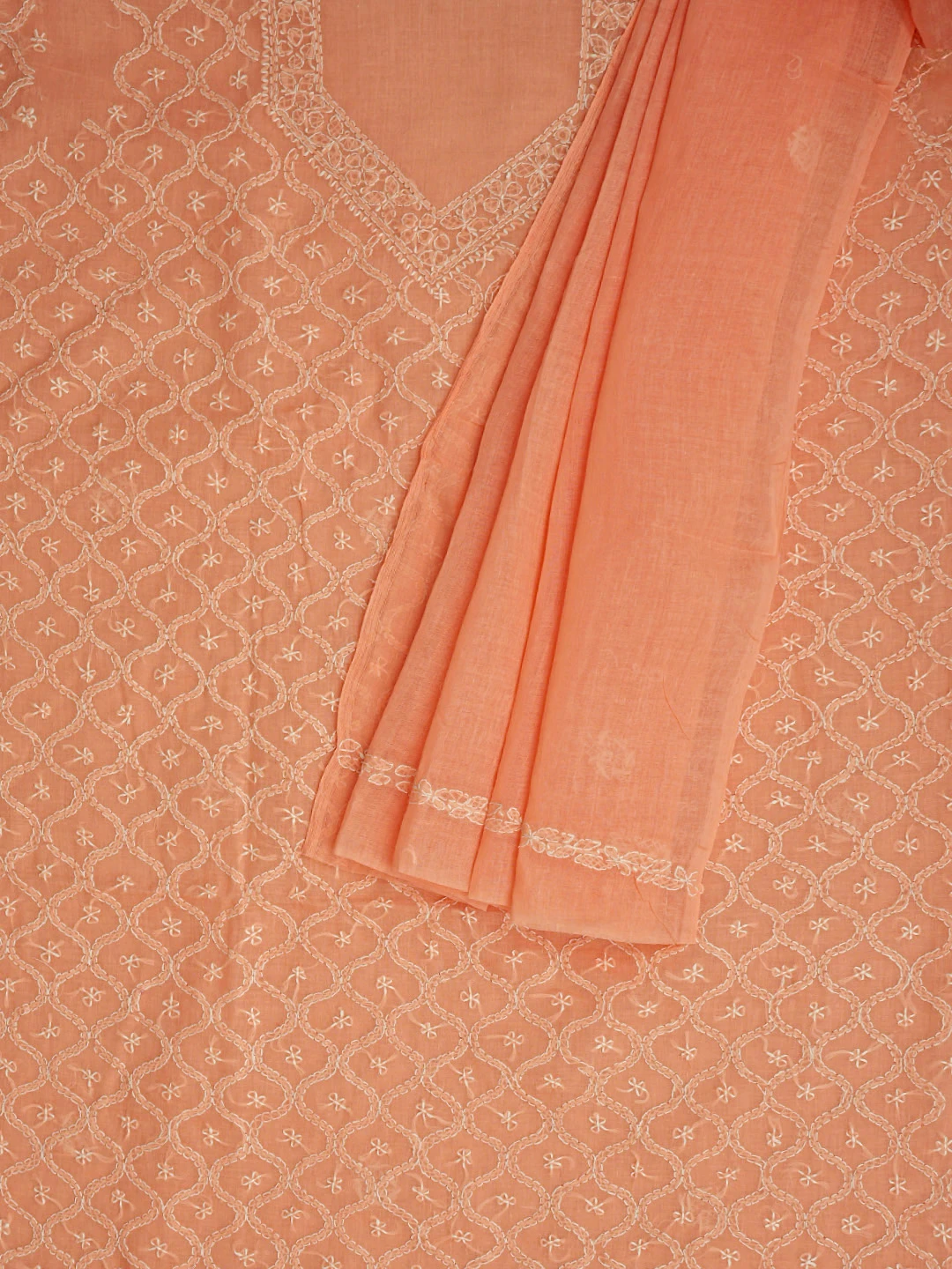 Ada Hand Embroidered Peach Cotton Lucknowi Chikankari Unstitched Suit Piece 01A854939