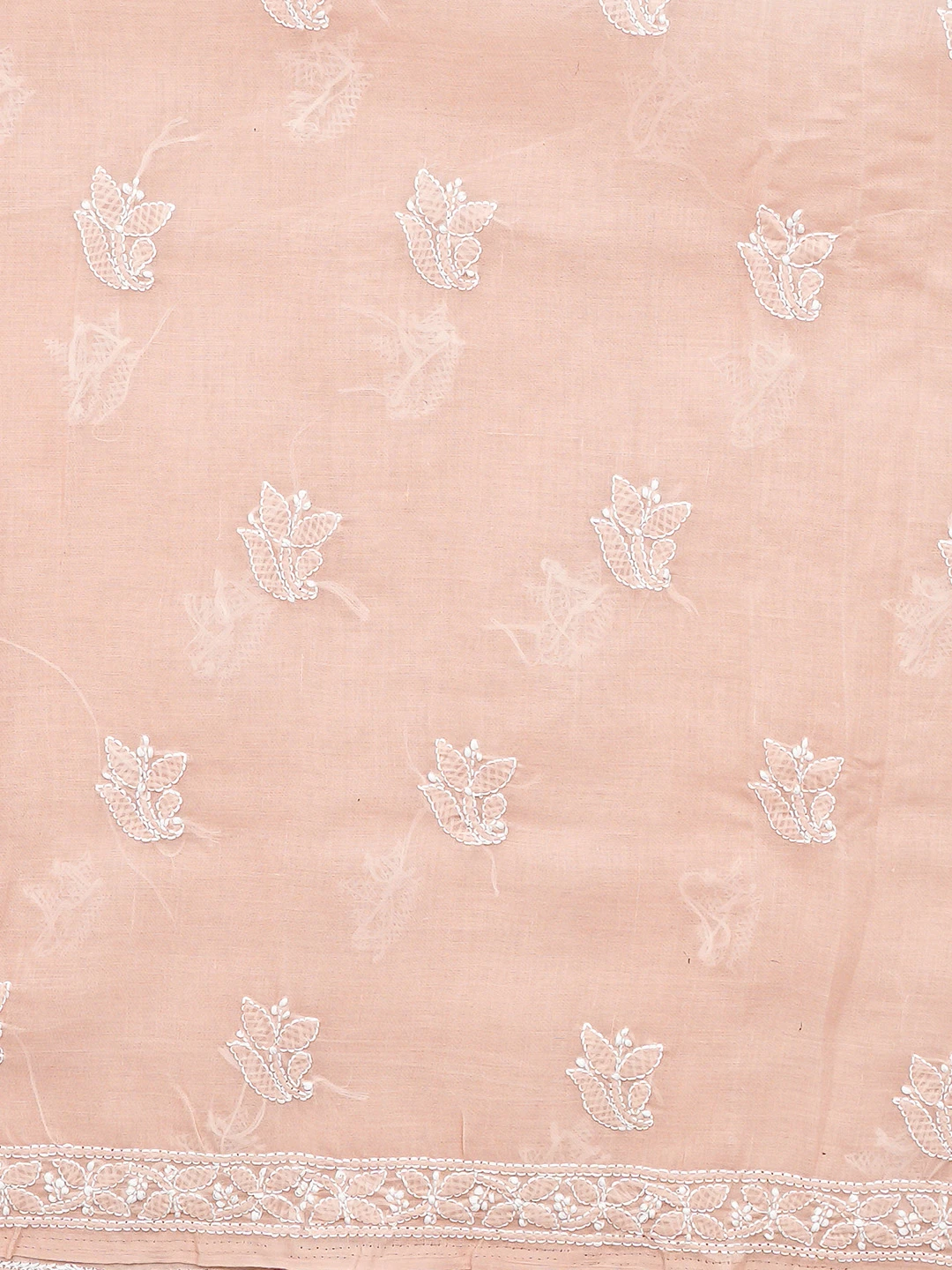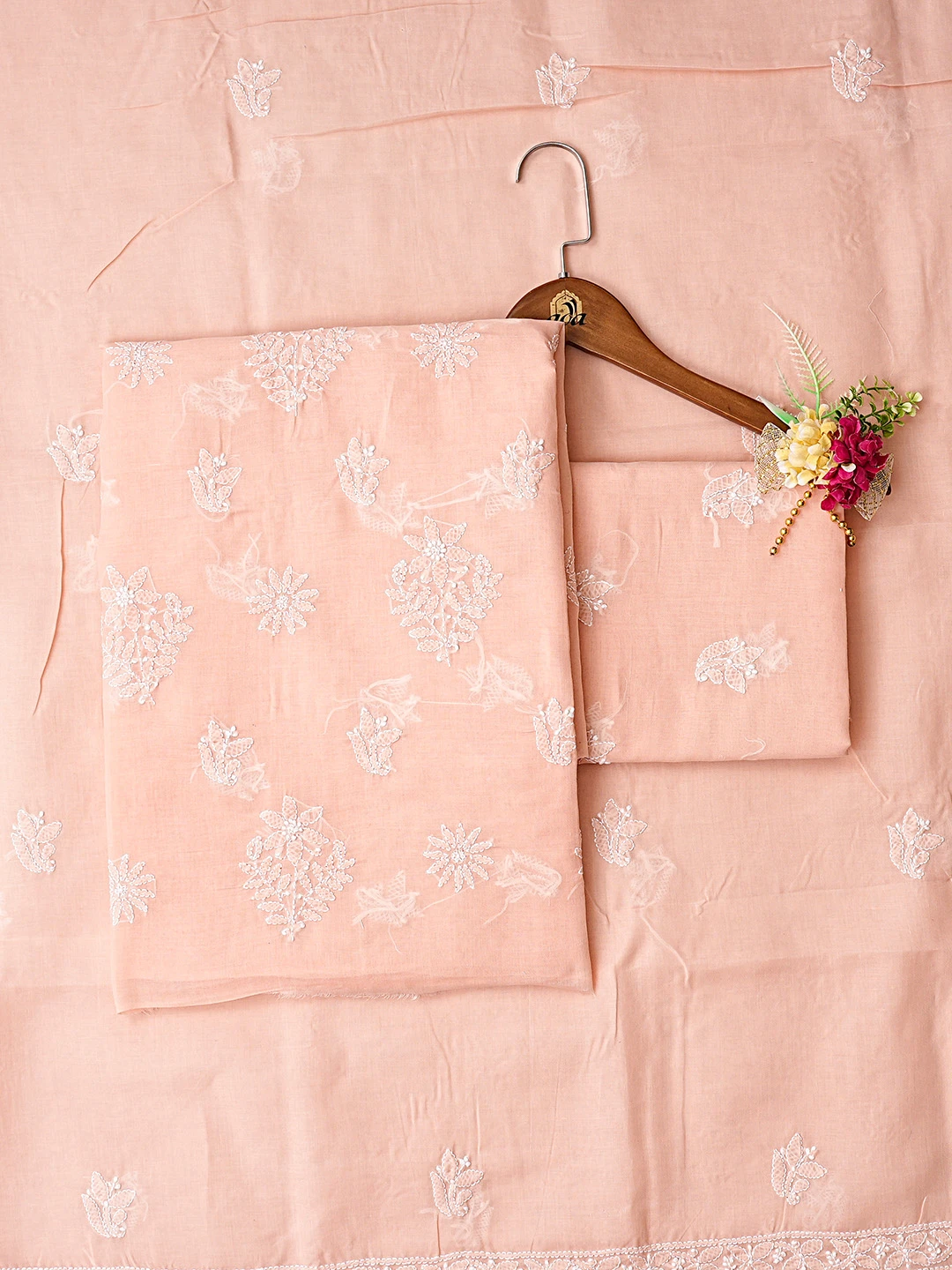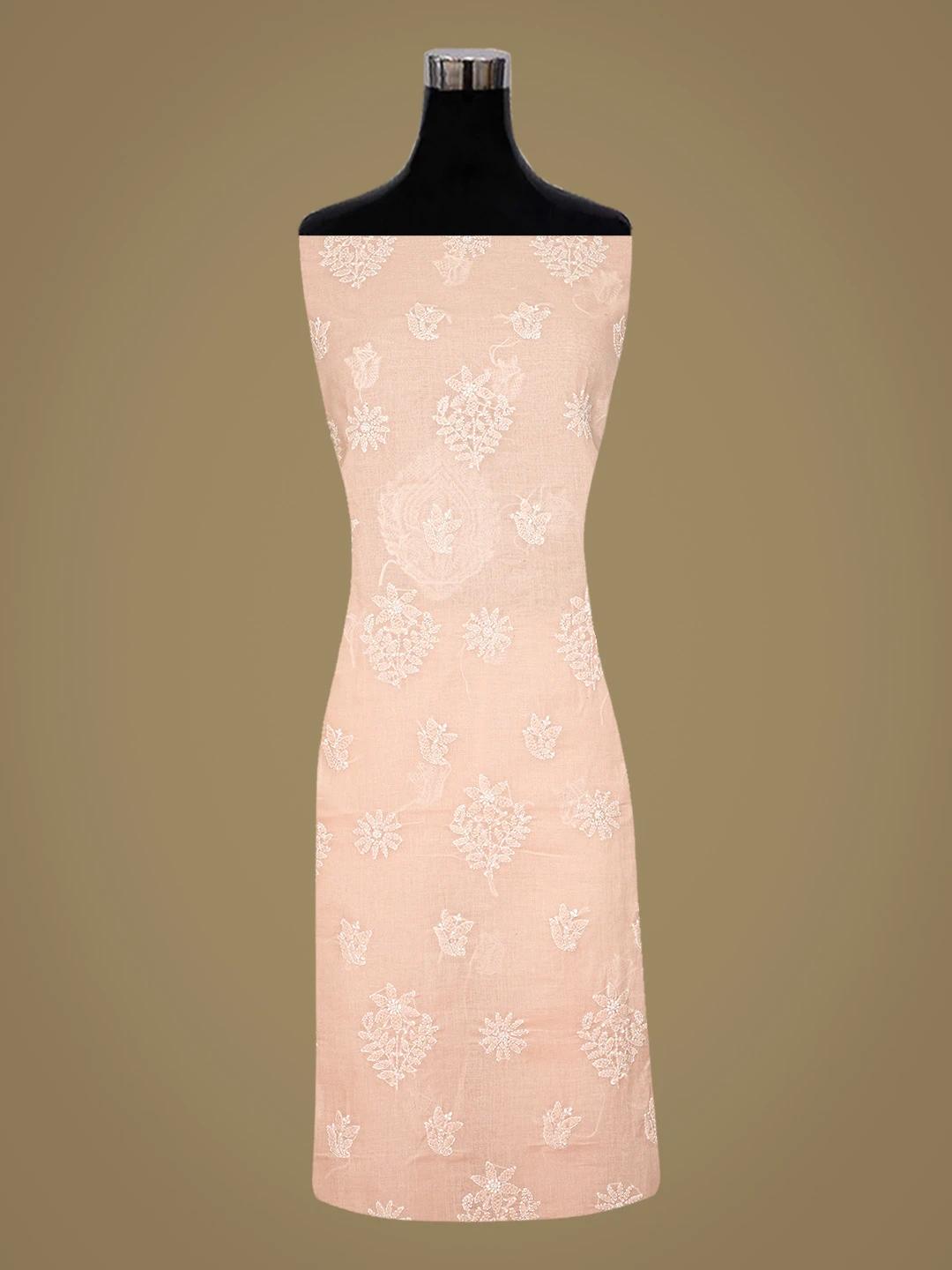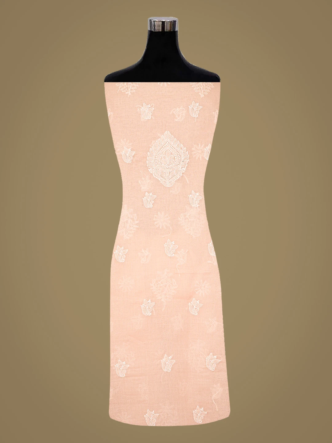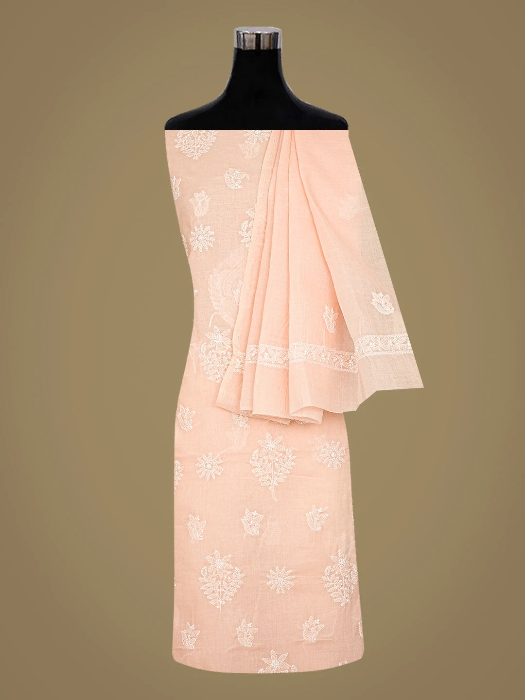 Ada Hand Embroidered Peach Cotton Lucknowi Chikankari Unstitched Suit Piece 01A867751