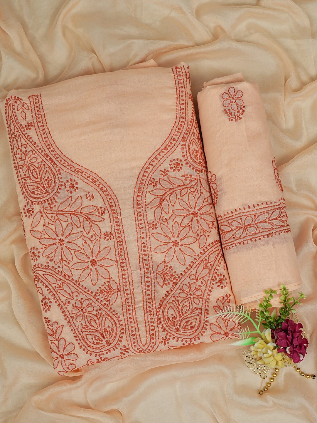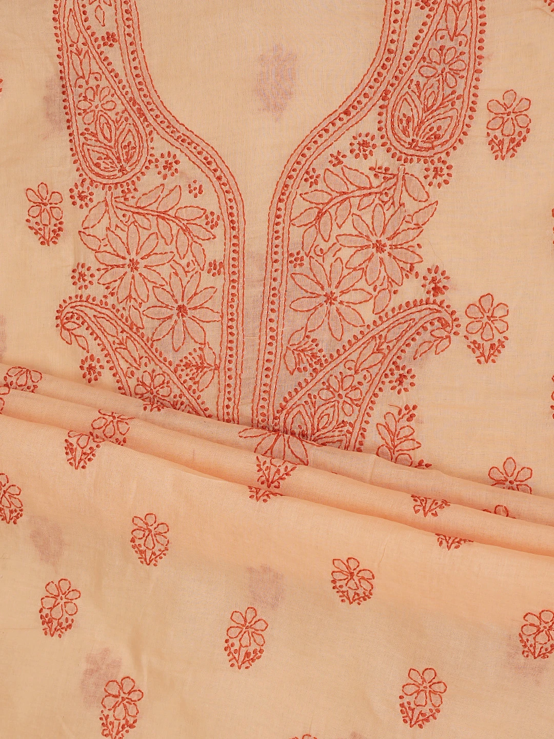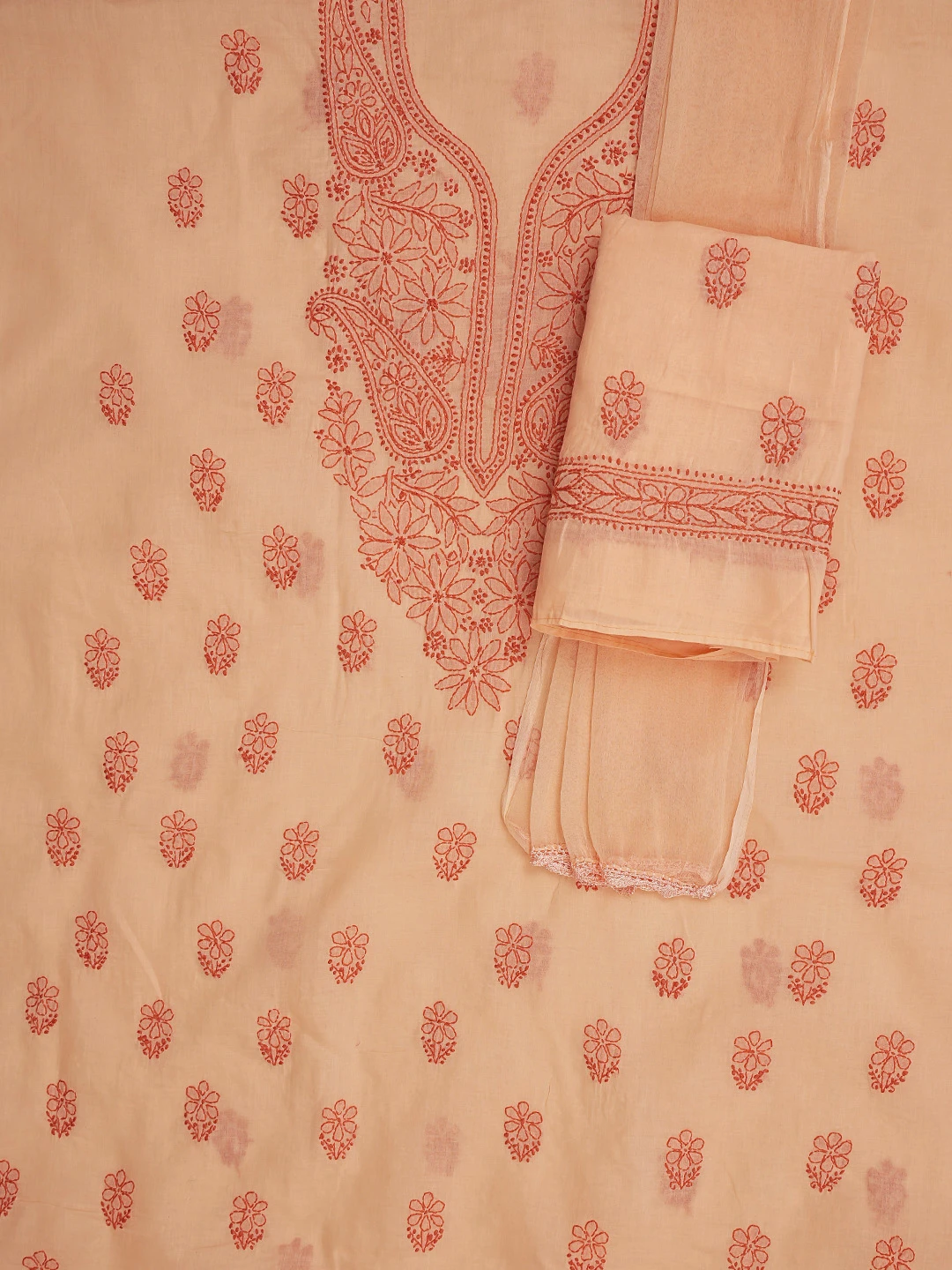 Ada Hand Embroidered Peach Cotton Lucknowi Chikankari Unstitched Suit Piece 01A868021