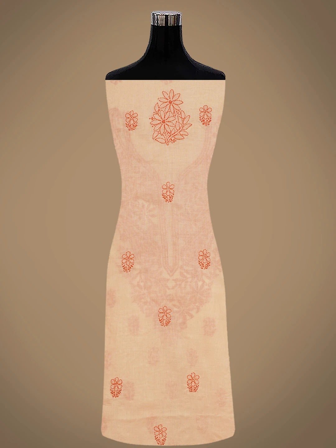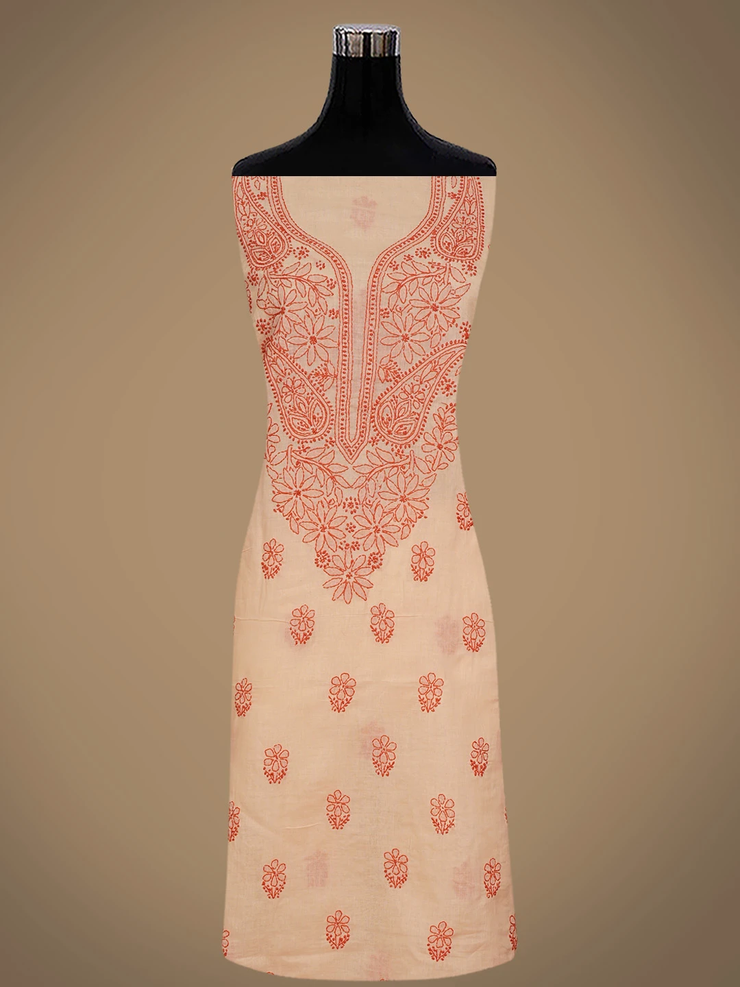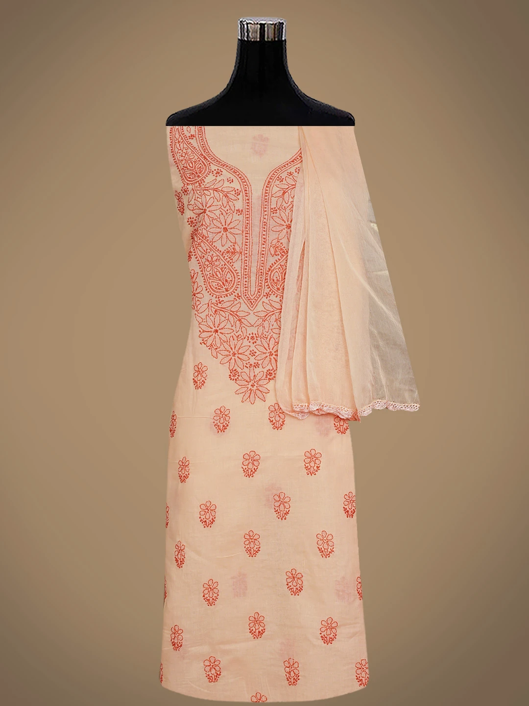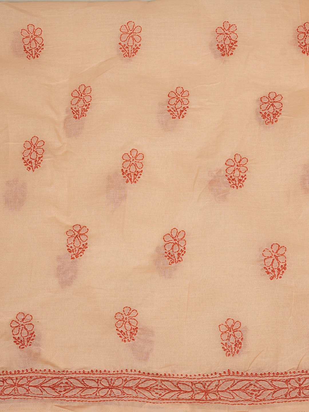 Ada Hand Embroidered Peach Cotton Lucknowi Chikankari Unstitched Suit Piece 01A868021