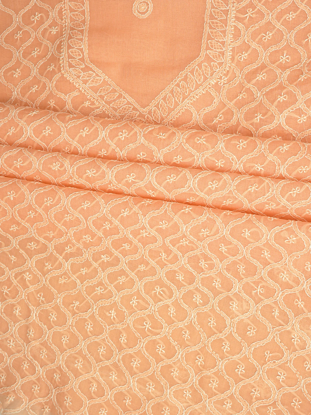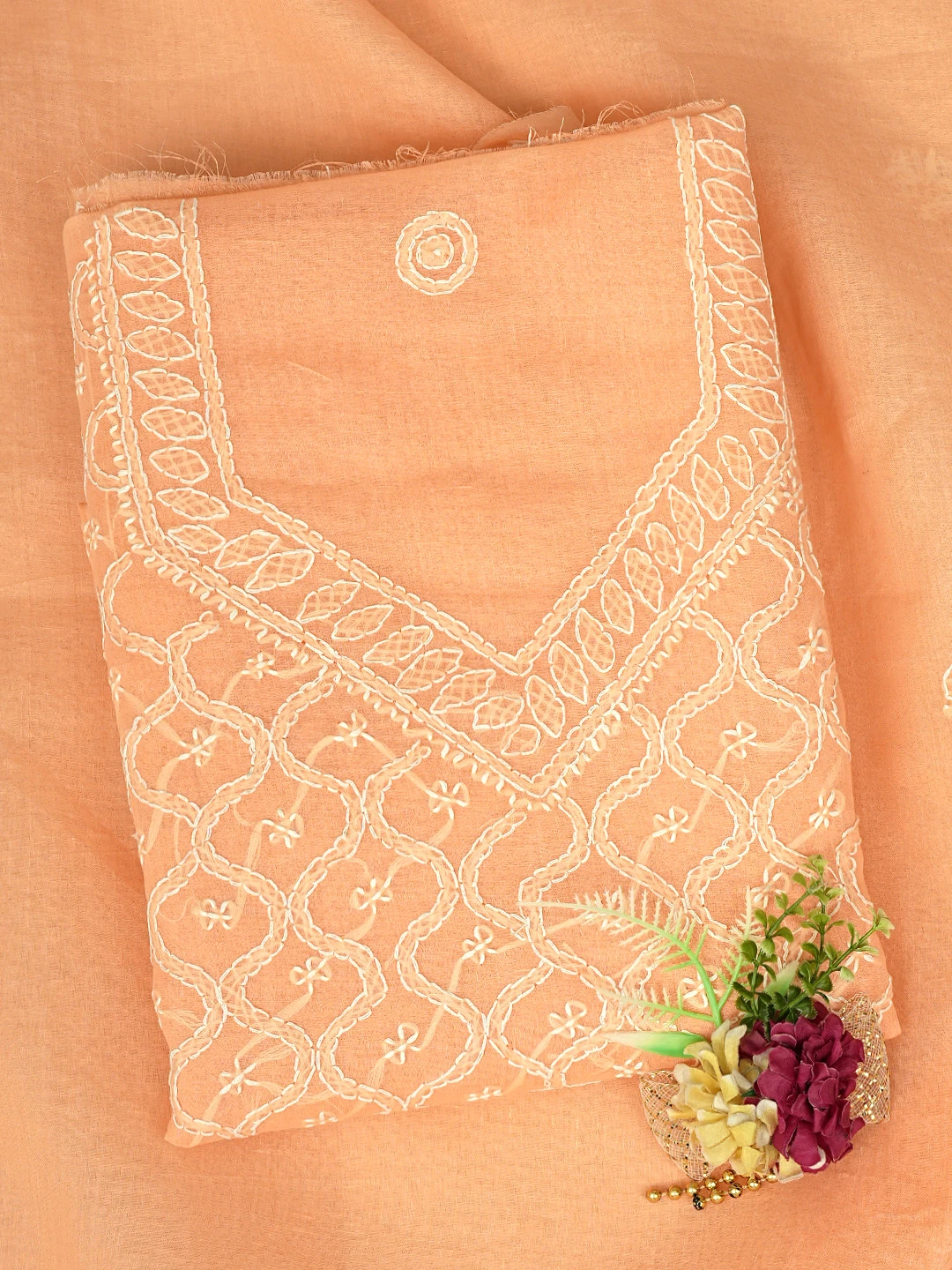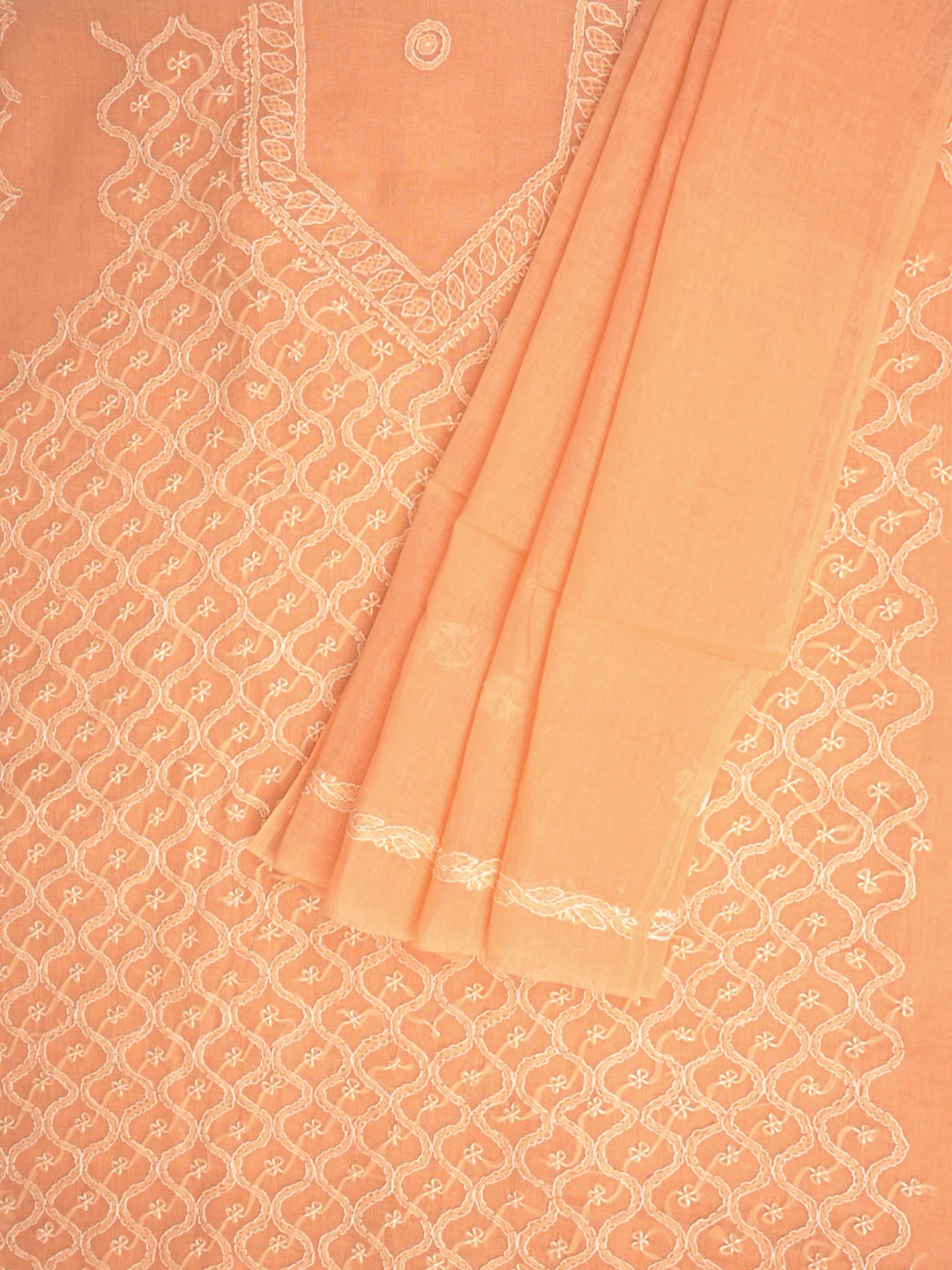 Ada Hand Embroidered Peach Cotton Lucknowi Chikankari Unstitched Suit Piece 01A882342