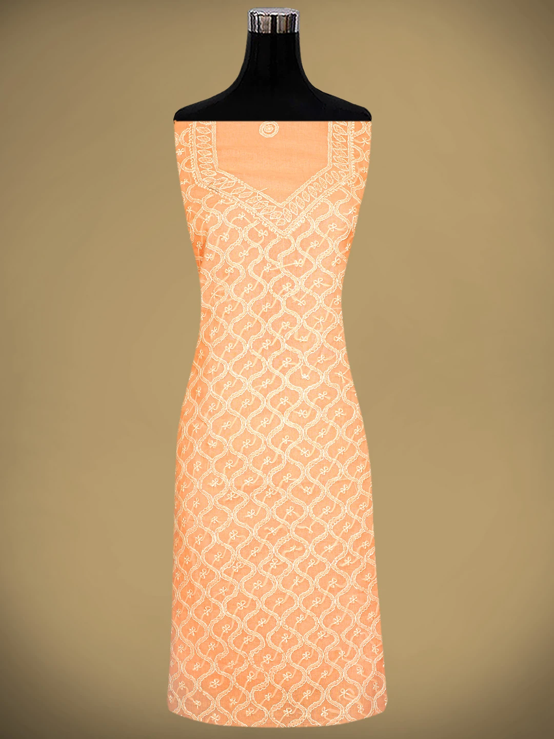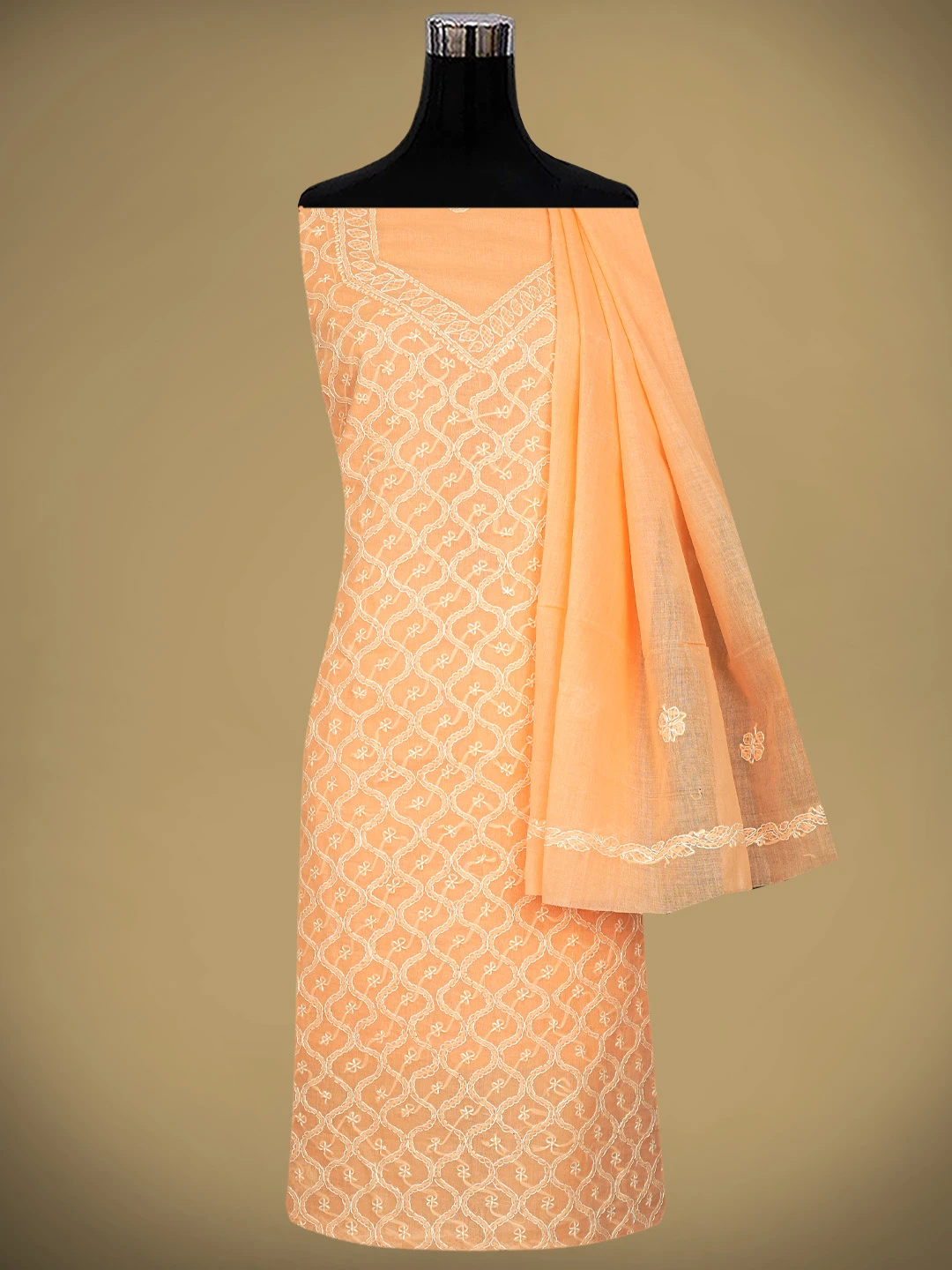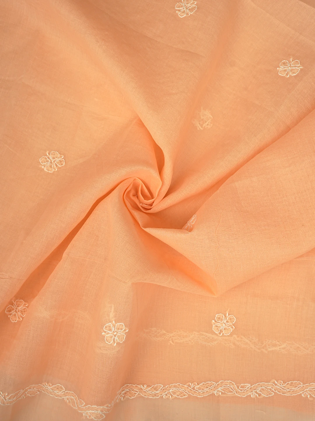 Ada Hand Embroidered Peach Cotton Lucknowi Chikankari Unstitched Suit Piece 01A882342