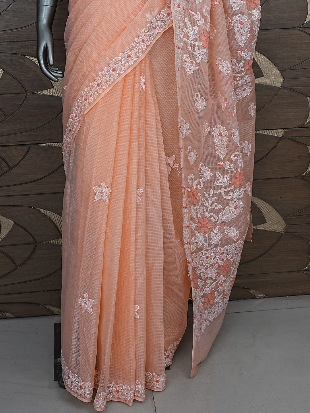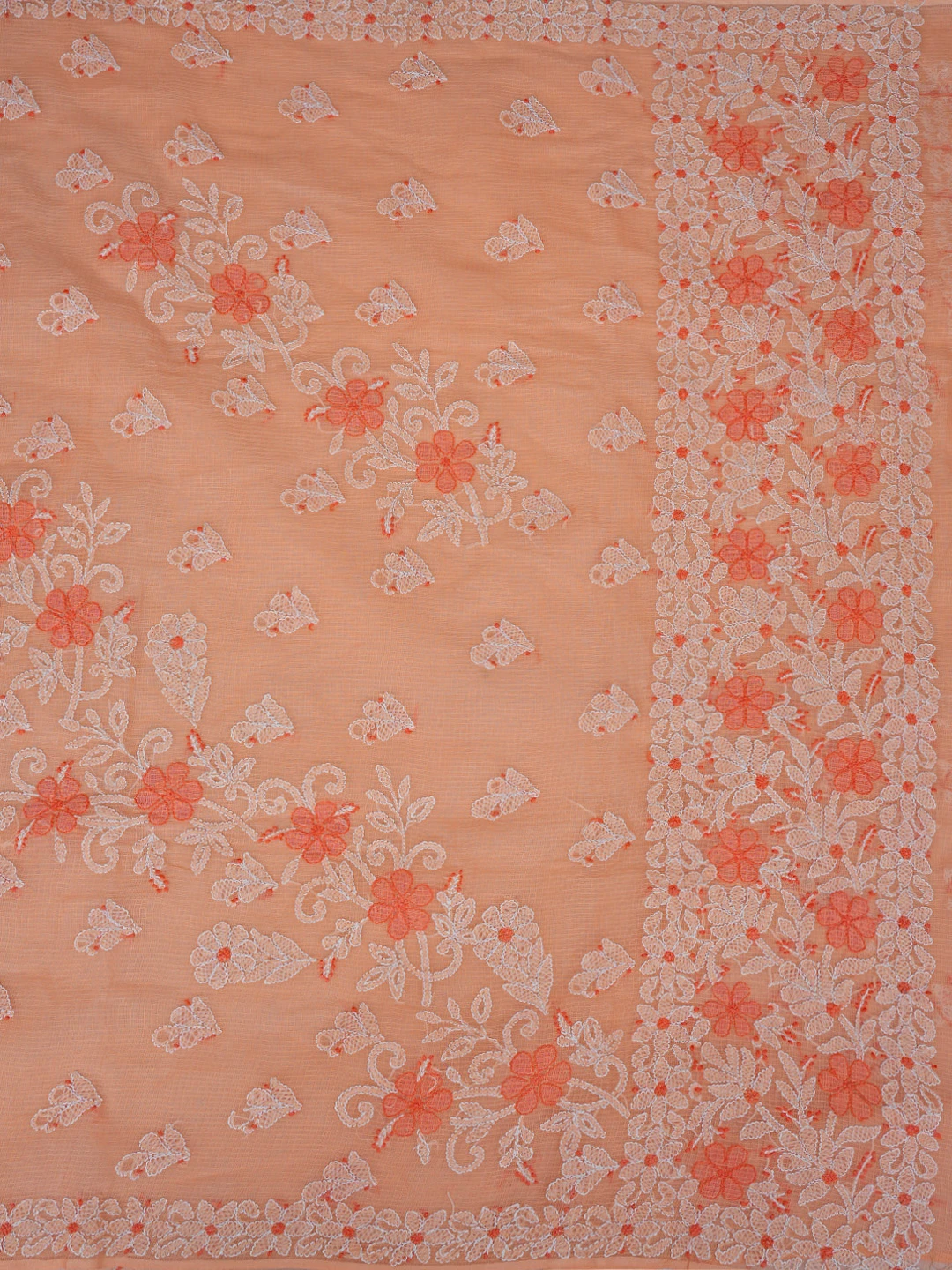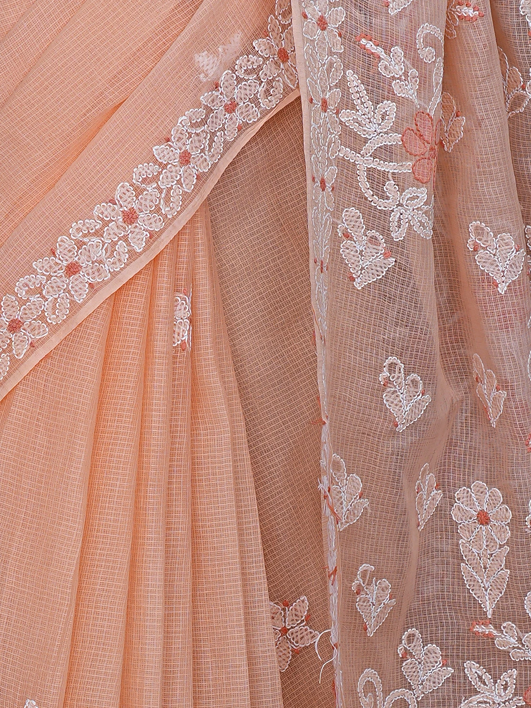 Ada Hand Embroidered Peach Kota Lucknowi Chikankari Saree and Blouse 01A872956