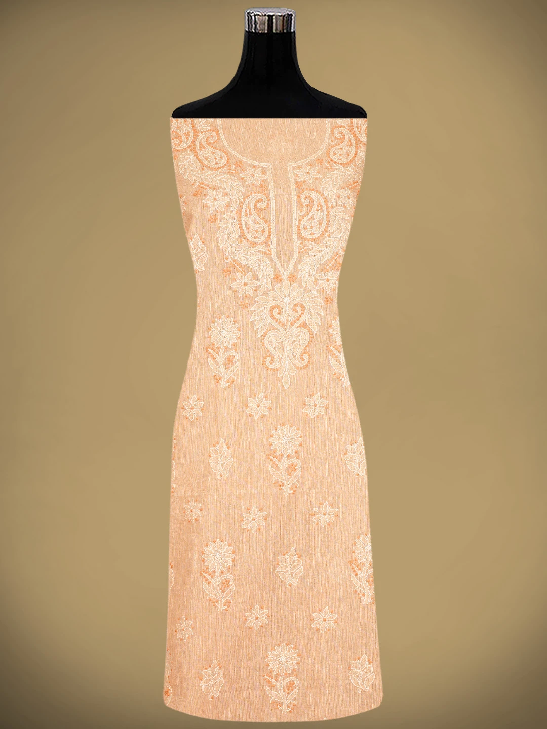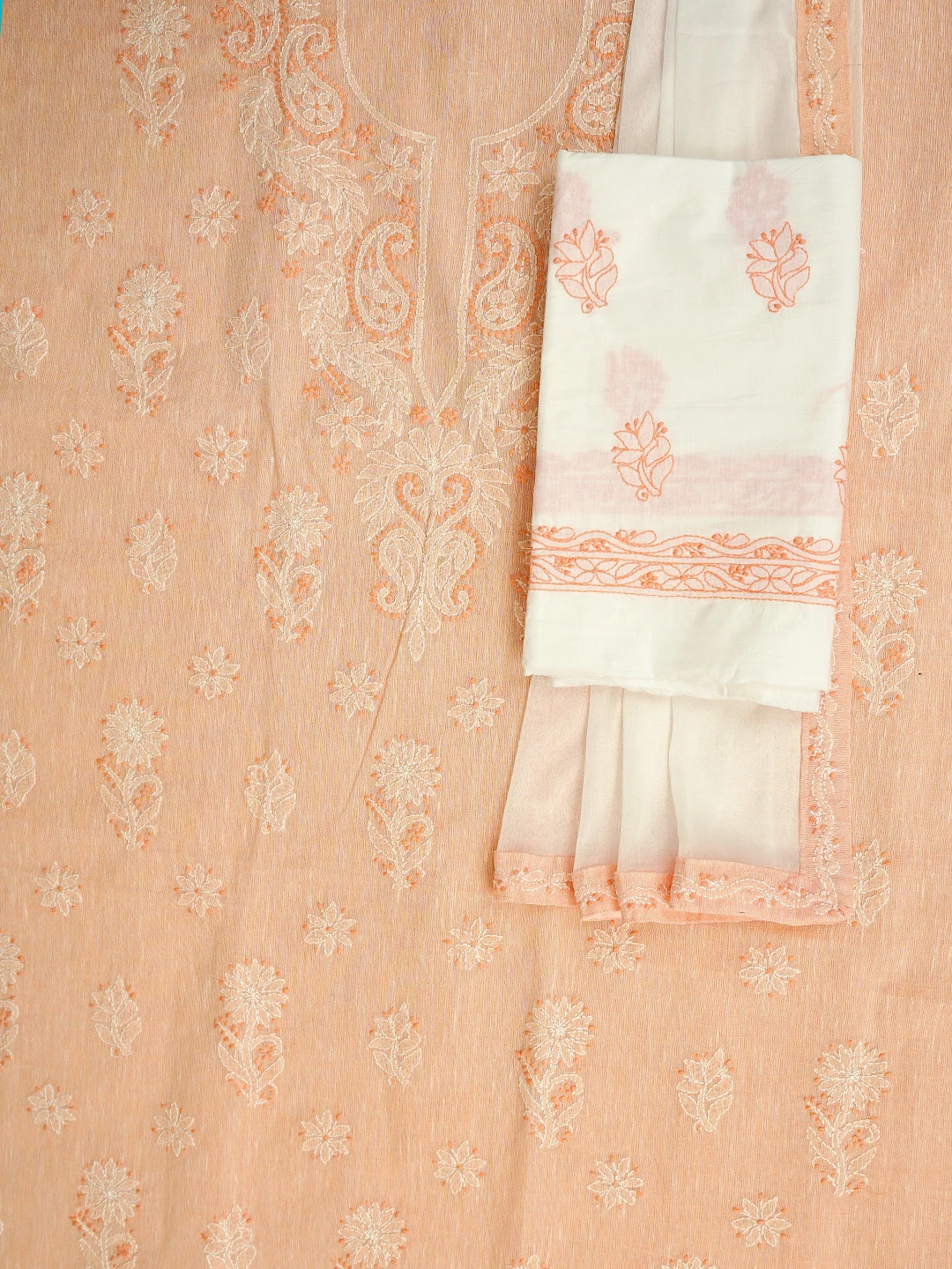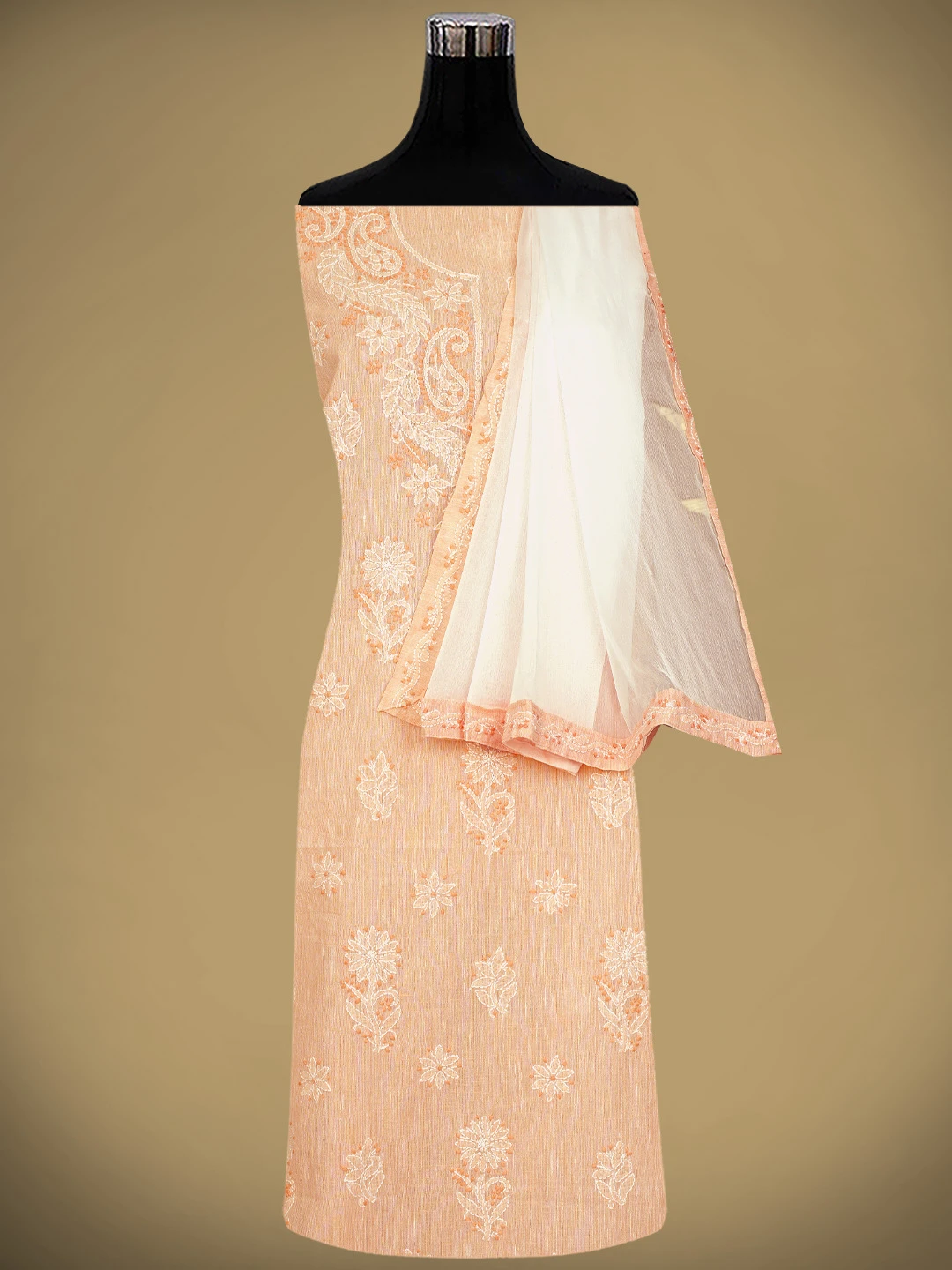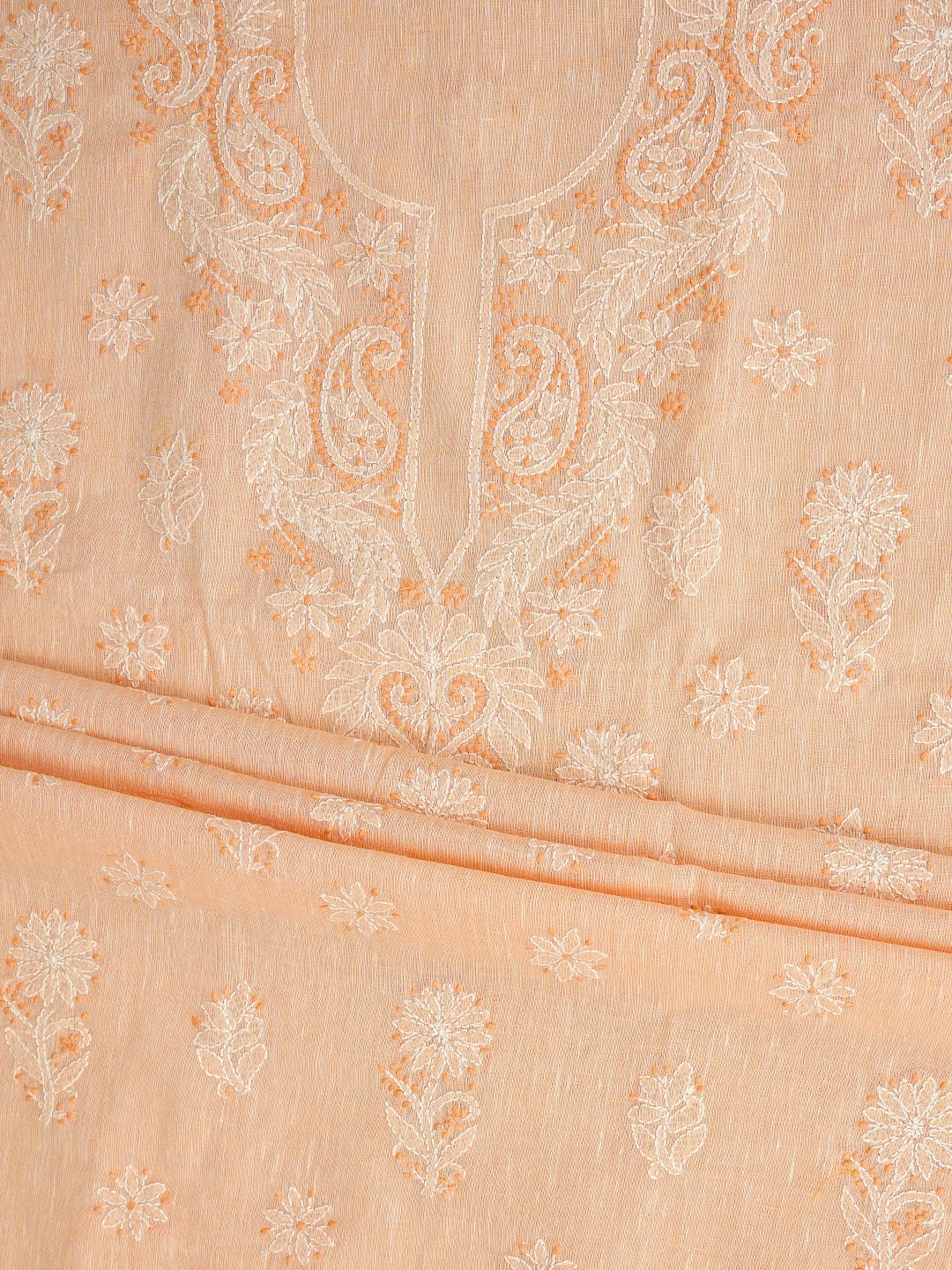 Ada Hand Embroidered Peach Linen Lucknowi Chikankari Unstitched Suit Piece 01A885295