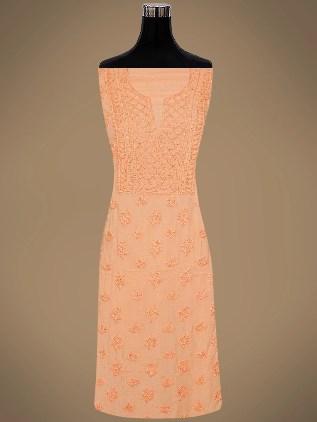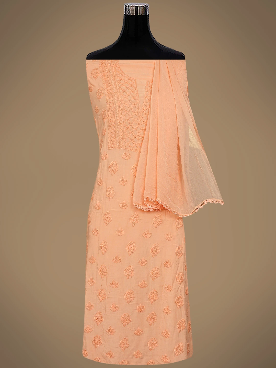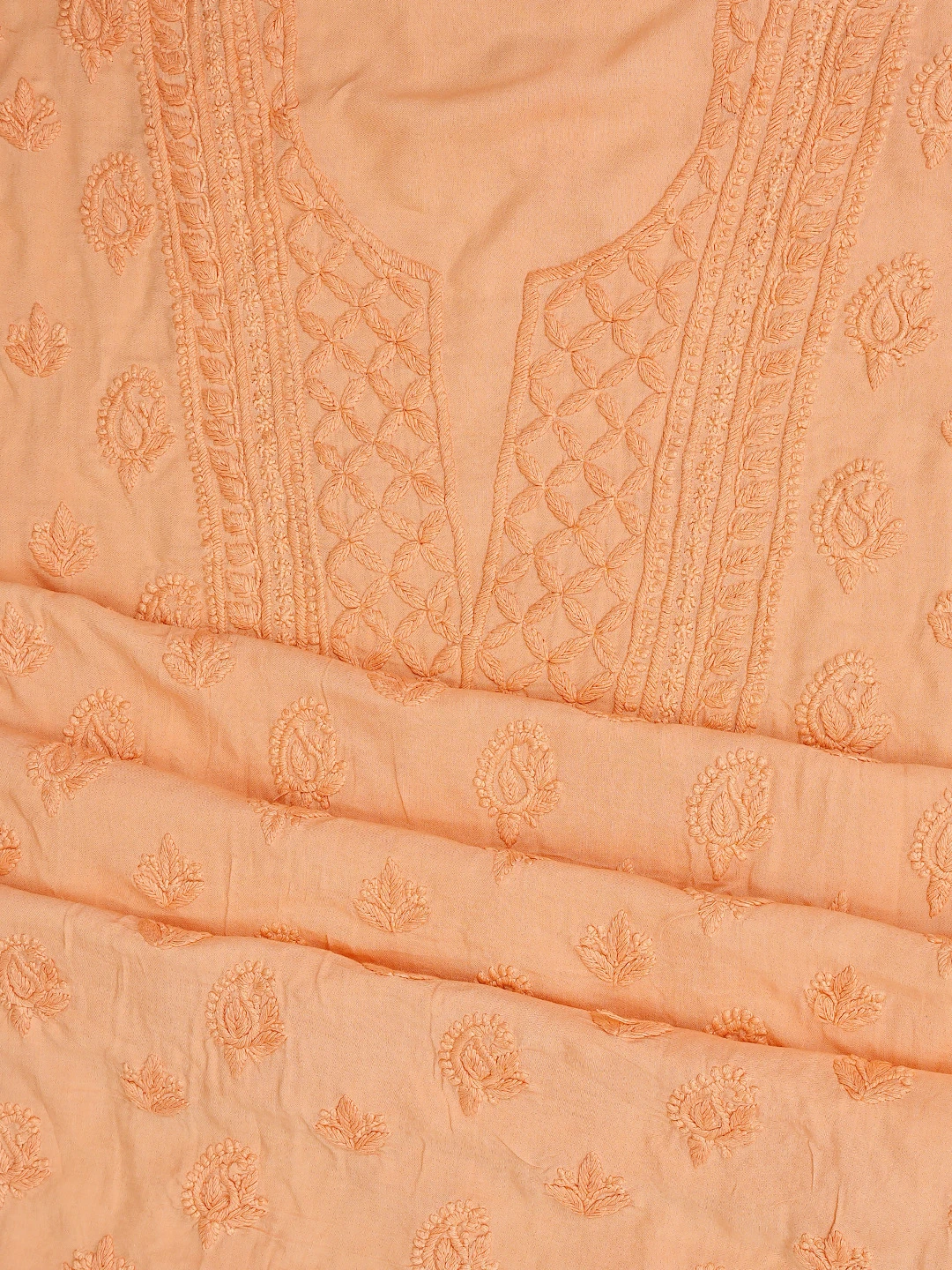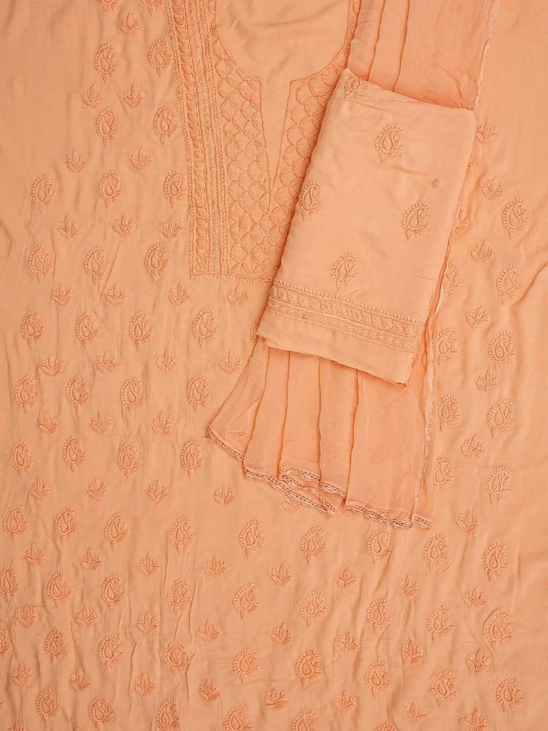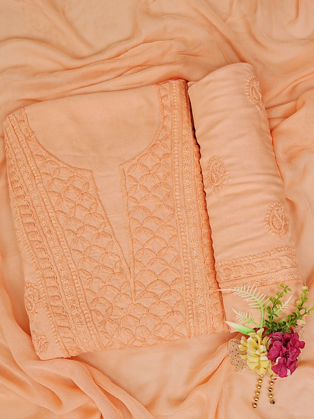 Ada Hand Embroidered Peach Modal Lucknowi Chikankari Unstitched Suit Piece 01A368088