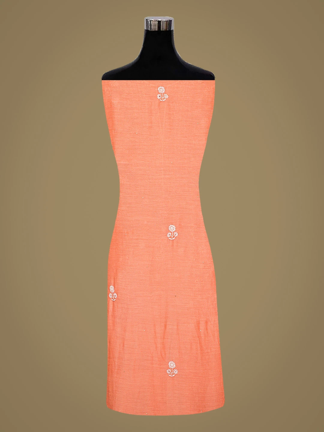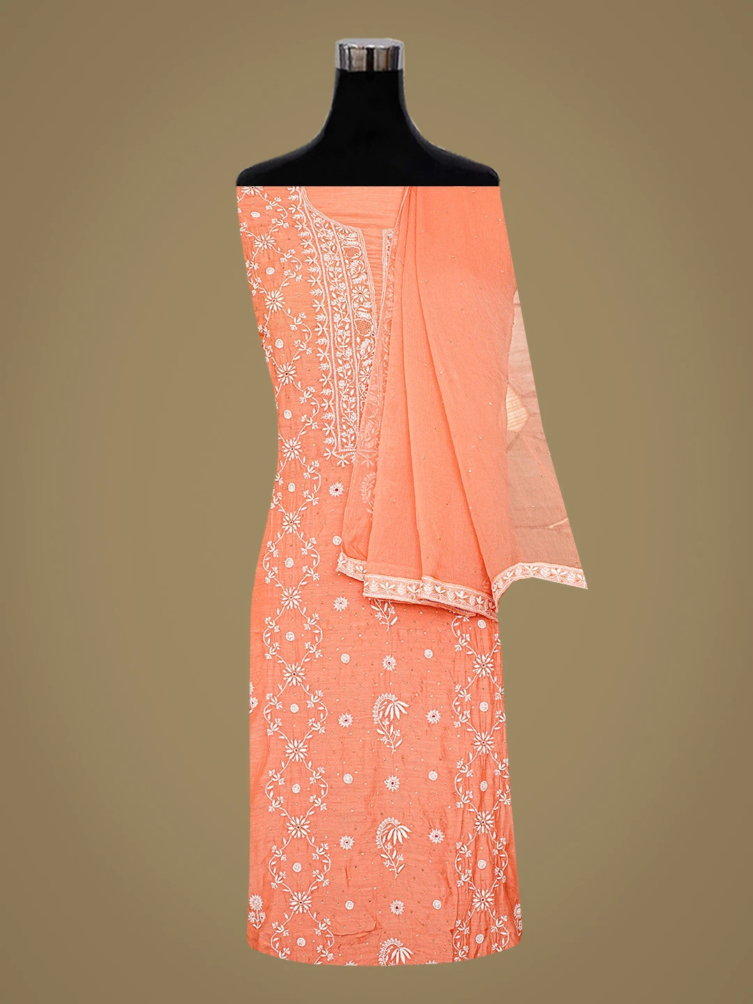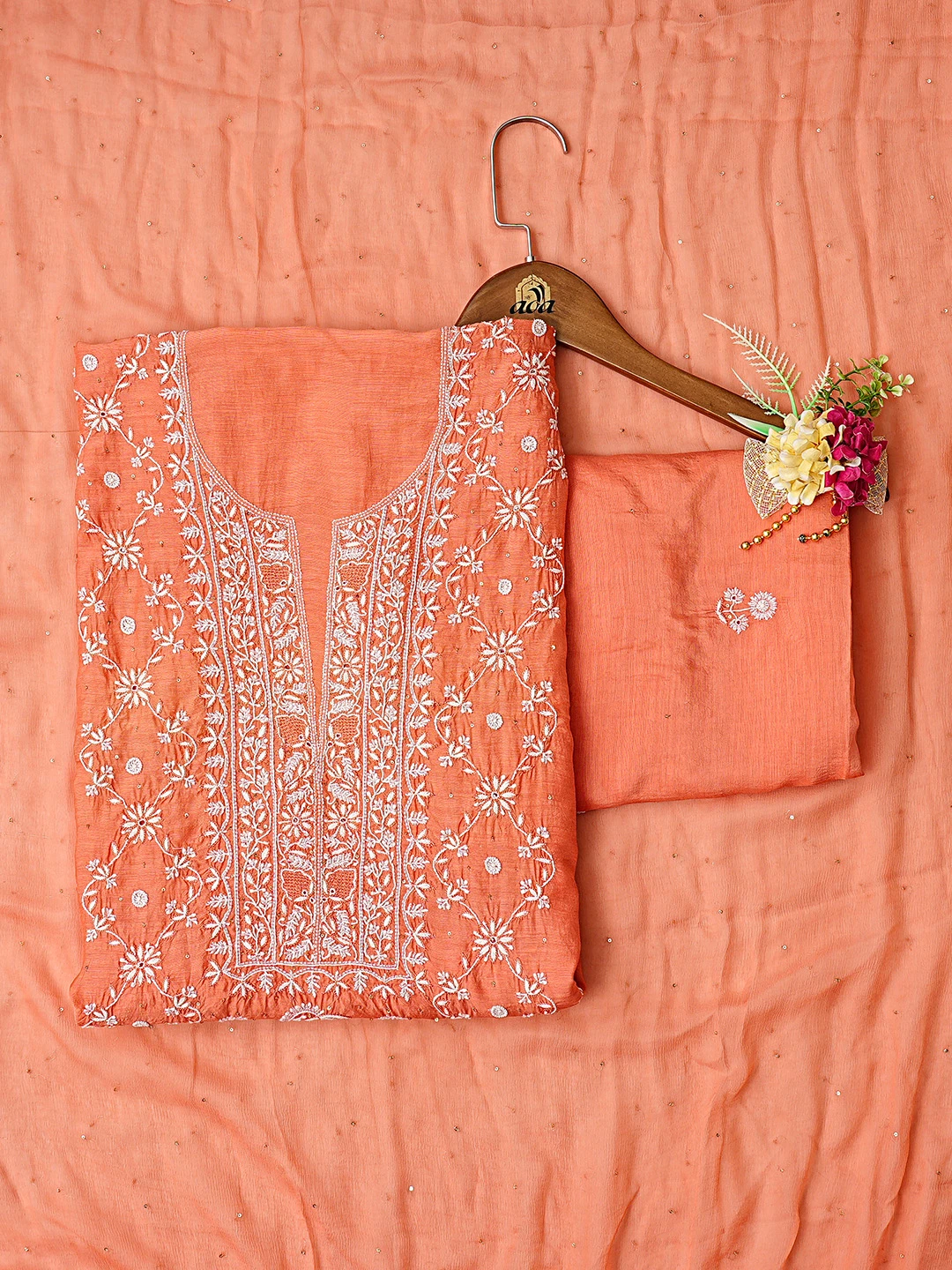 Ada Hand Embroidered Peach Muslin Lucknowi Chikankari Unstitched Suit Piece With Cutdana Work 01A488131