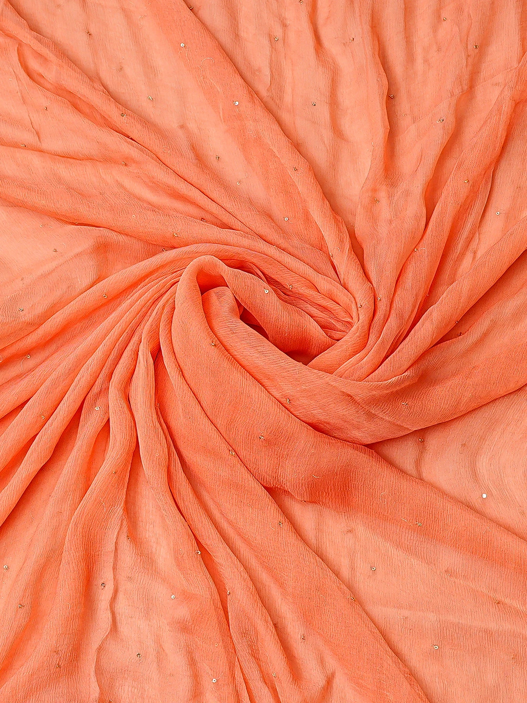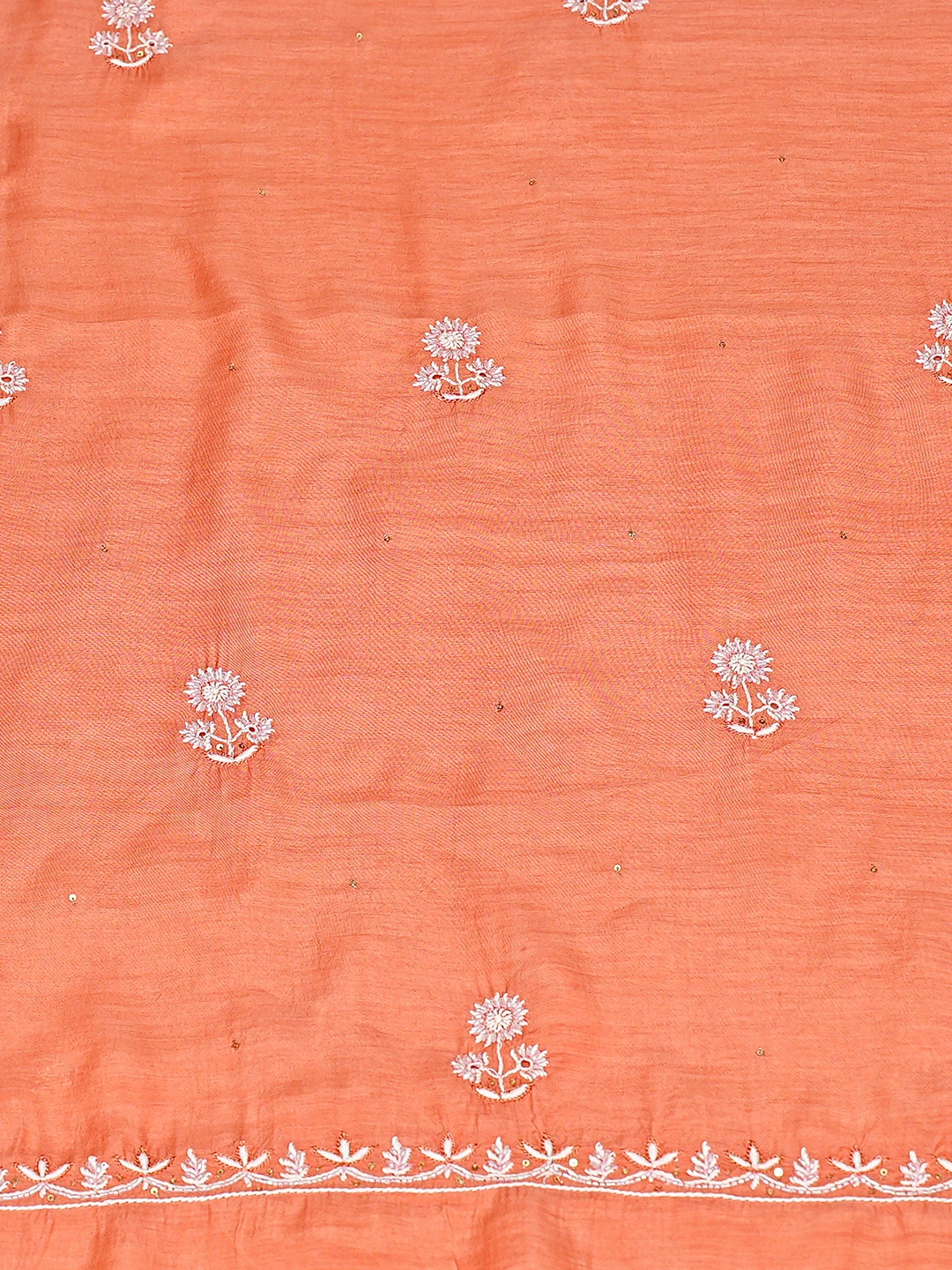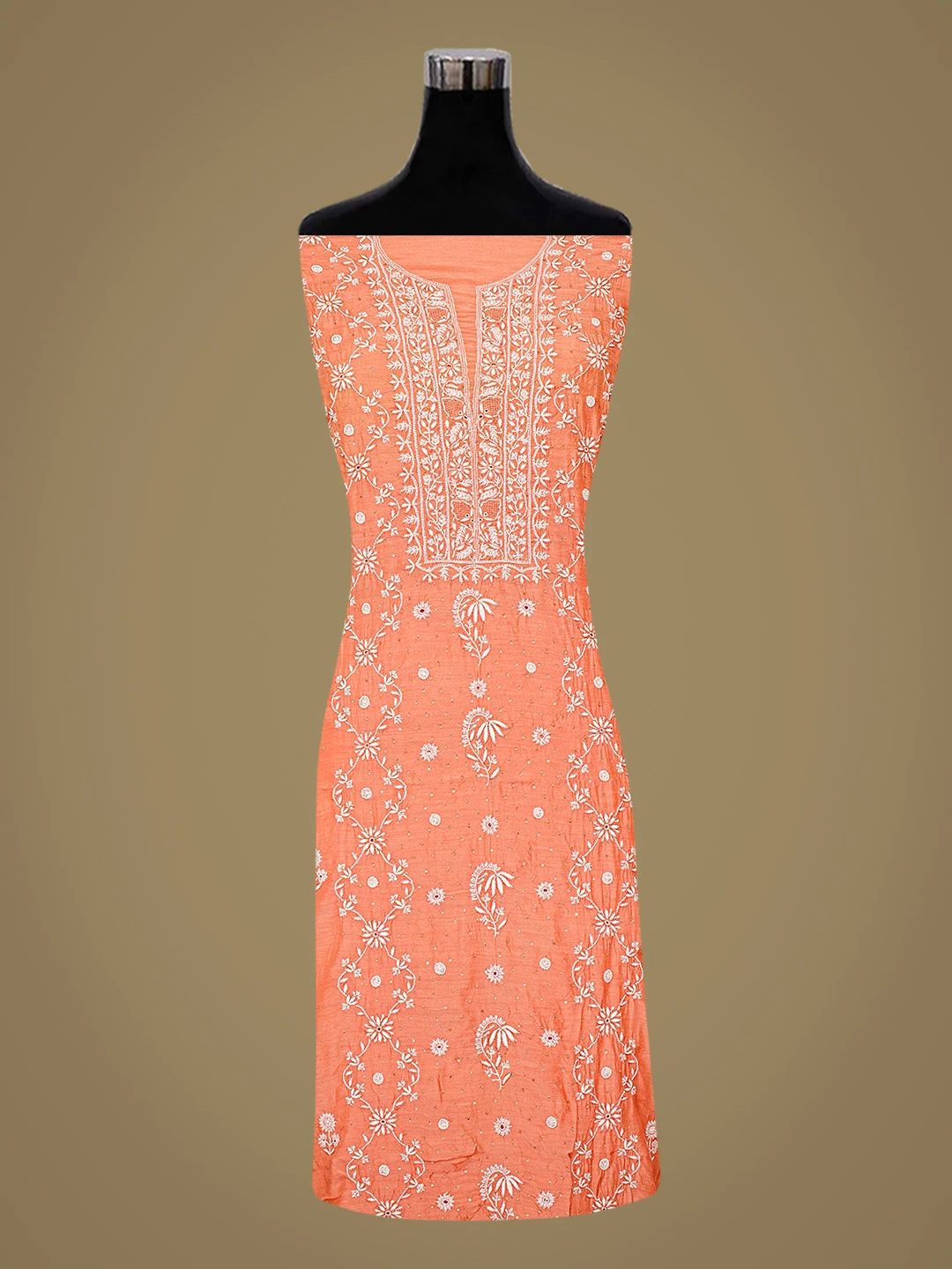 Ada Hand Embroidered Peach Muslin Lucknowi Chikankari Unstitched Suit Piece With Cutdana Work 01A488131