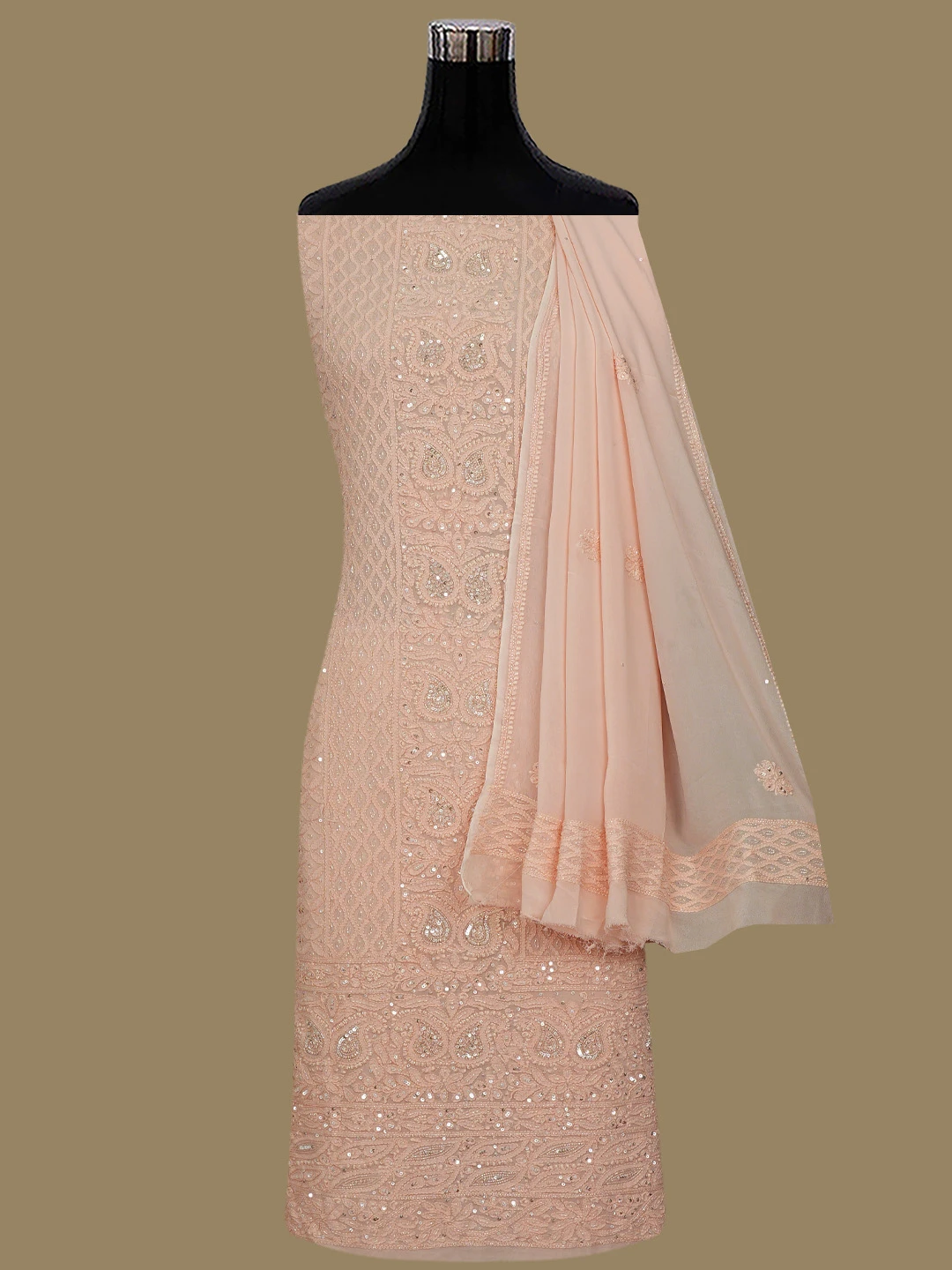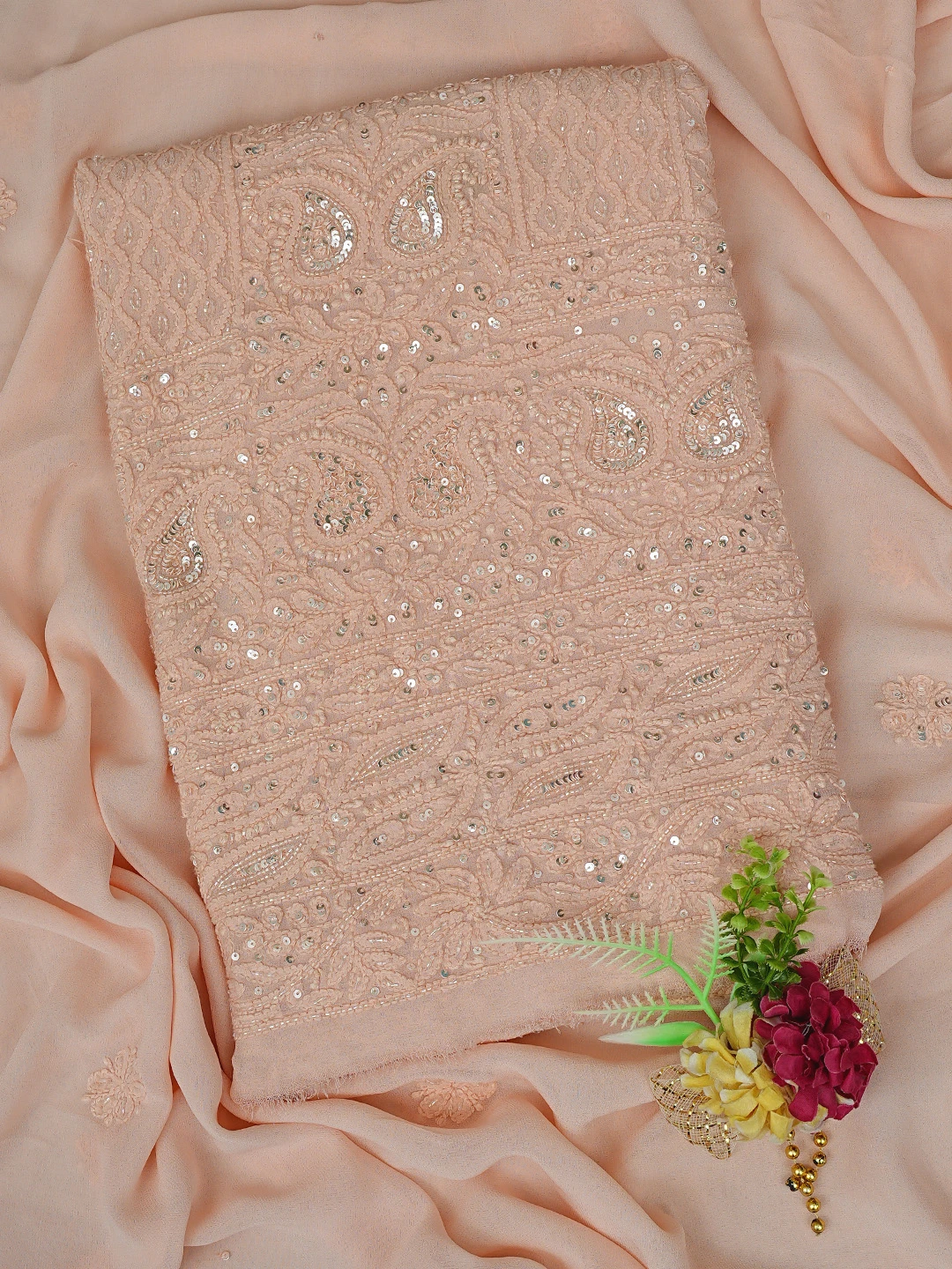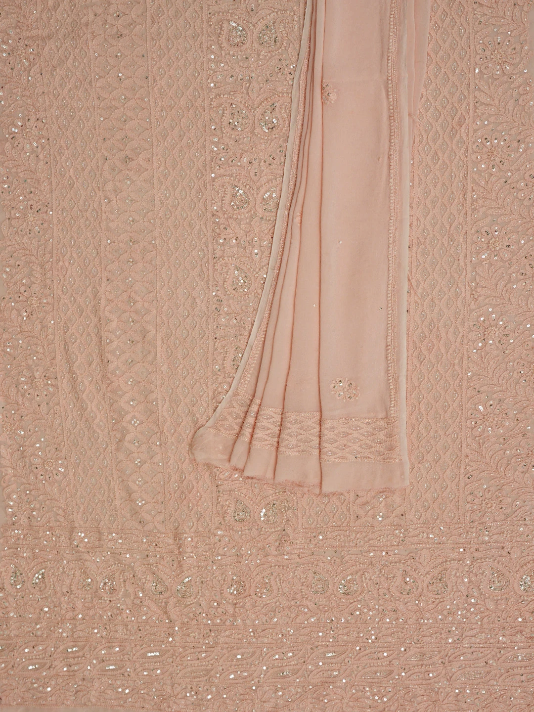 Ada Hand Embroidered Peach Viscose Georgette Lucknowi Chikankari Unstitched Kurta Dupatta Set With Cutdana Work 01A789419