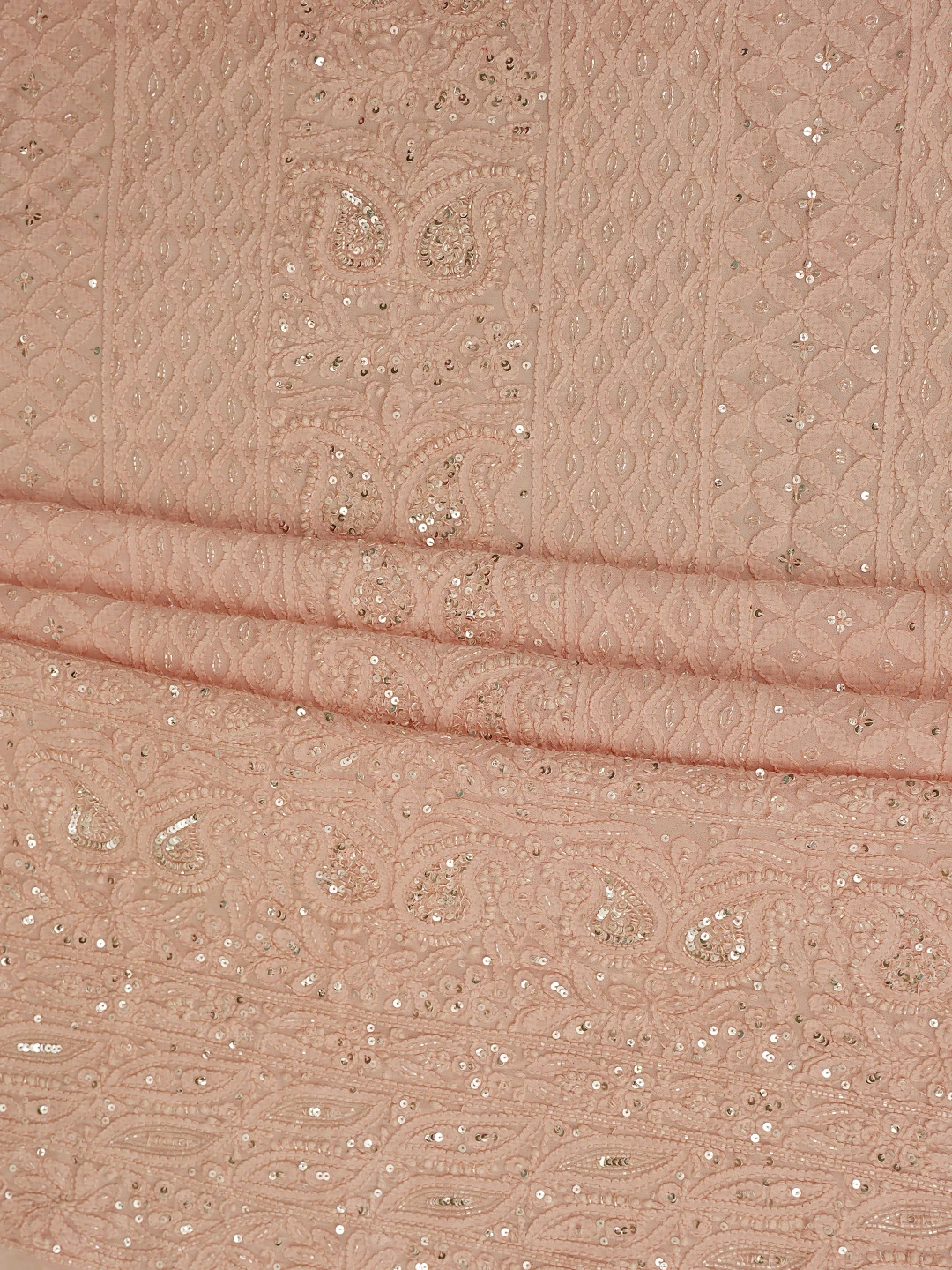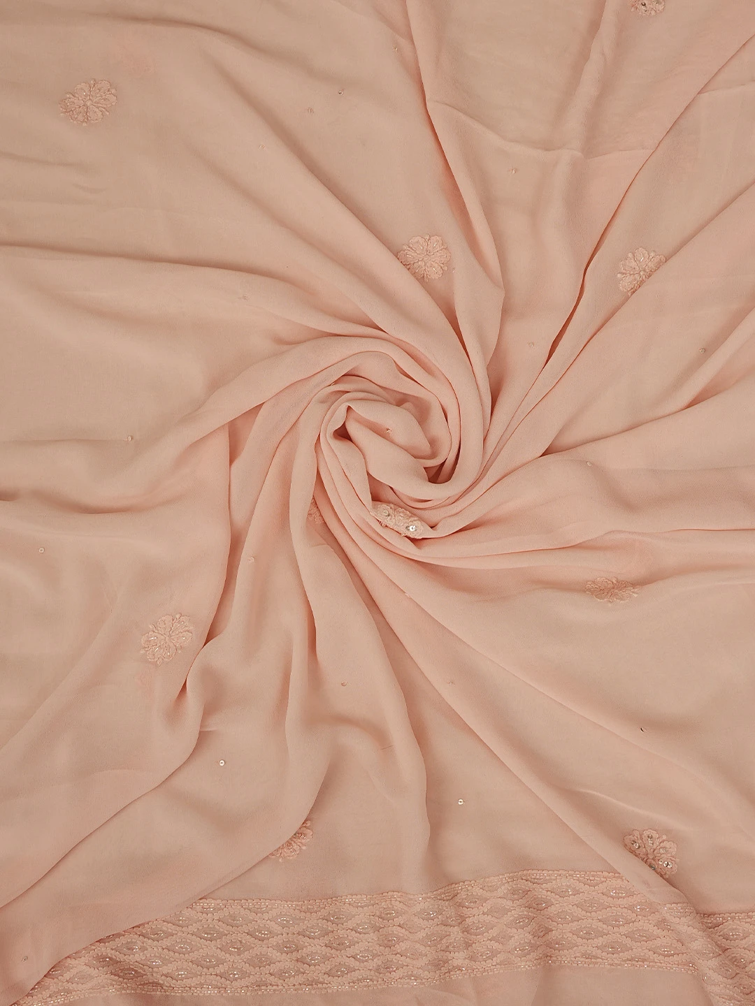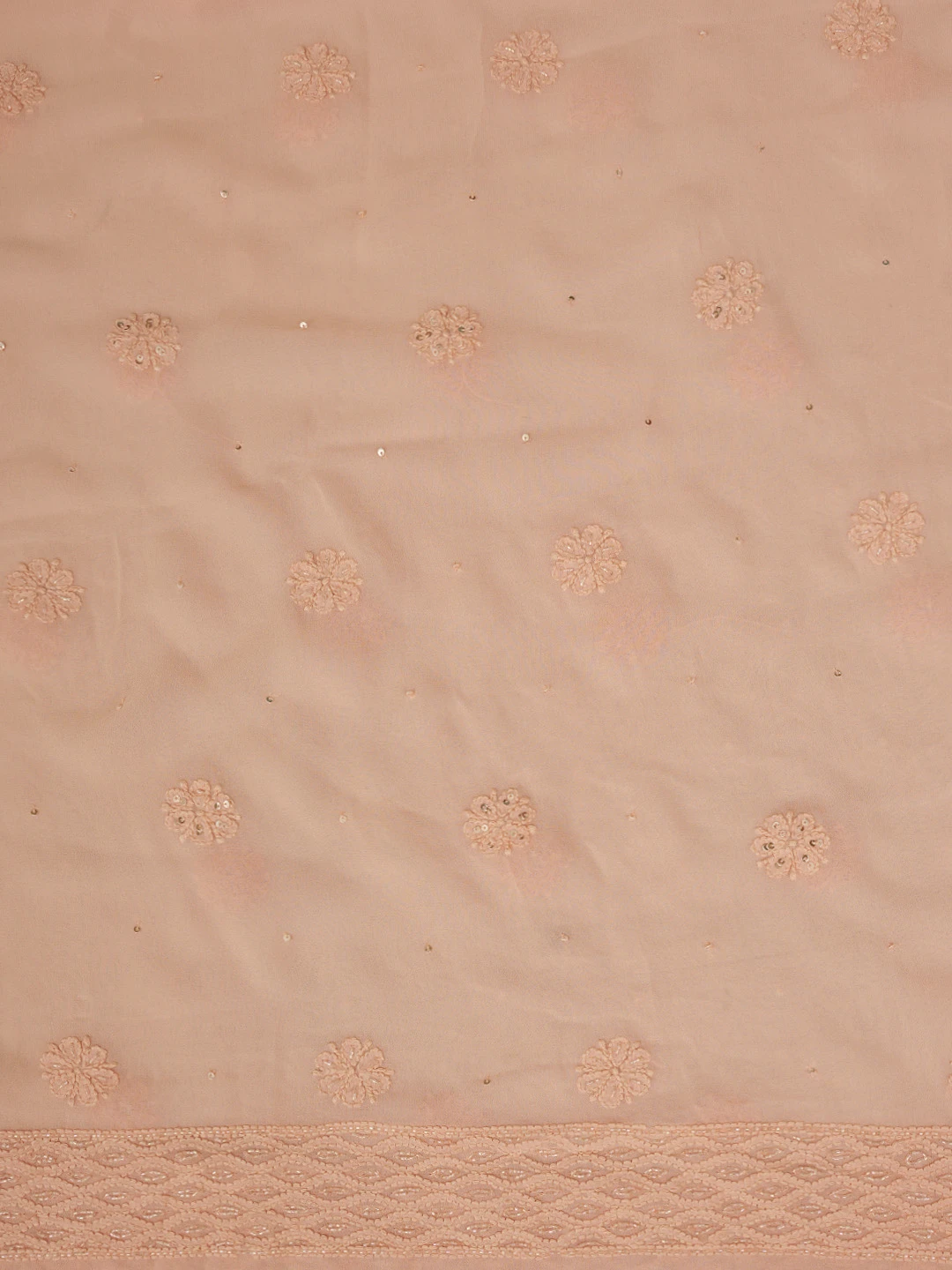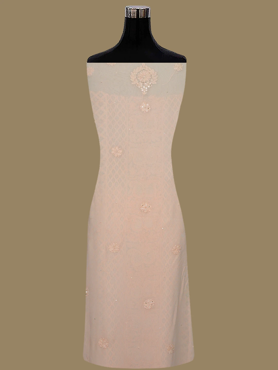 Ada Hand Embroidered Peach Viscose Georgette Lucknowi Chikankari Unstitched Kurta Dupatta Set With Cutdana Work 01A789419