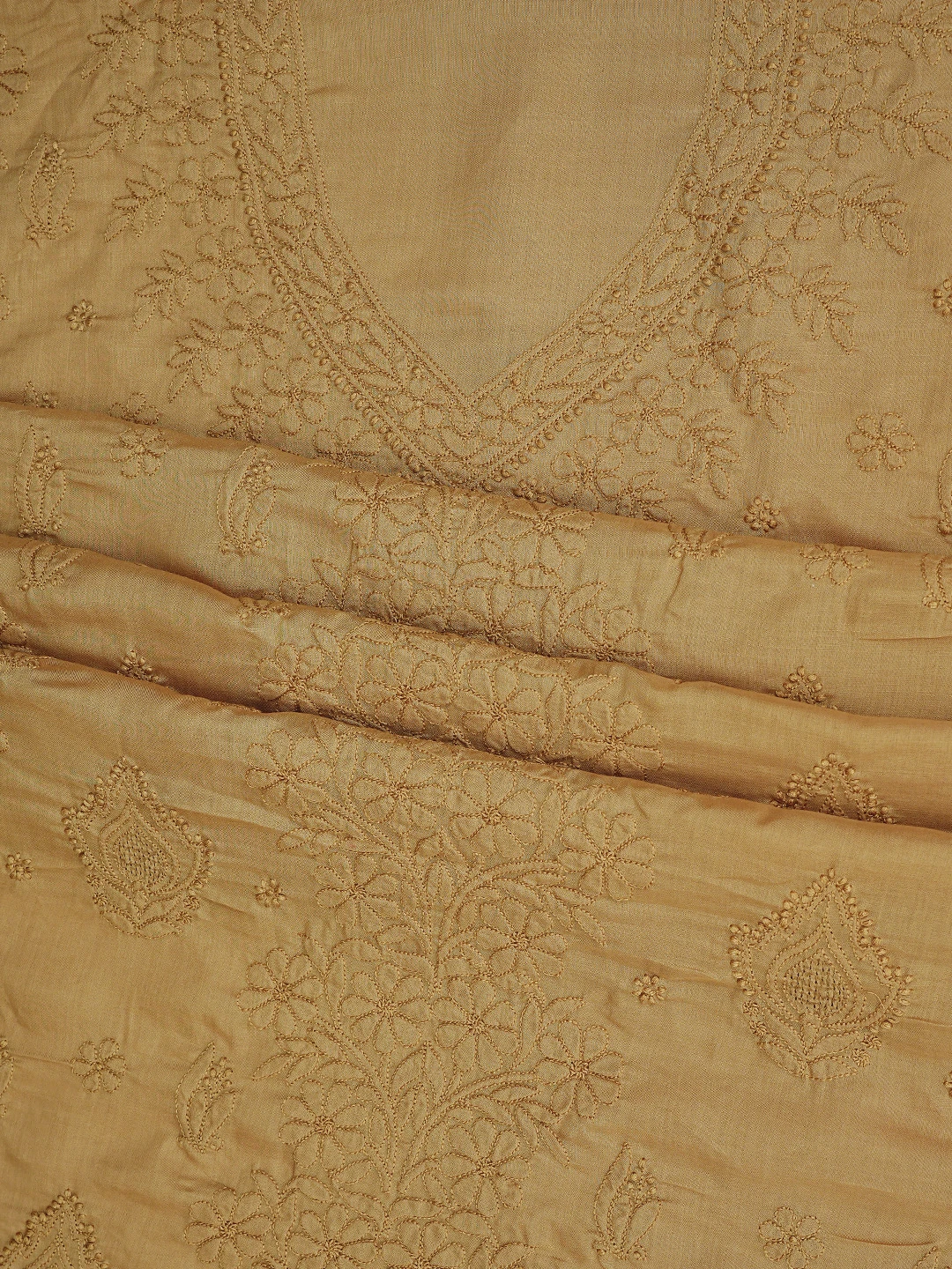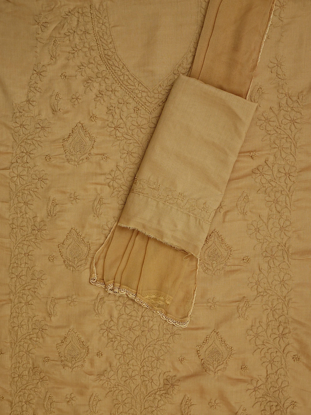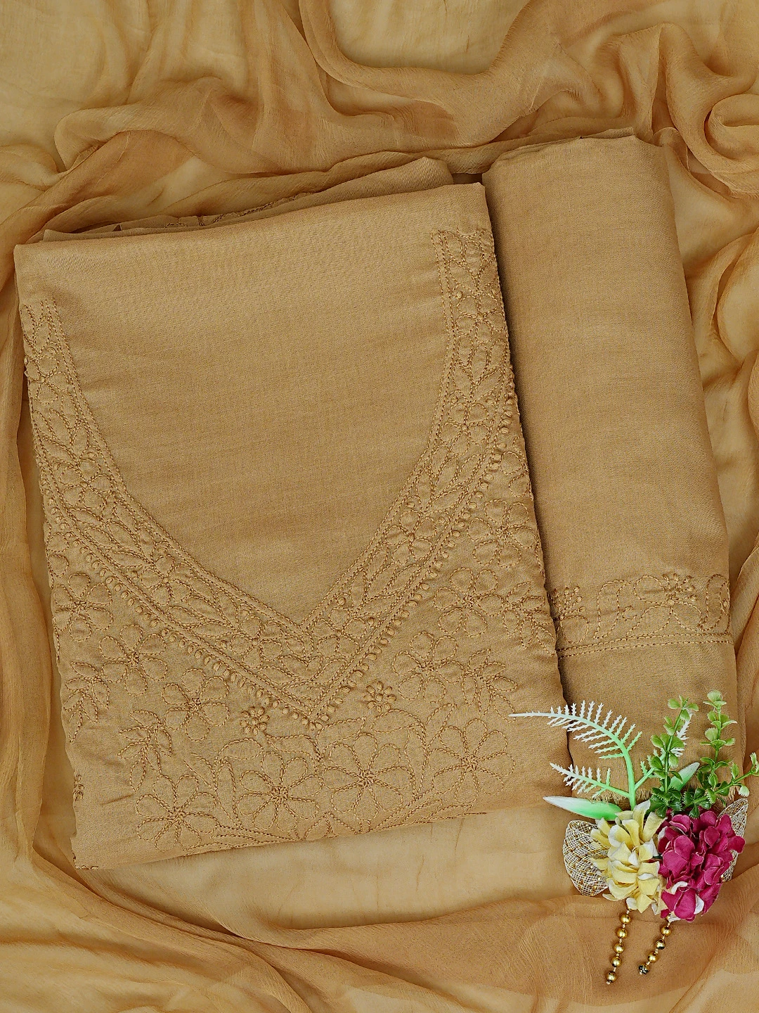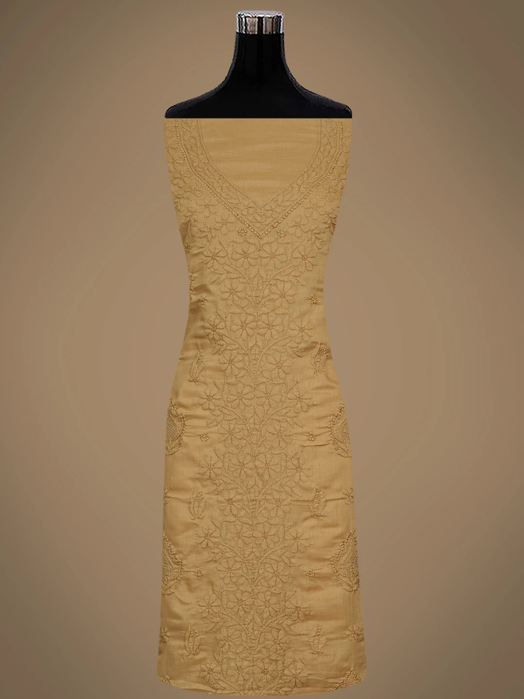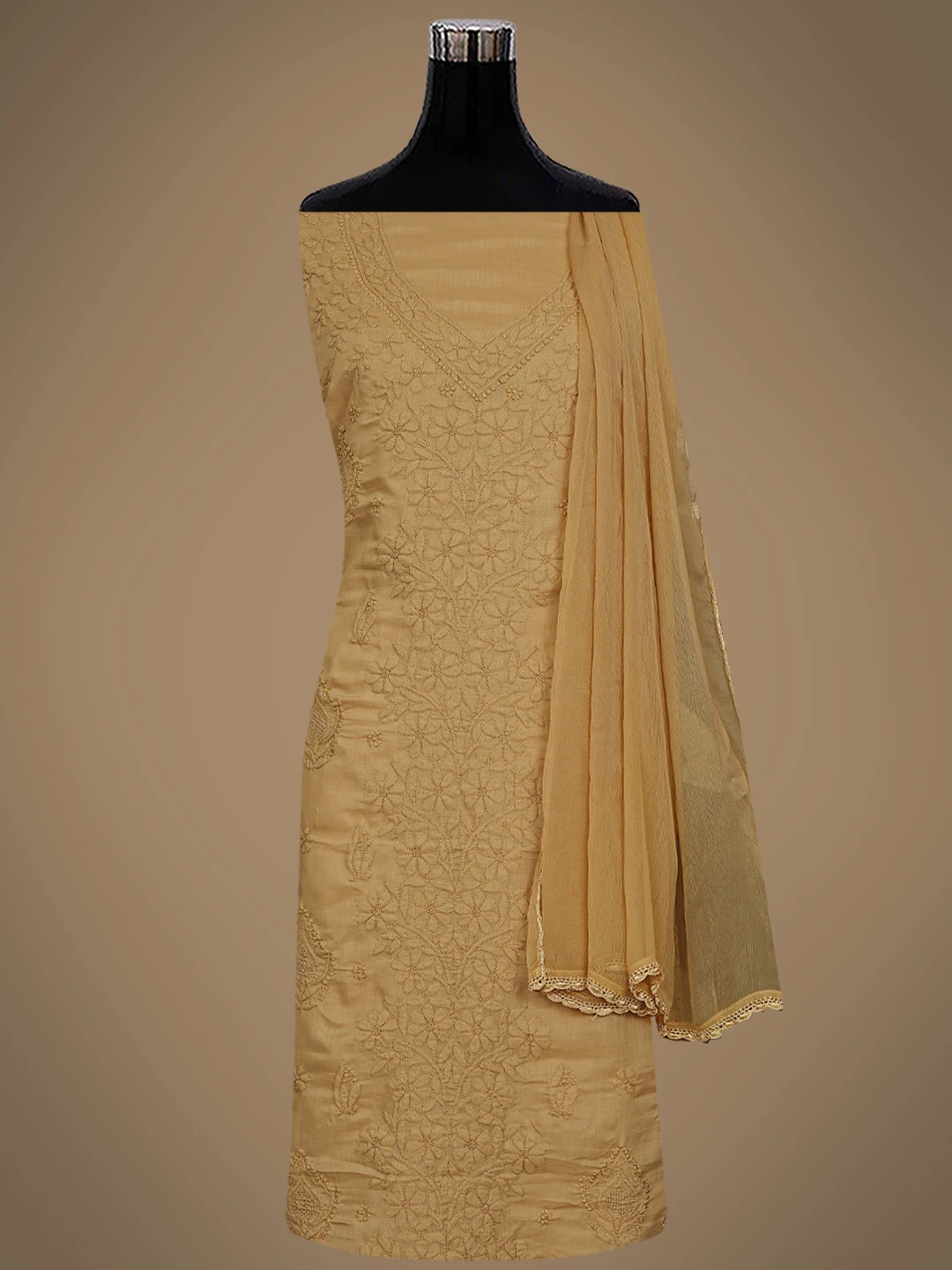 Ada Hand Embroidered Peanut Brown Cotton Lucknowi Chikankari Unstitched Suit Piece 01A869266