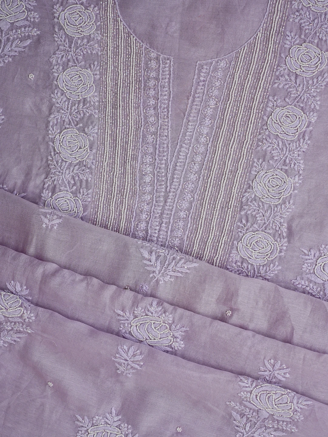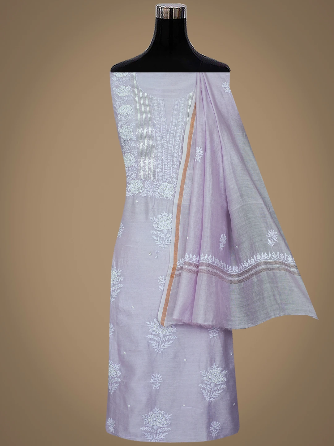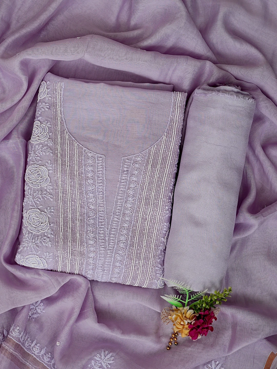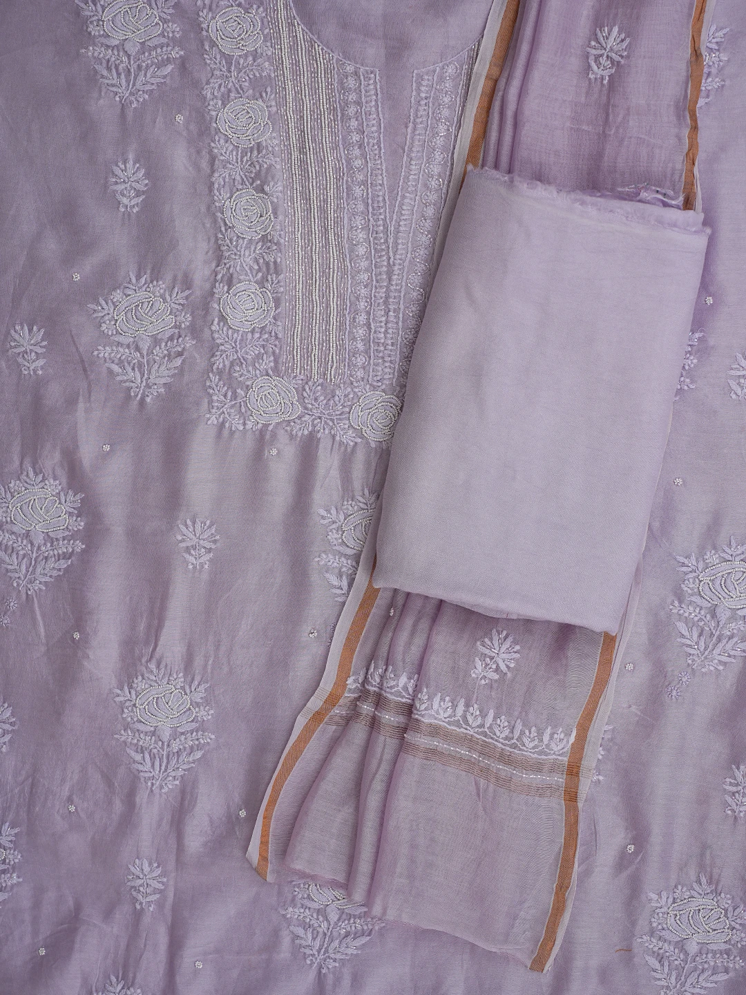 Ada Hand Embroidered Periwinkle Blue Chanderi Lucknowi Chikankari Unstitched Suit Piece With Cutdana Work 01A842109