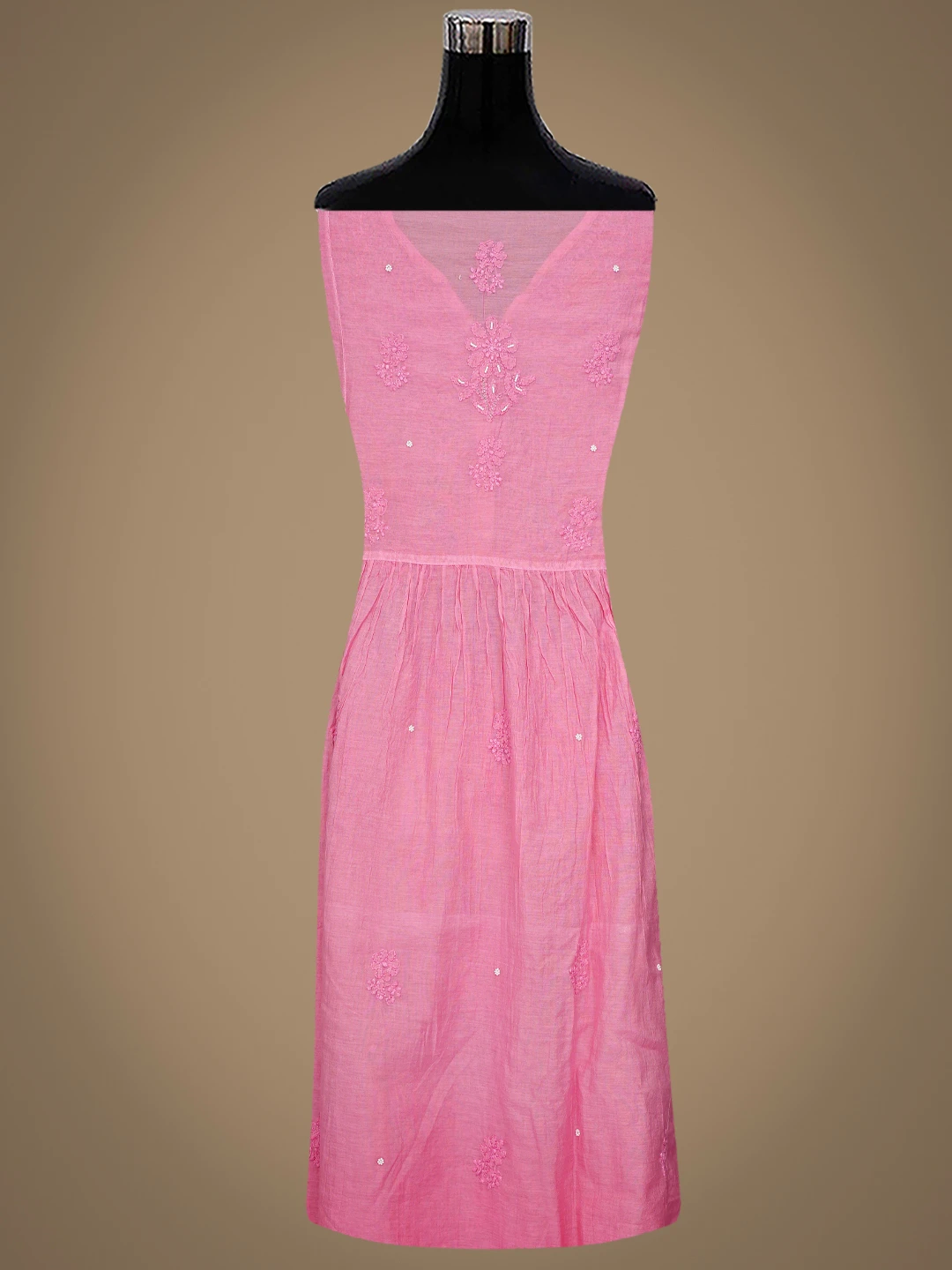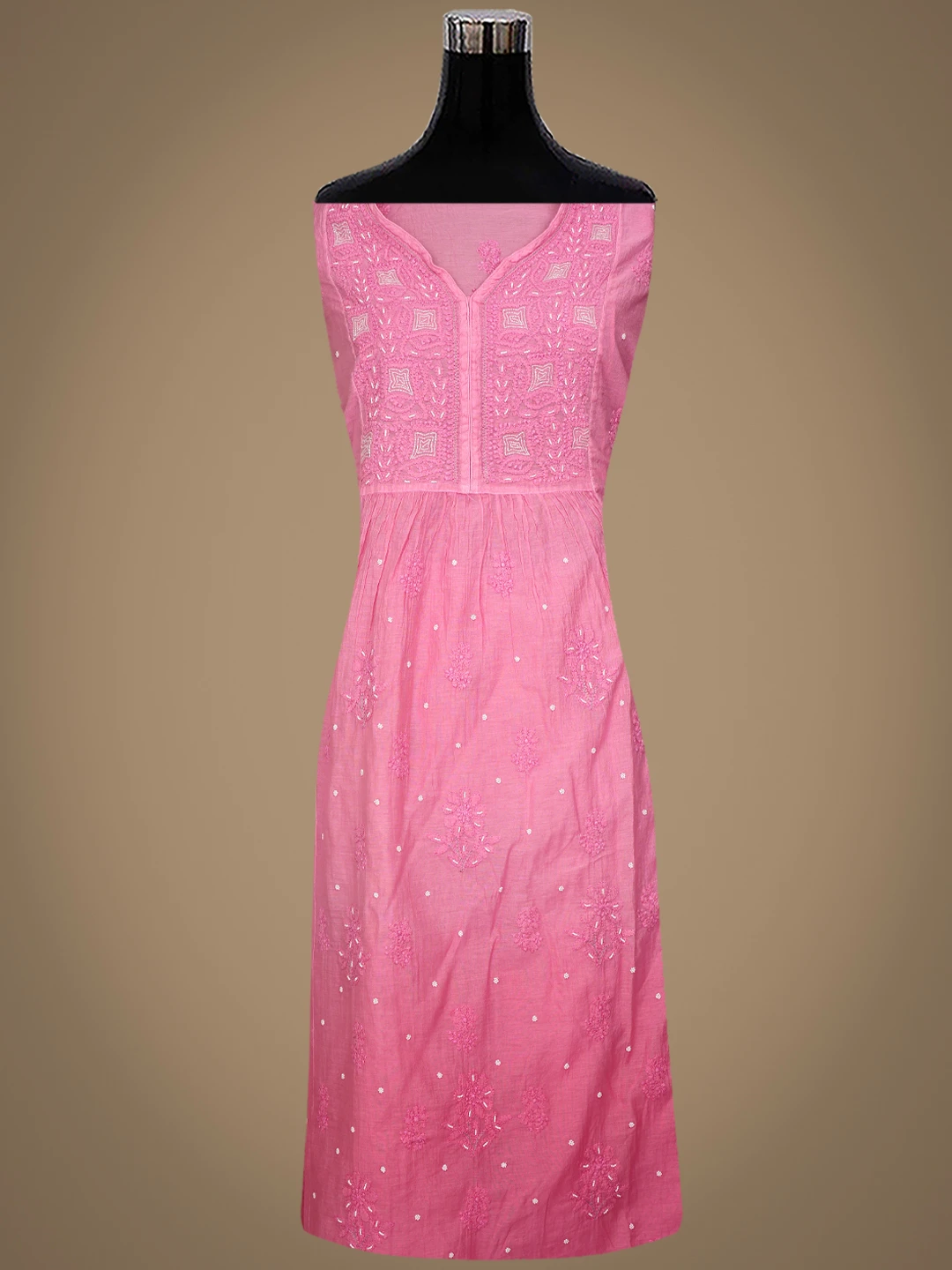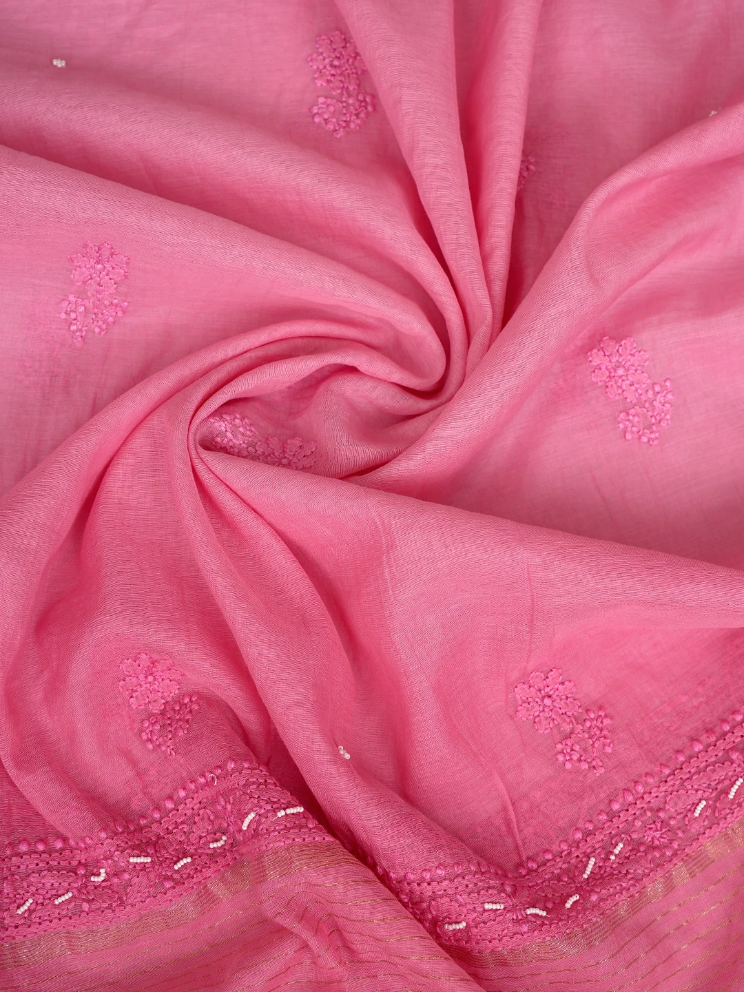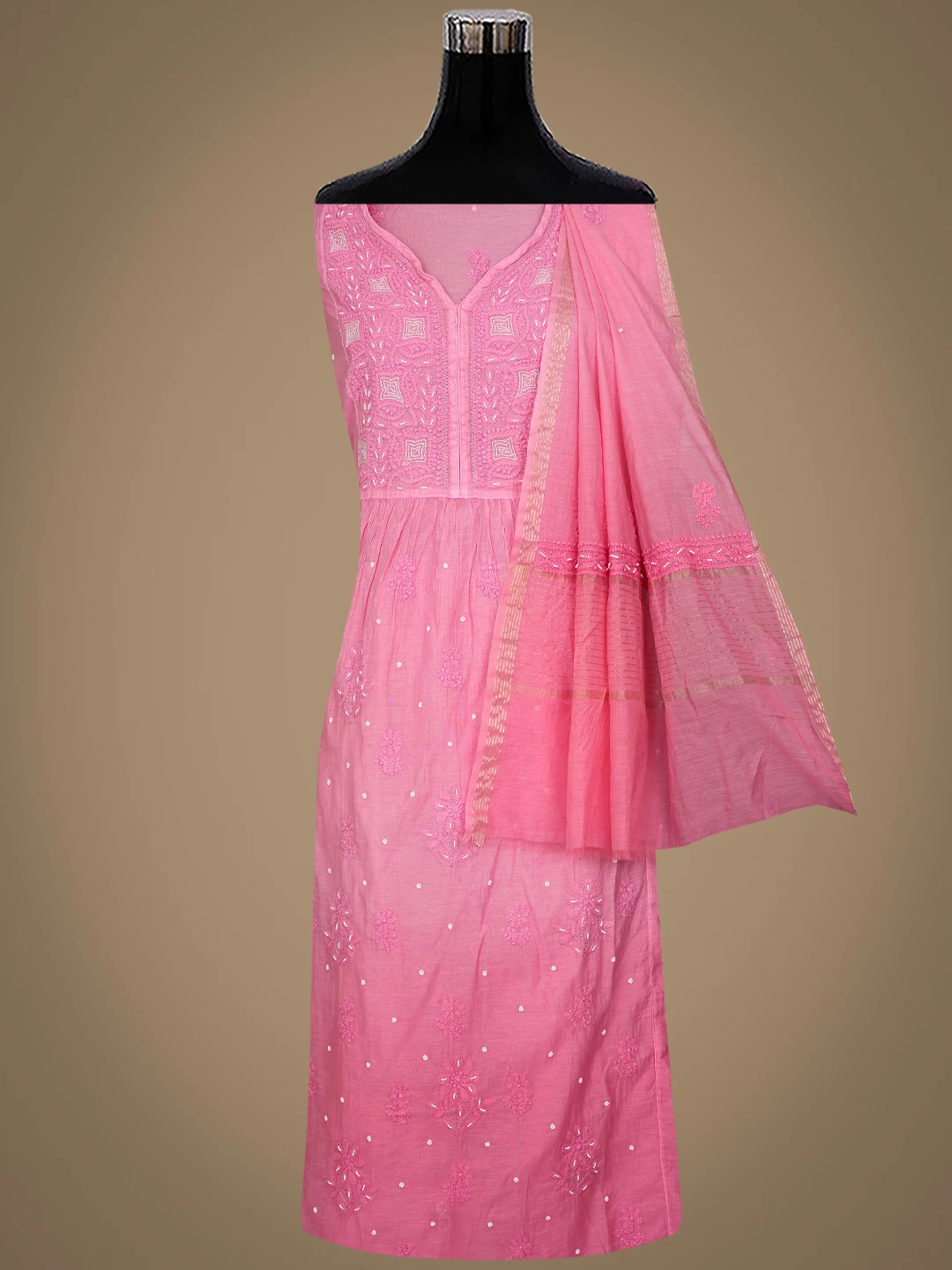 Ada Hand Embroidered Pink Chanderi Lucknowi Chikankari Semi-Stitched Kurta Dupatta Set With Cutdana Work 01A833551