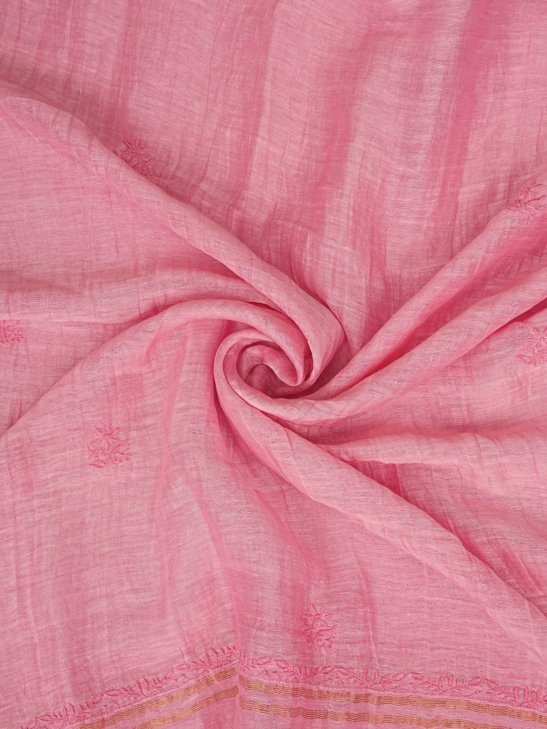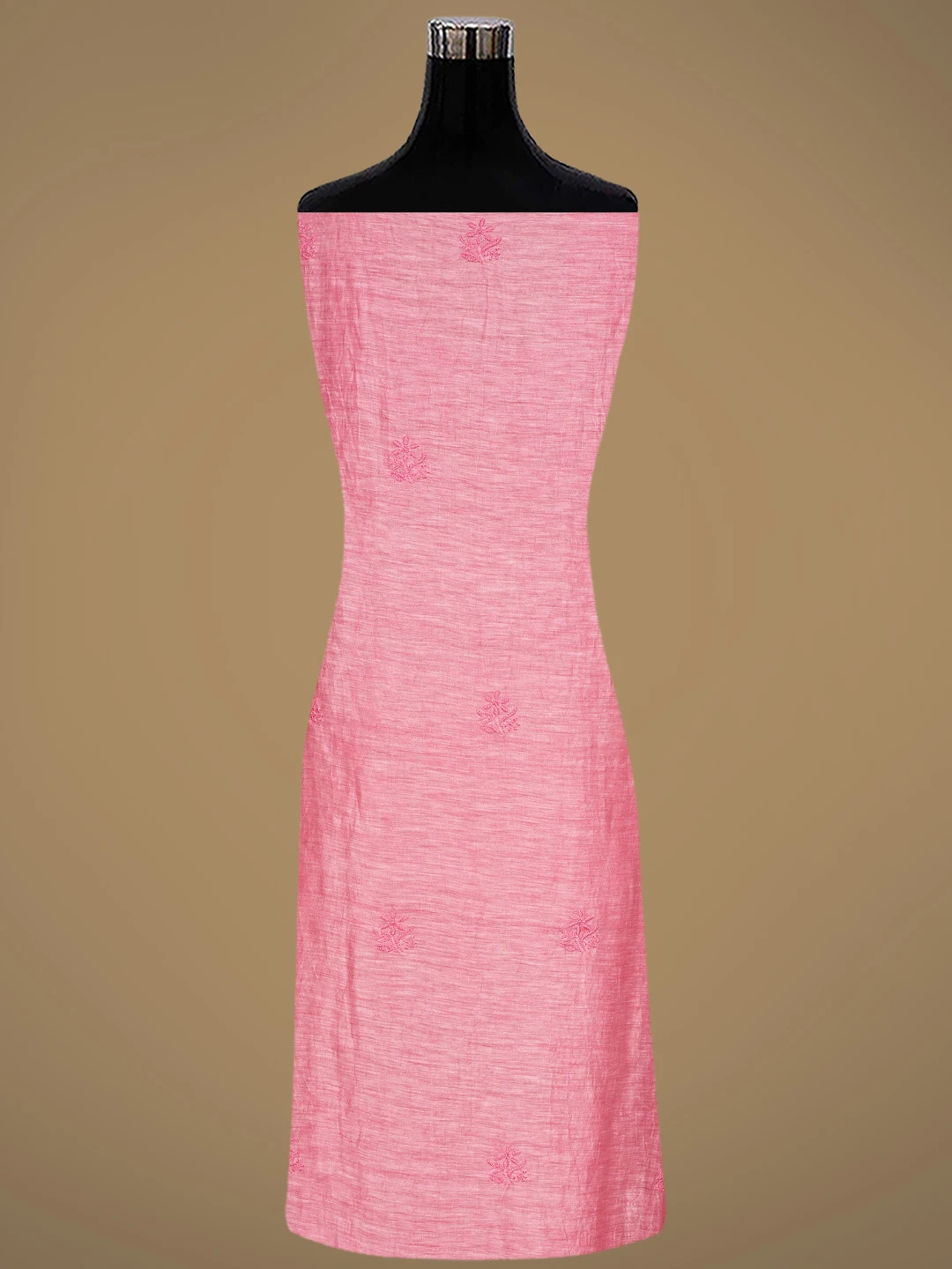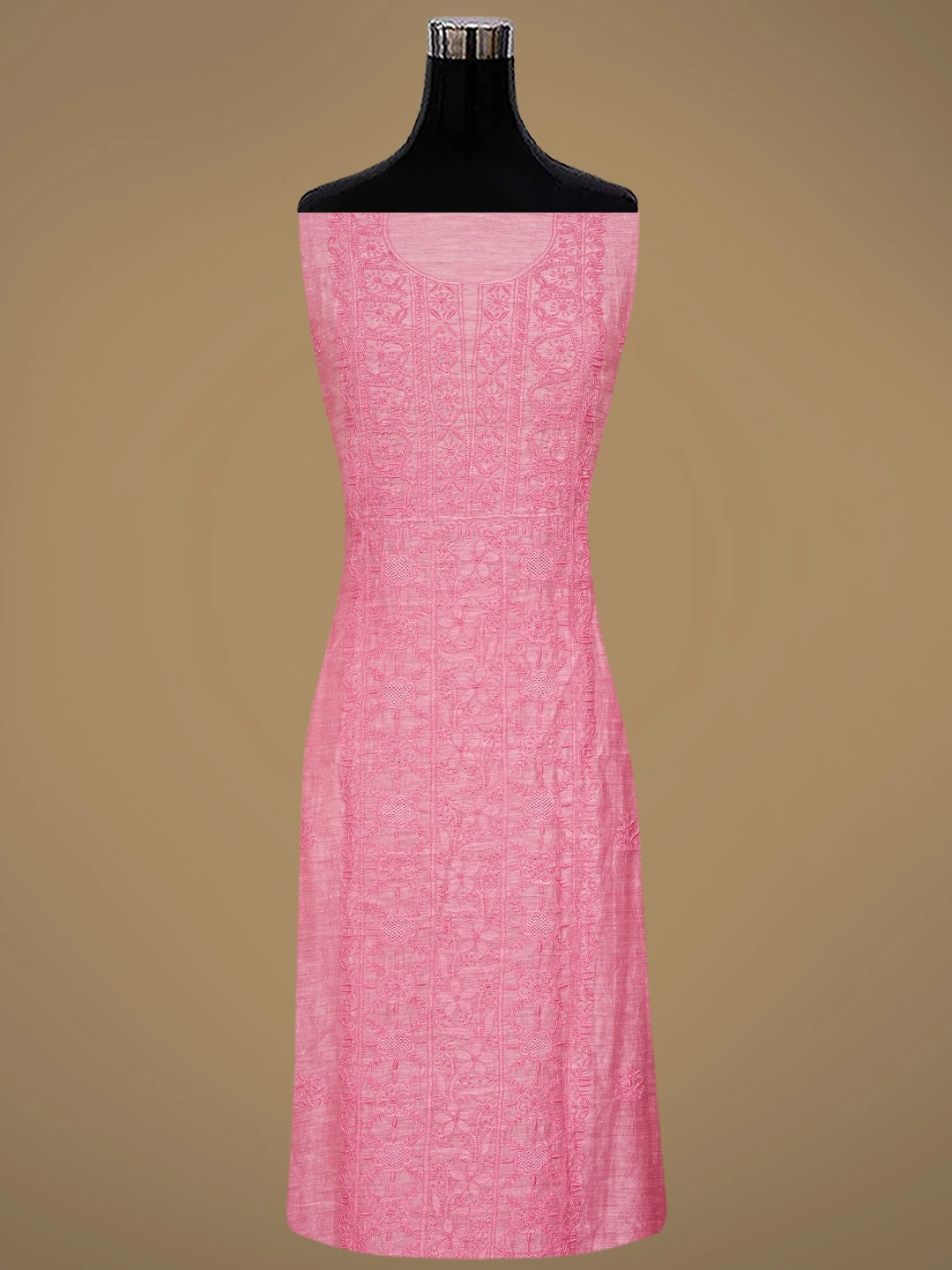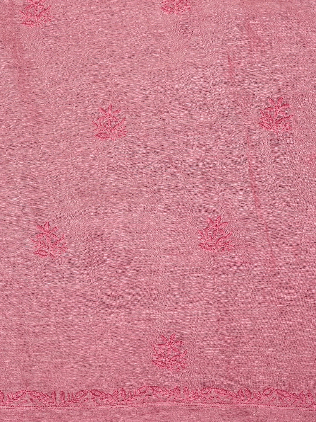 Ada Hand Embroidered Pink Chanderi Lucknowi Chikankari Unstitched Kurta Dupatta Set 01A523779