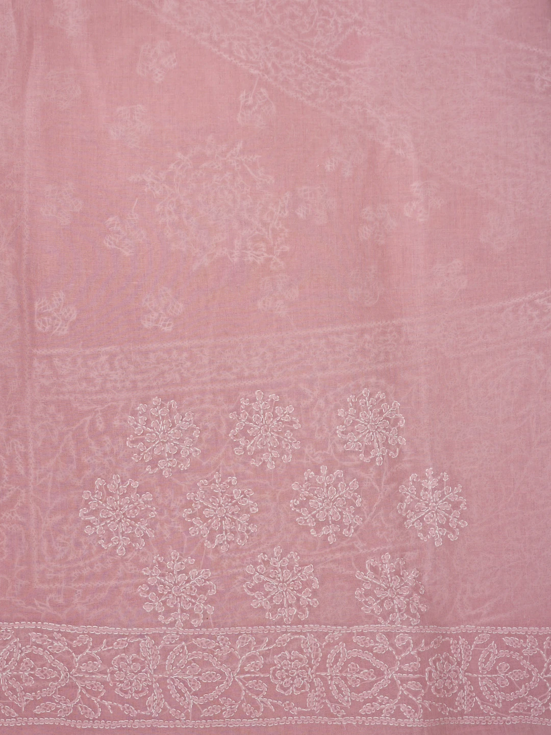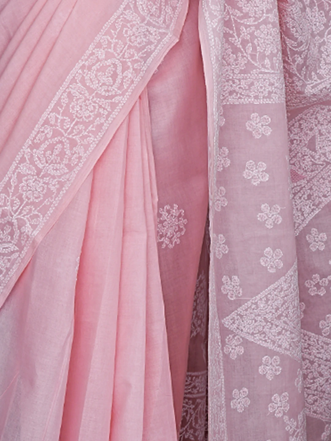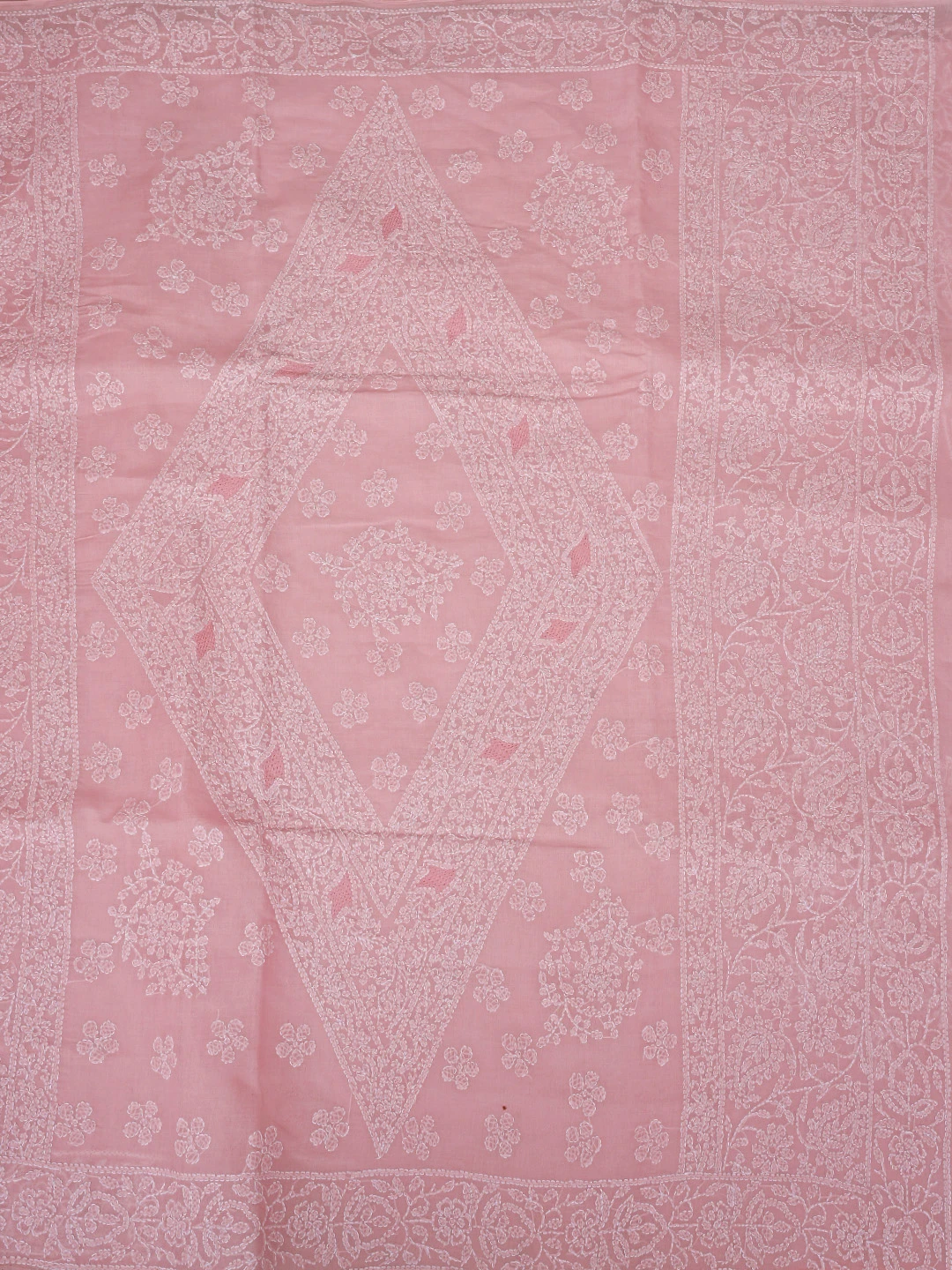 Ada Hand Embroidered Pink Cotton Lucknowi Chikankari Saree With Blouse 01A872939