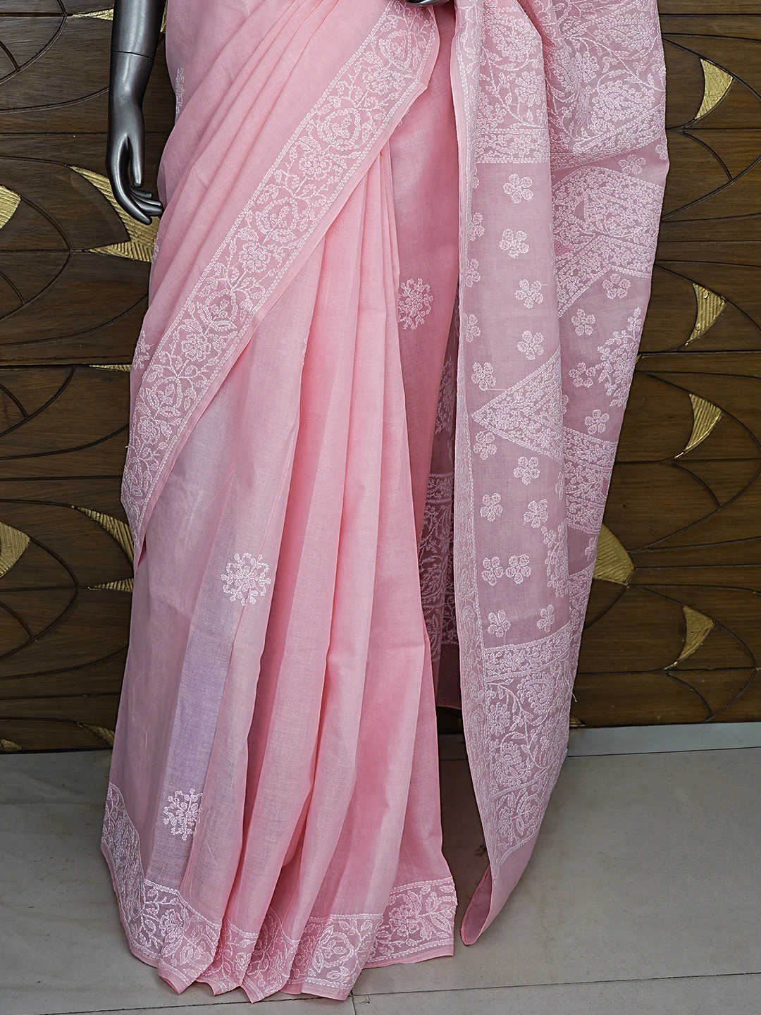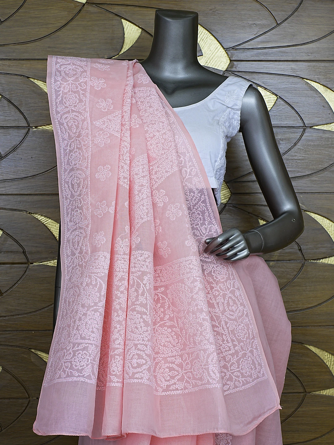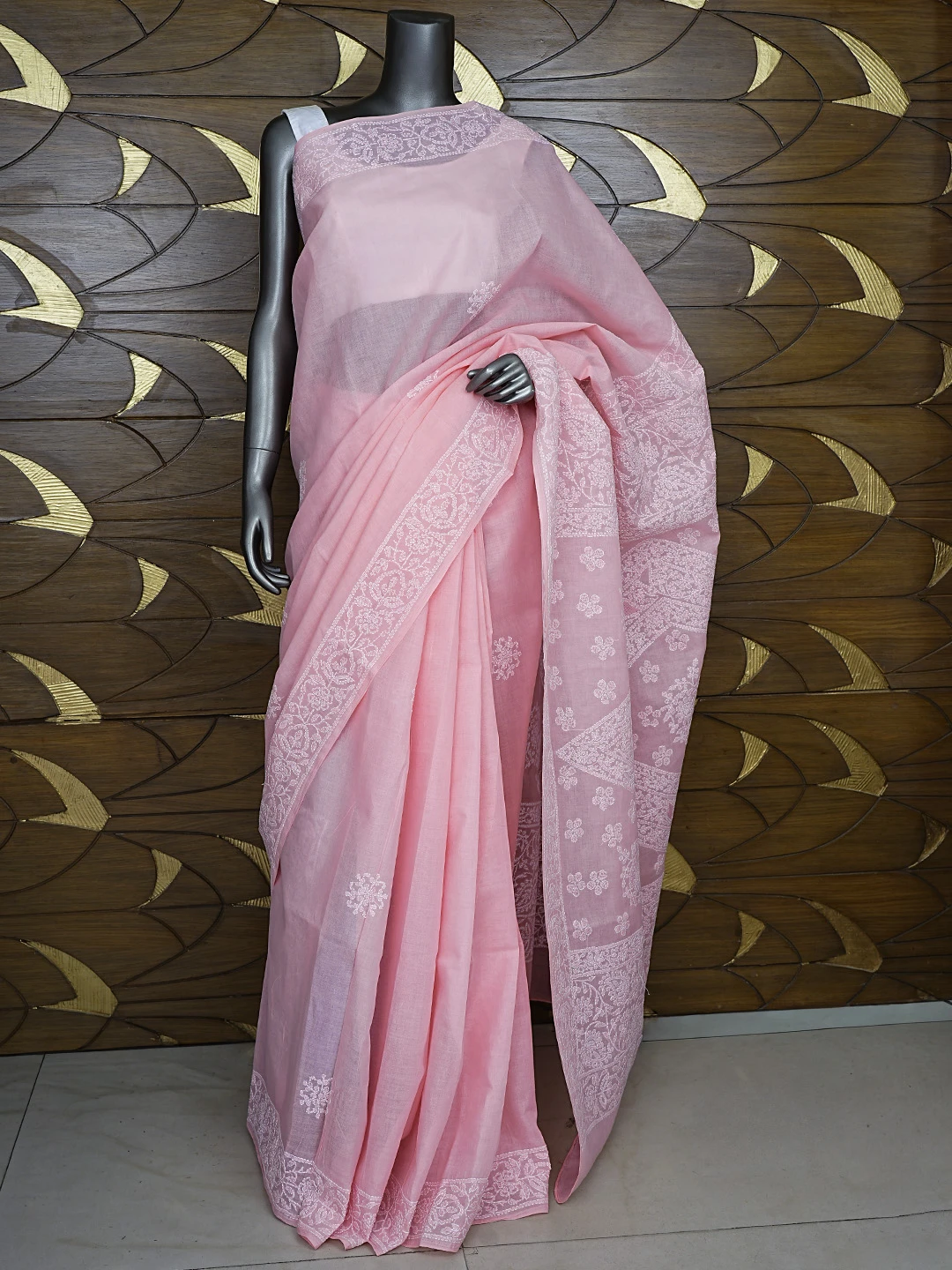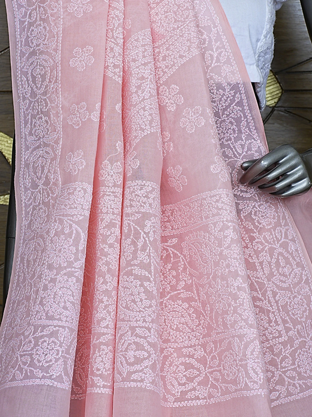 Ada Hand Embroidered Pink Cotton Lucknowi Chikankari Saree With Blouse 01A872939