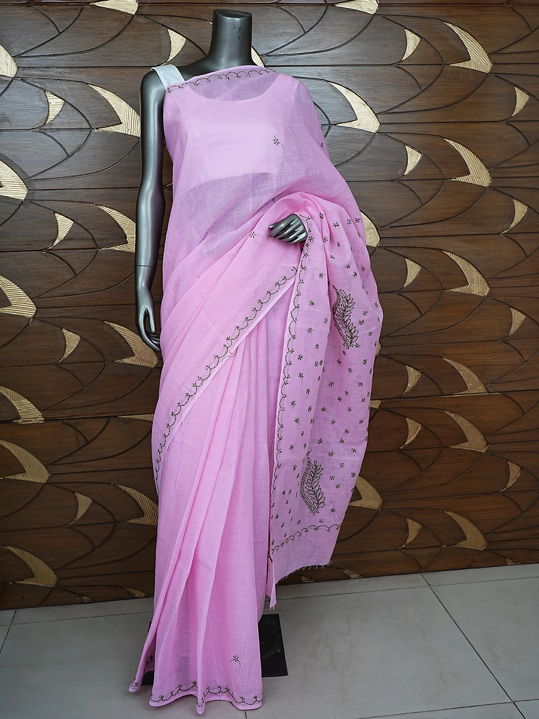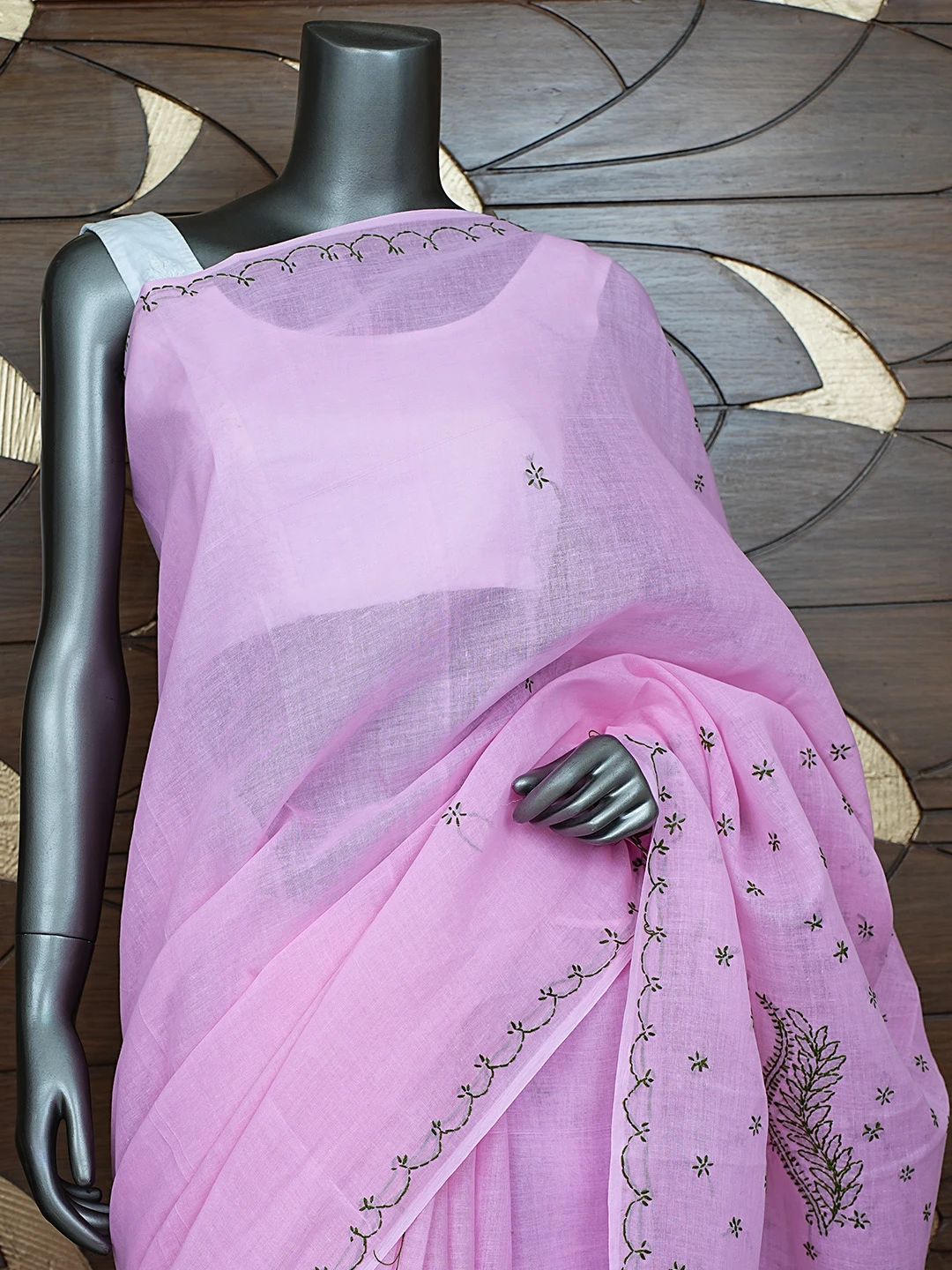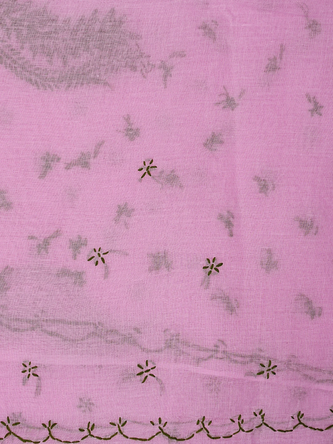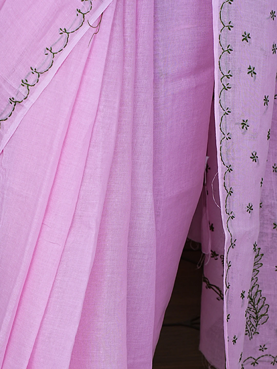 Ada Hand Embroidered Pink Cotton Lucknowi Chikankari Saree and Blouse 01A854460