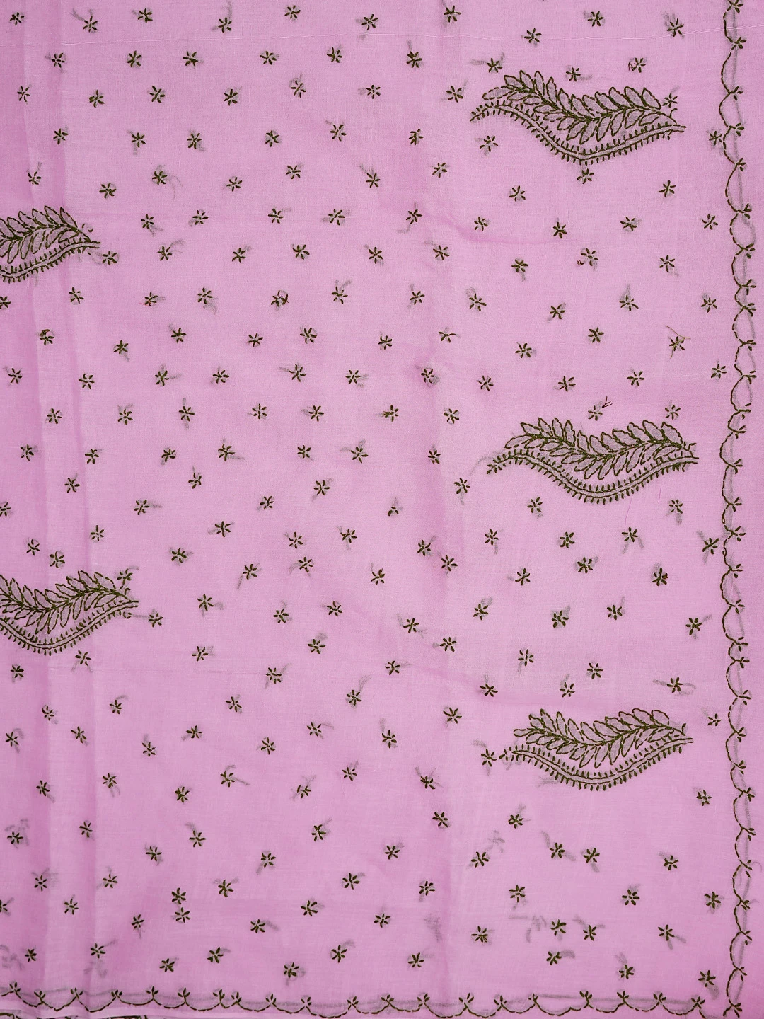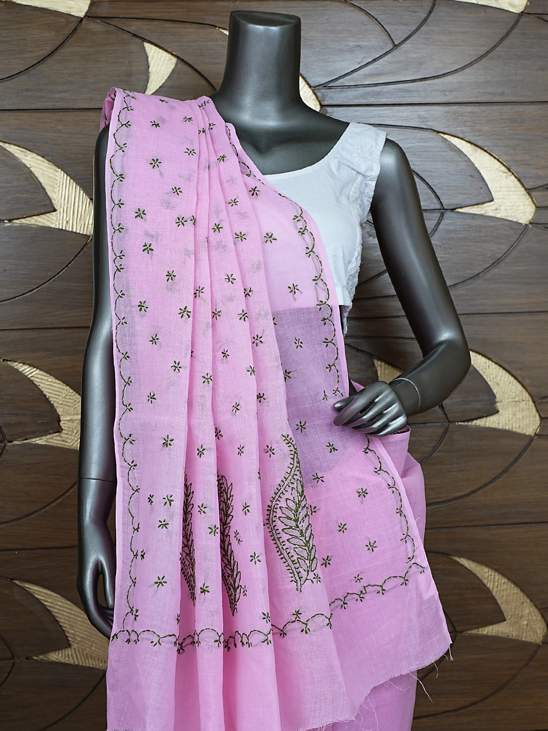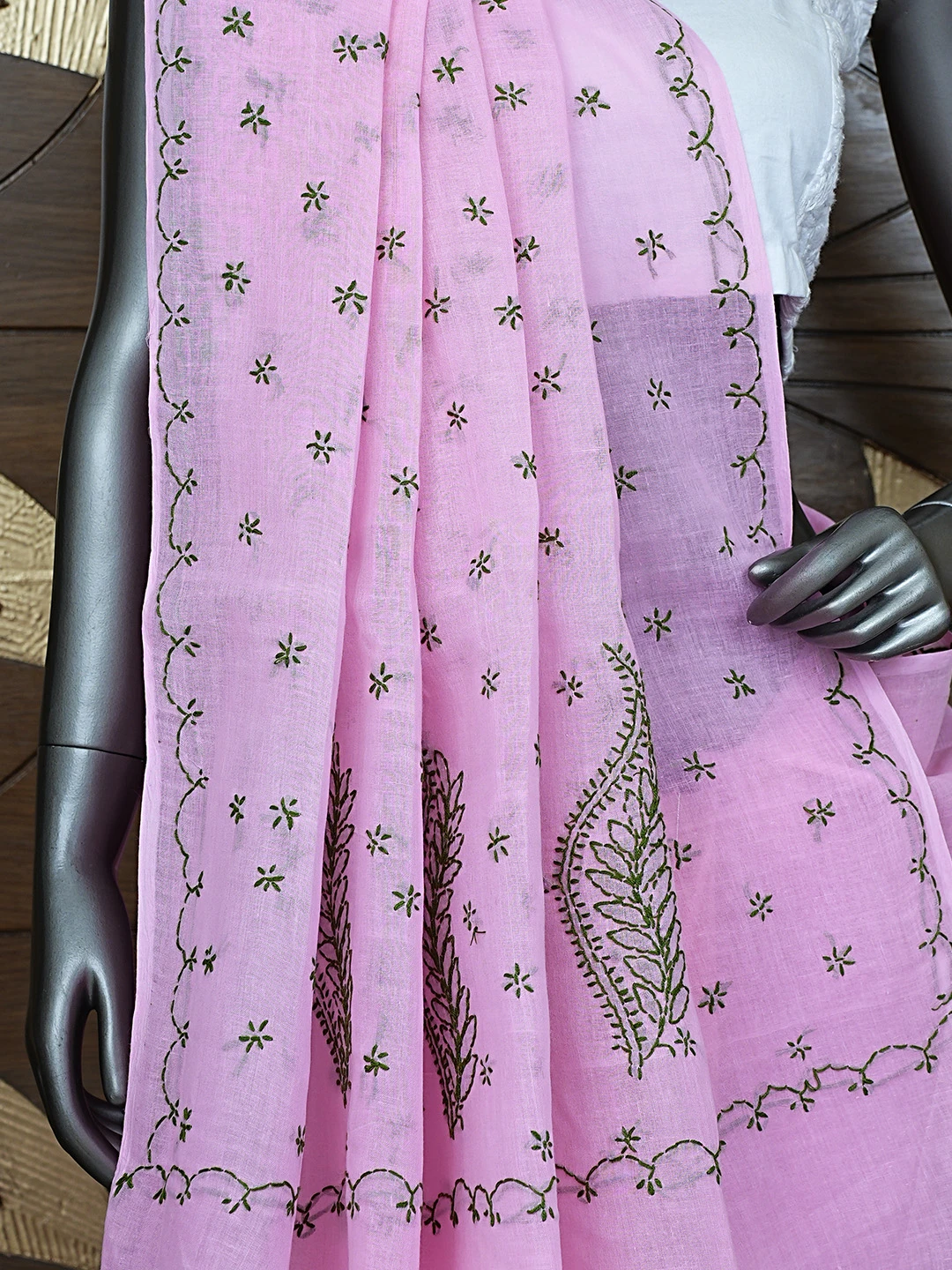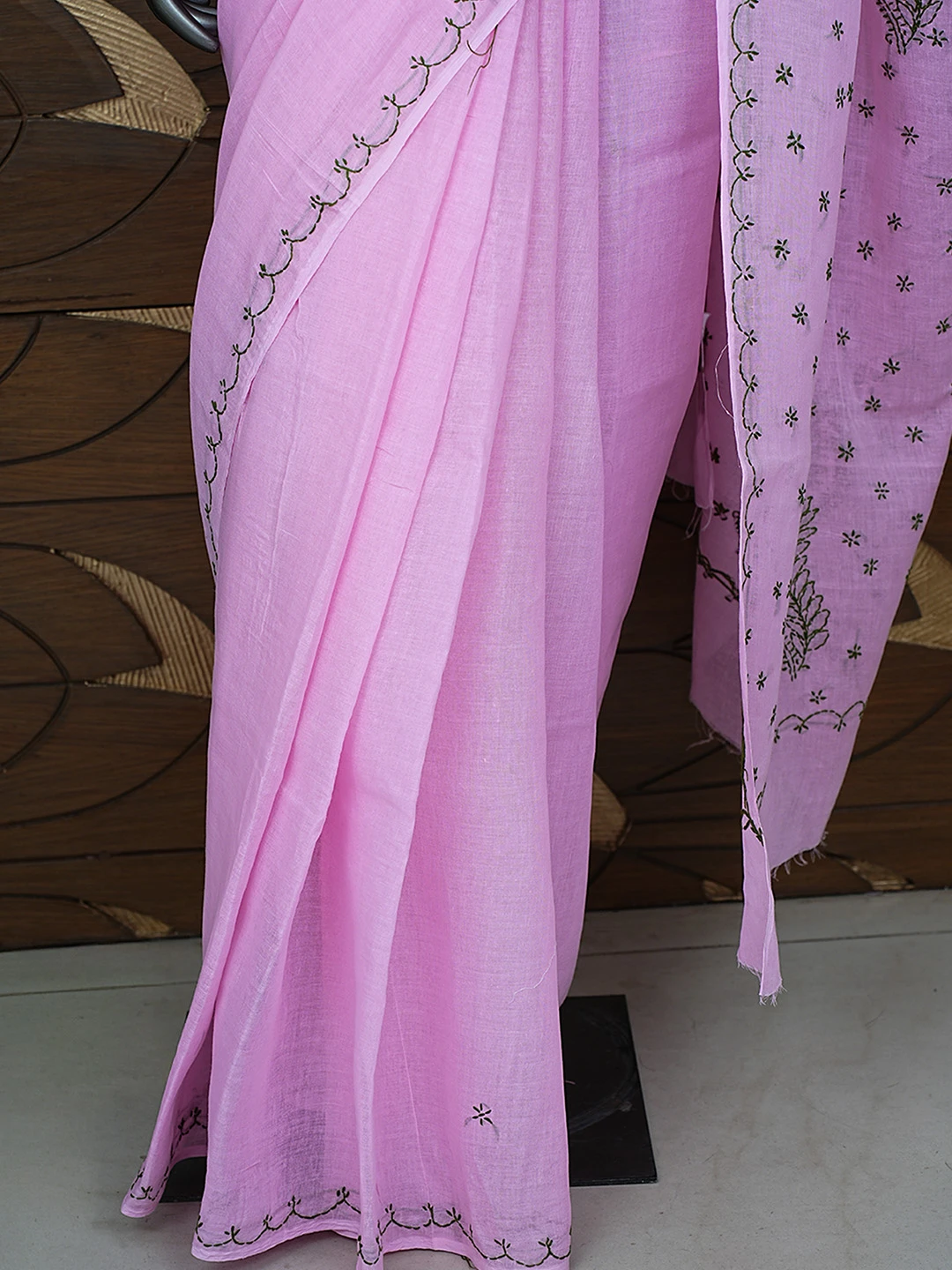 Ada Hand Embroidered Pink Cotton Lucknowi Chikankari Saree and Blouse 01A854460