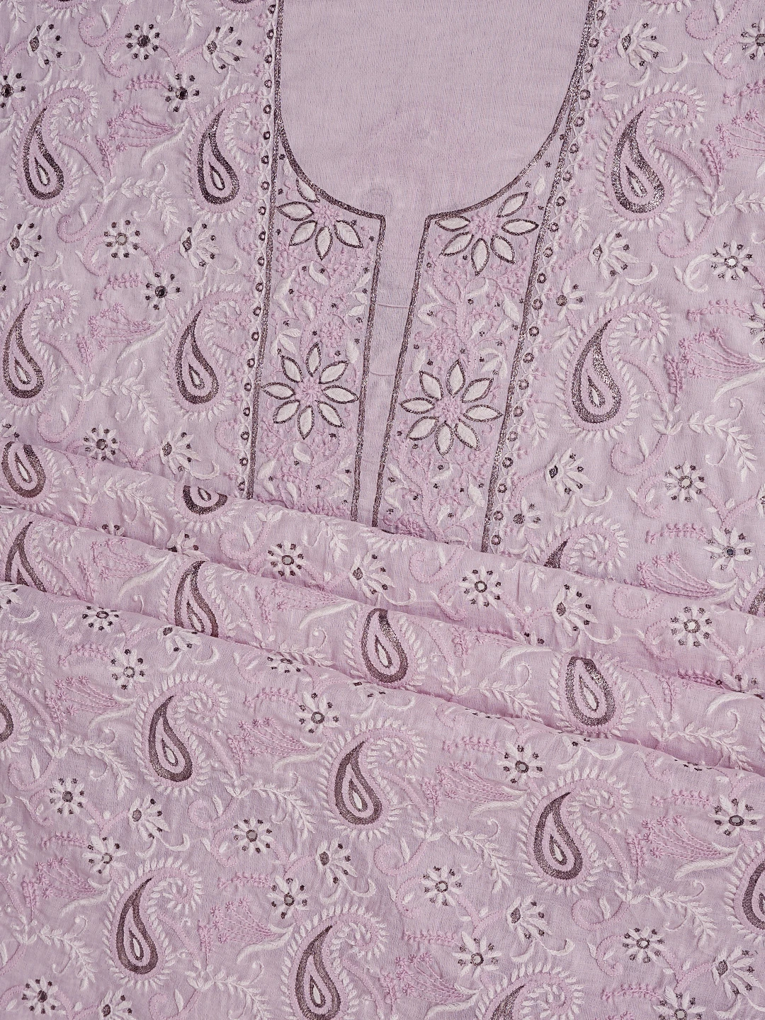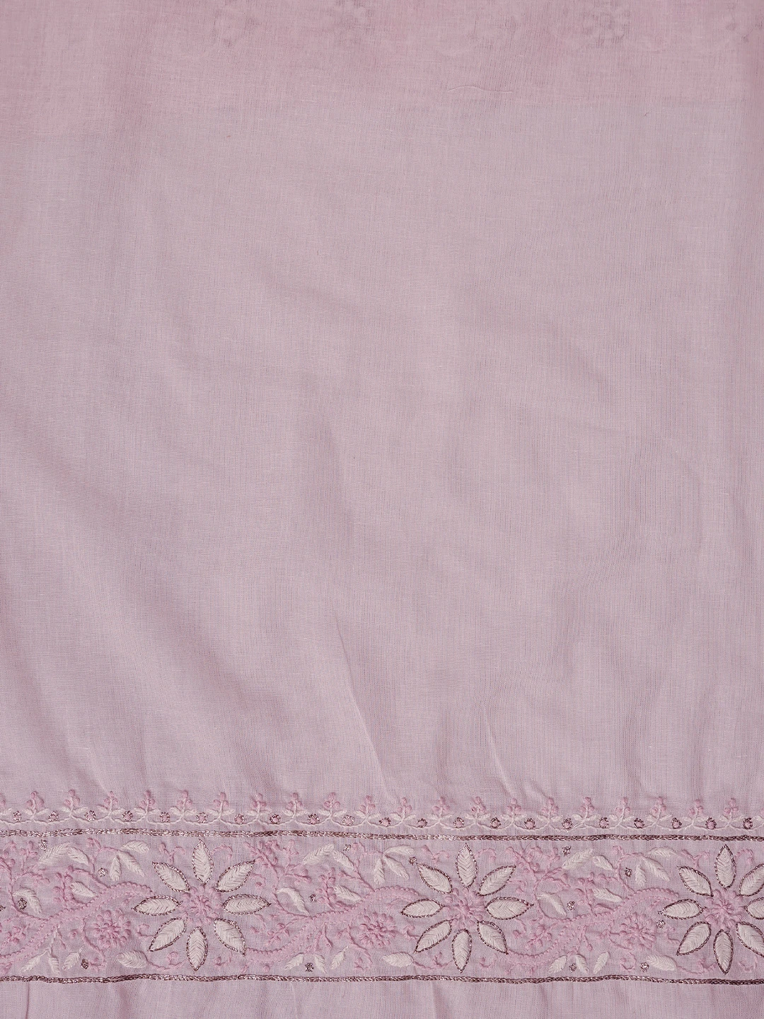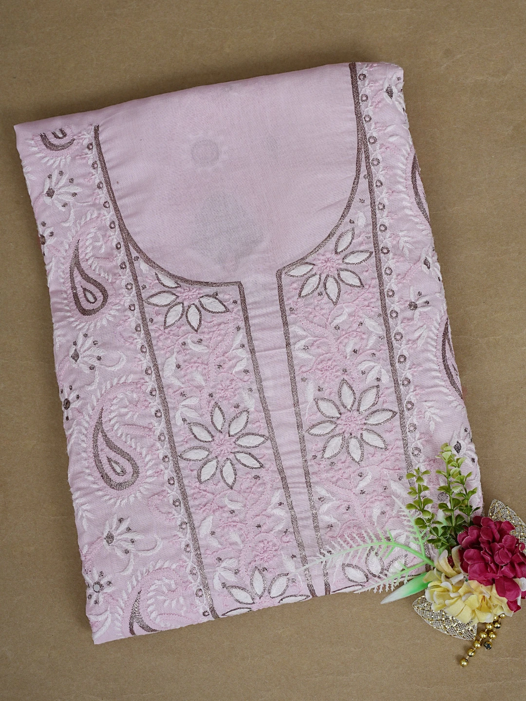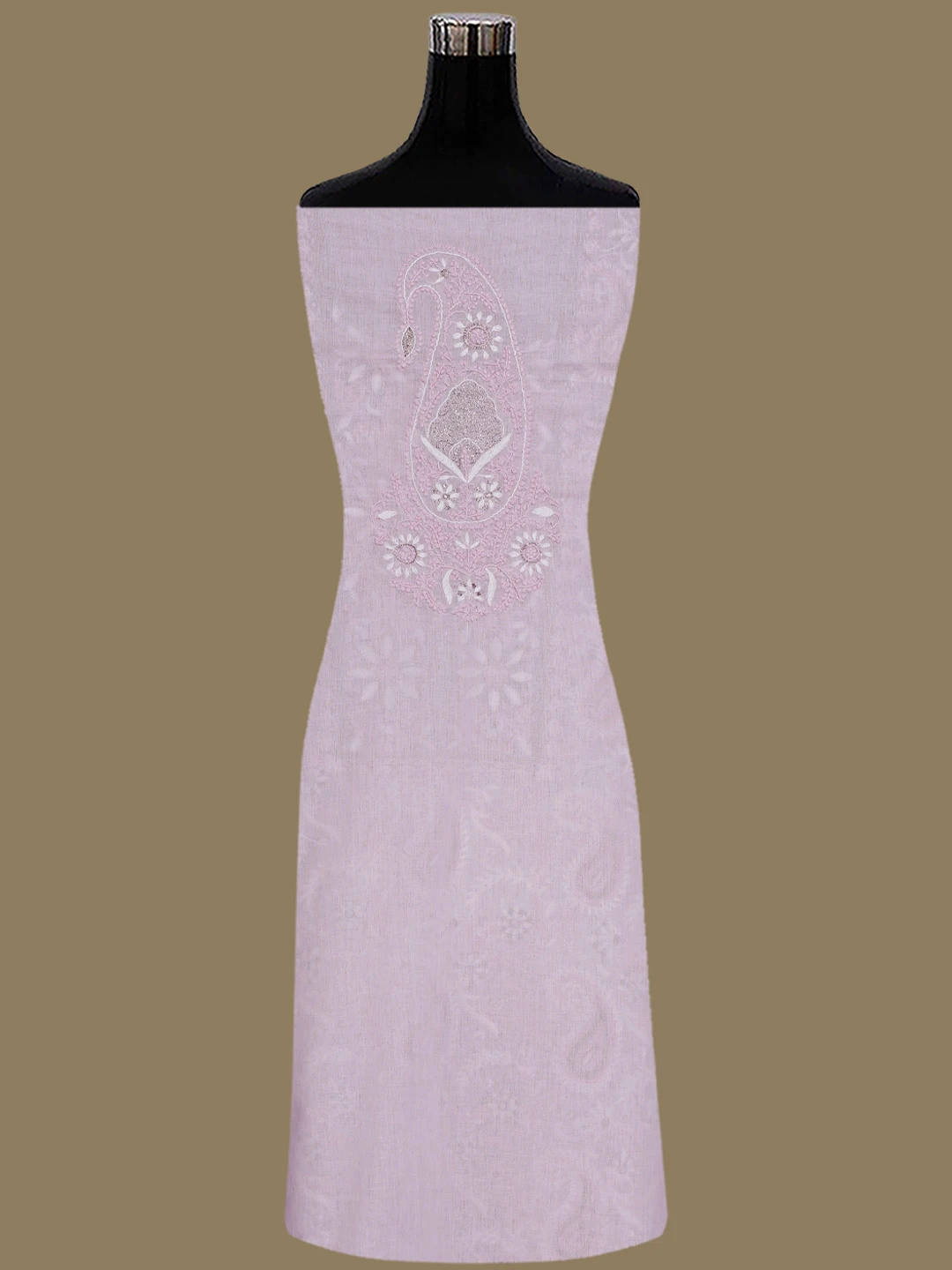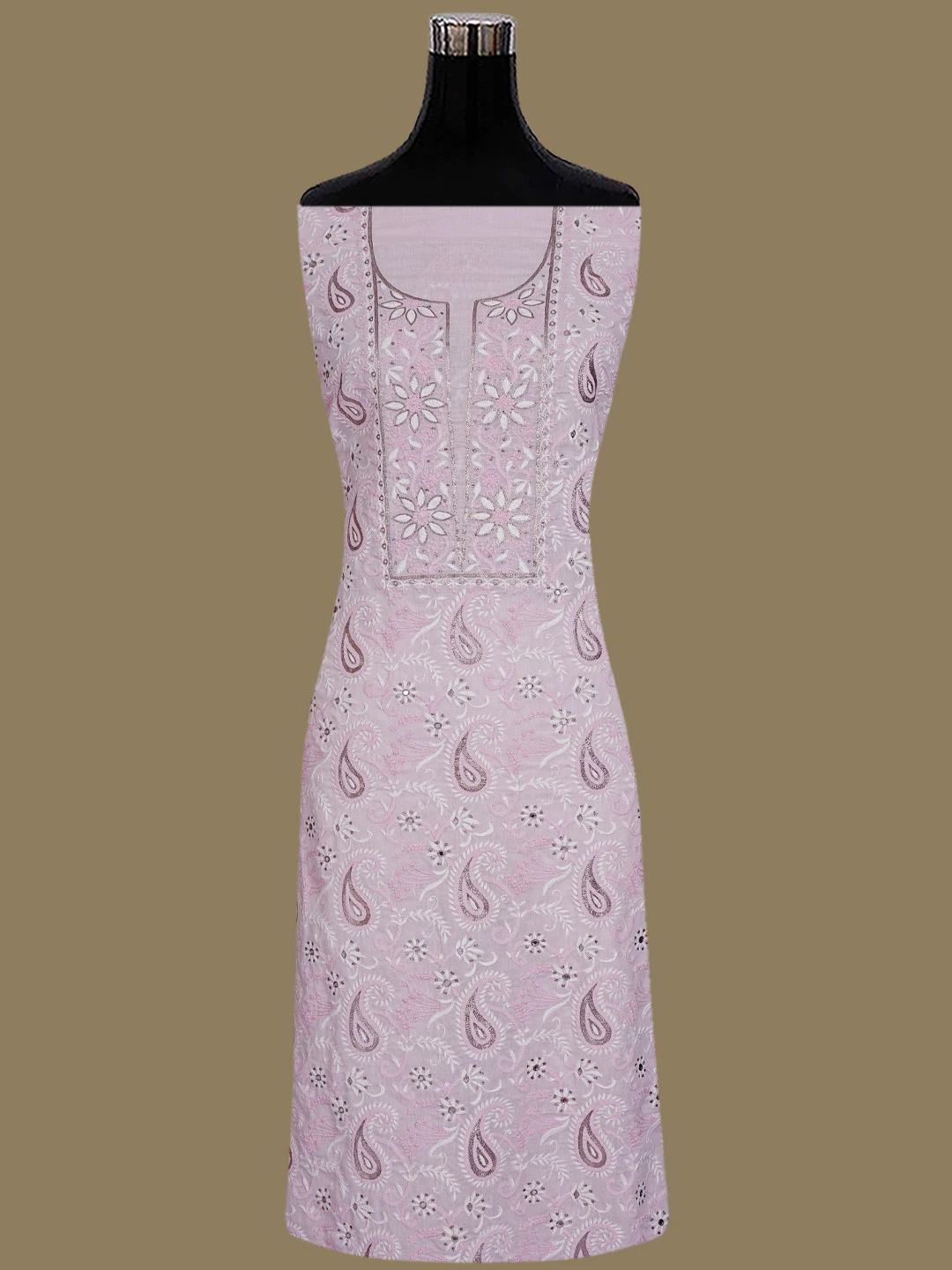 Ada Hand Embroidered Pink Cotton Lucknowi Chikankari Unstitched Kurta Piece With Zari Taar Work 01A372787