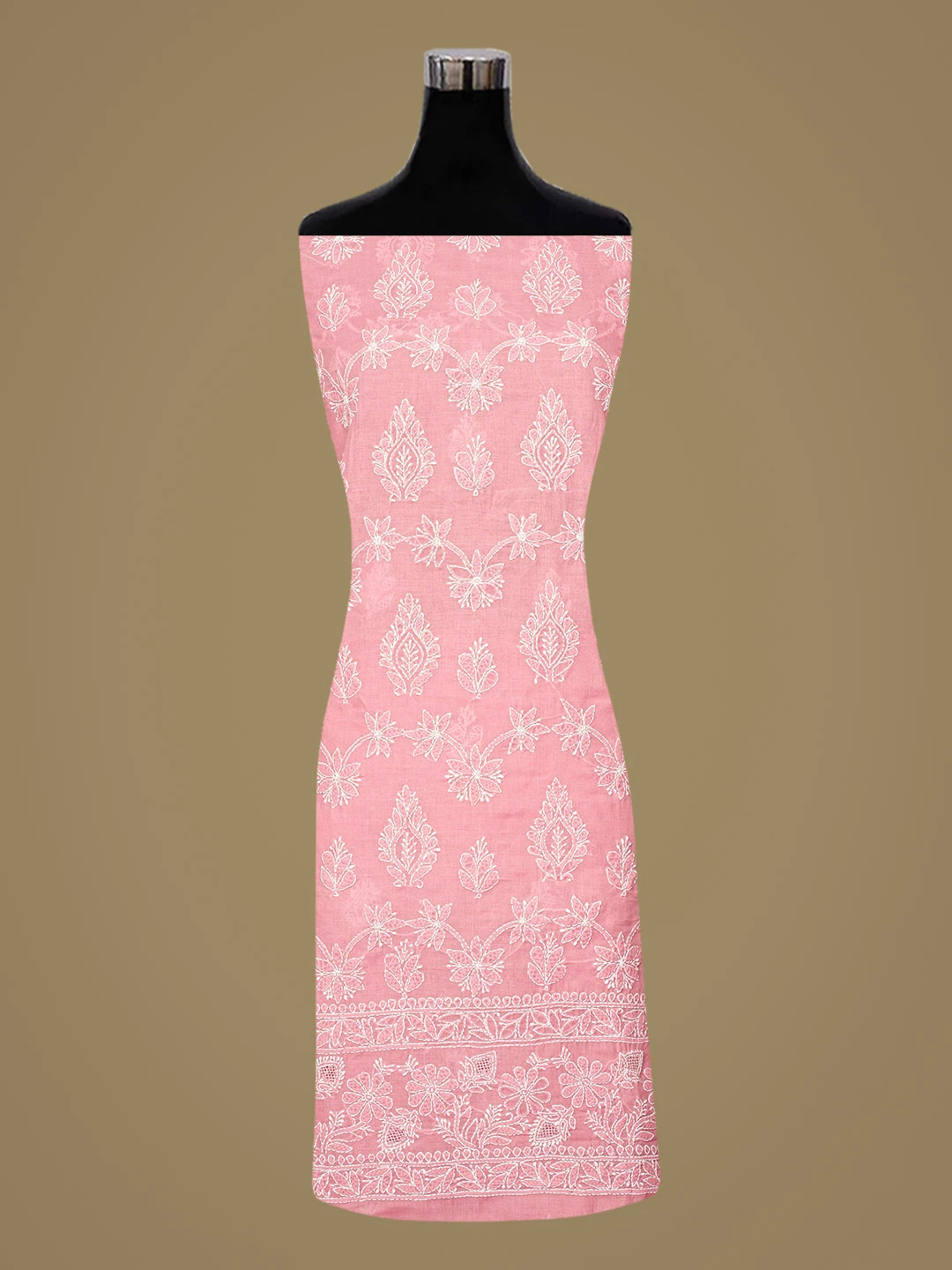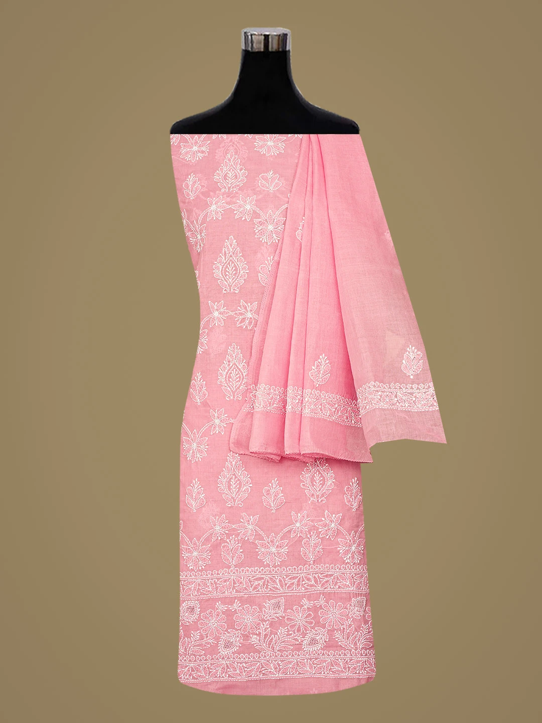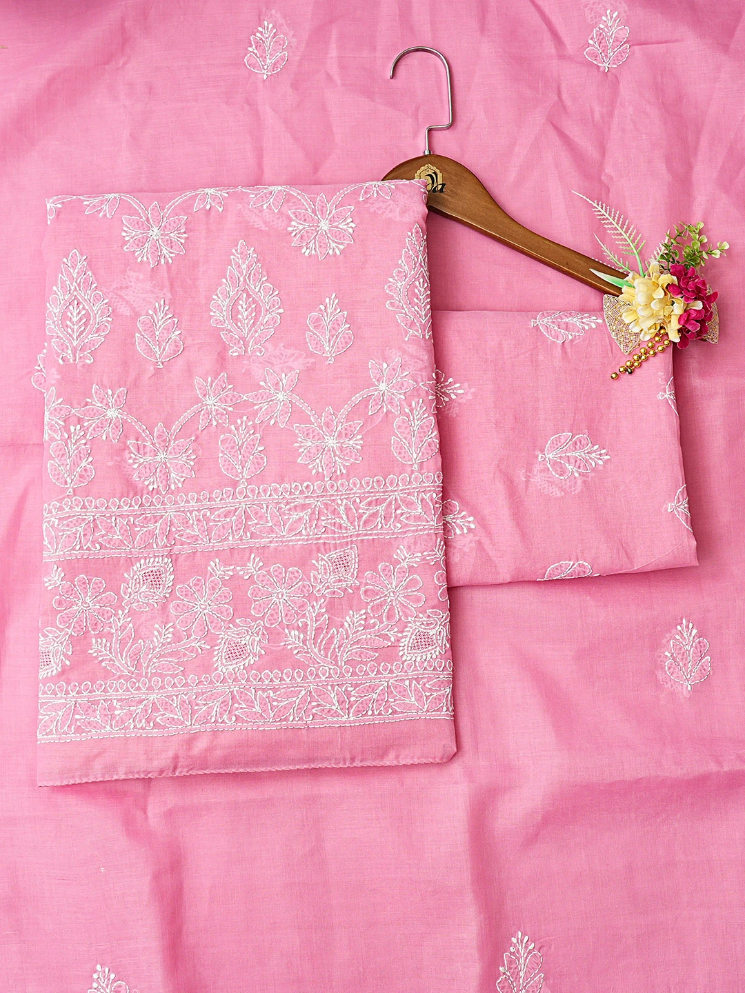 Ada Hand Embroidered Pink Cotton Lucknowi Chikankari Unstitched Suit Piece 01A676653