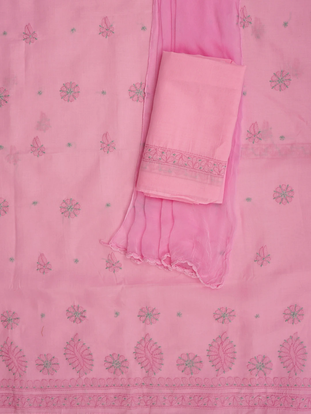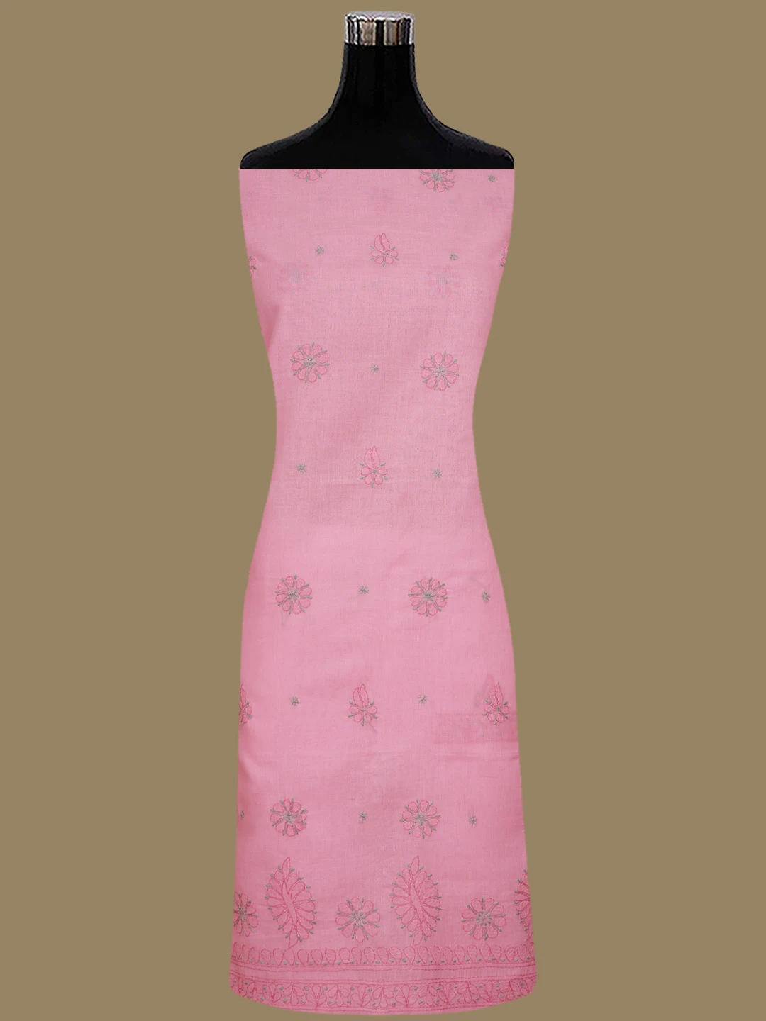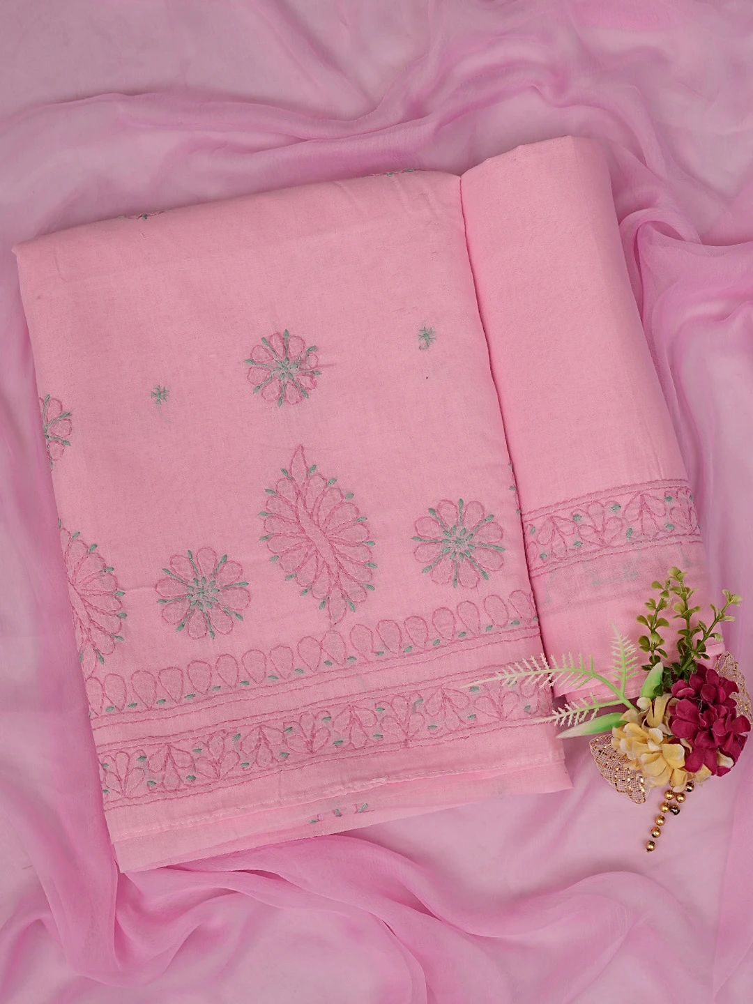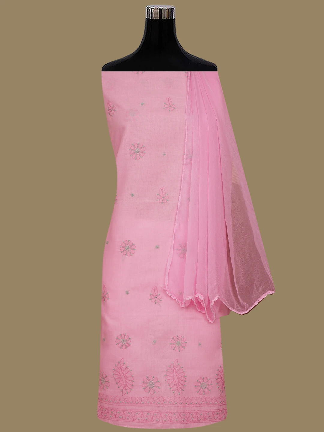 Ada Hand Embroidered Pink Cotton Lucknowi Chikankari Unstitched Suit Piece 01A818719