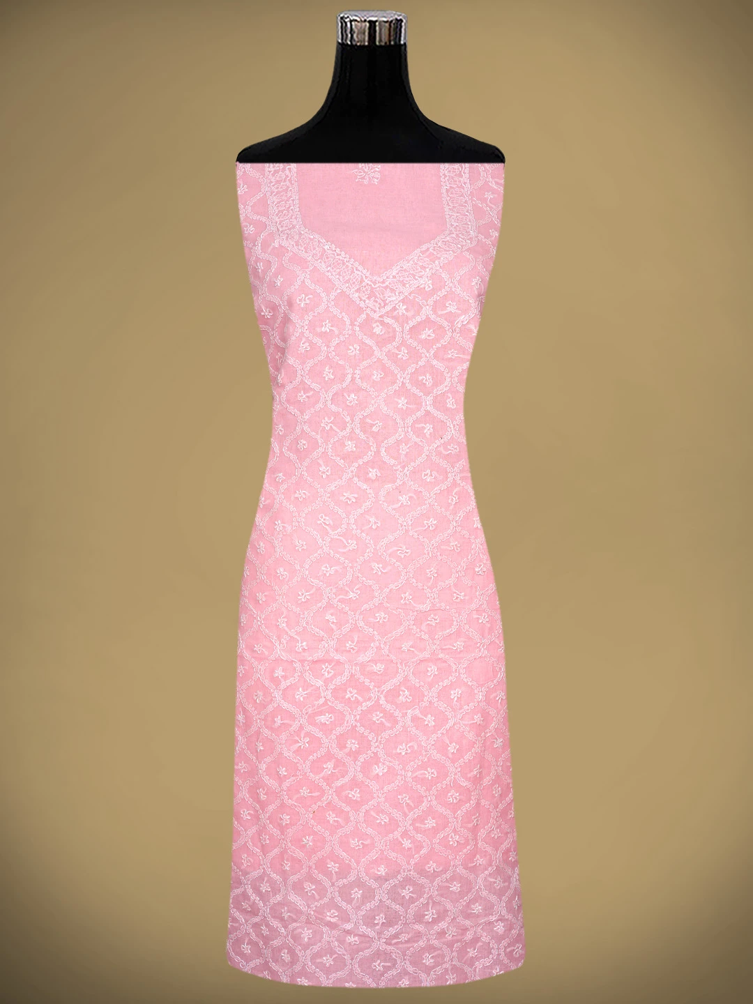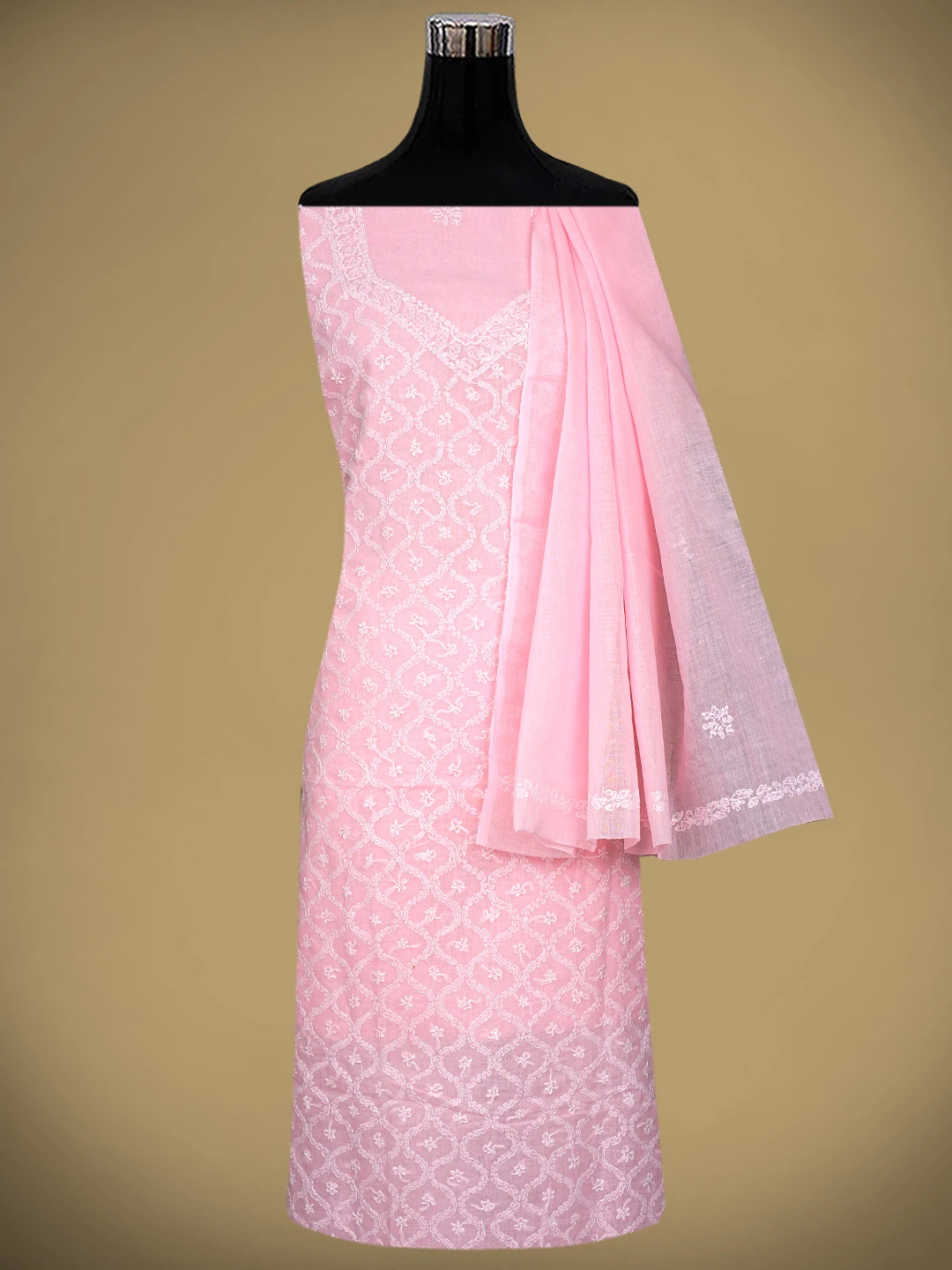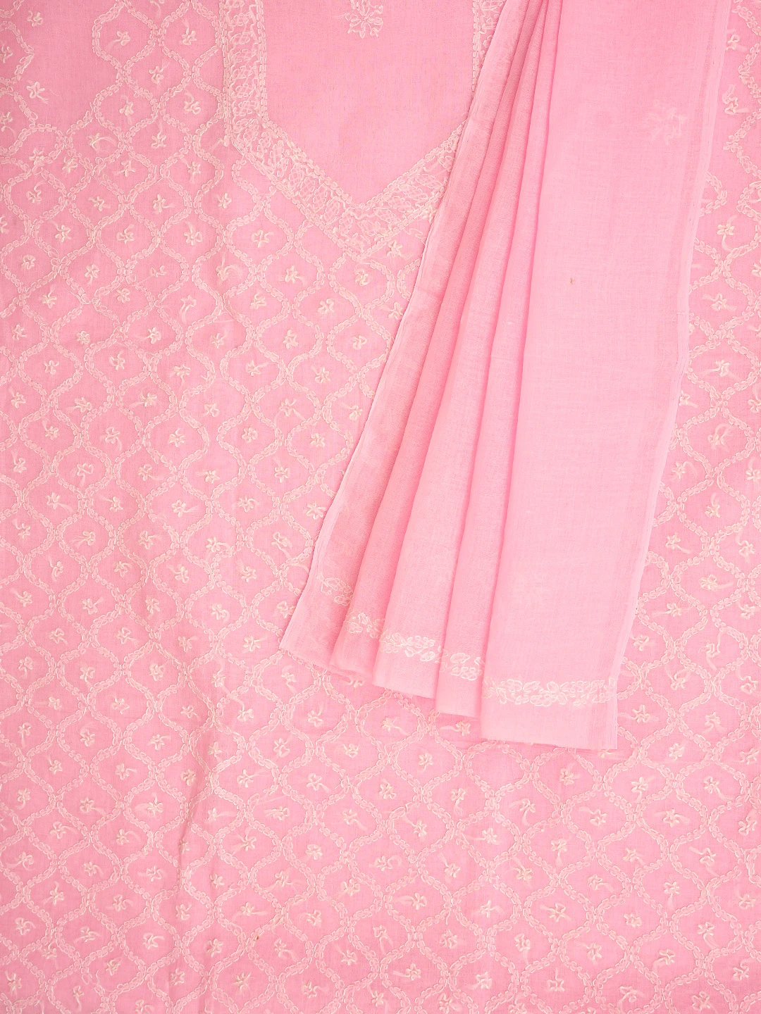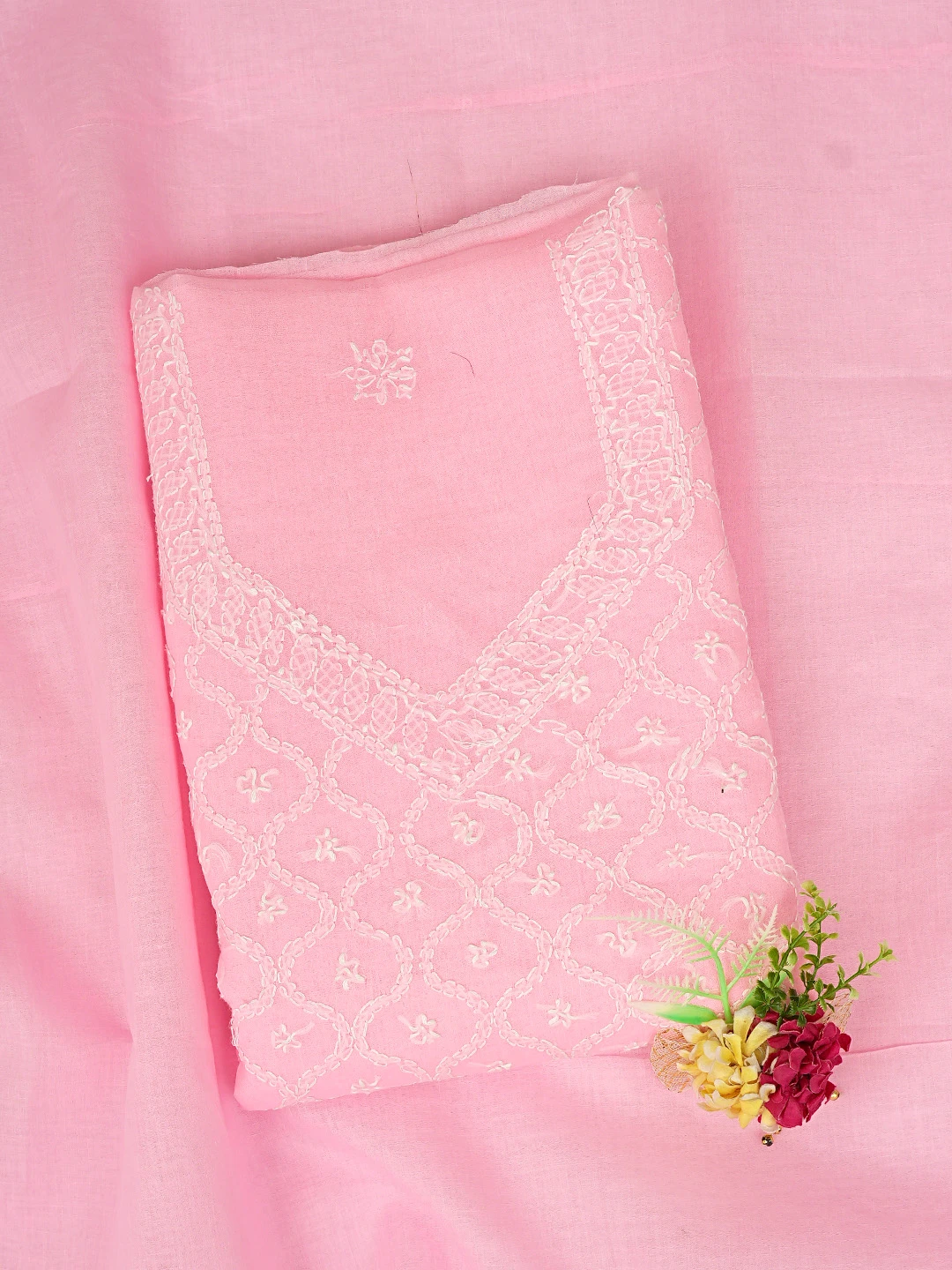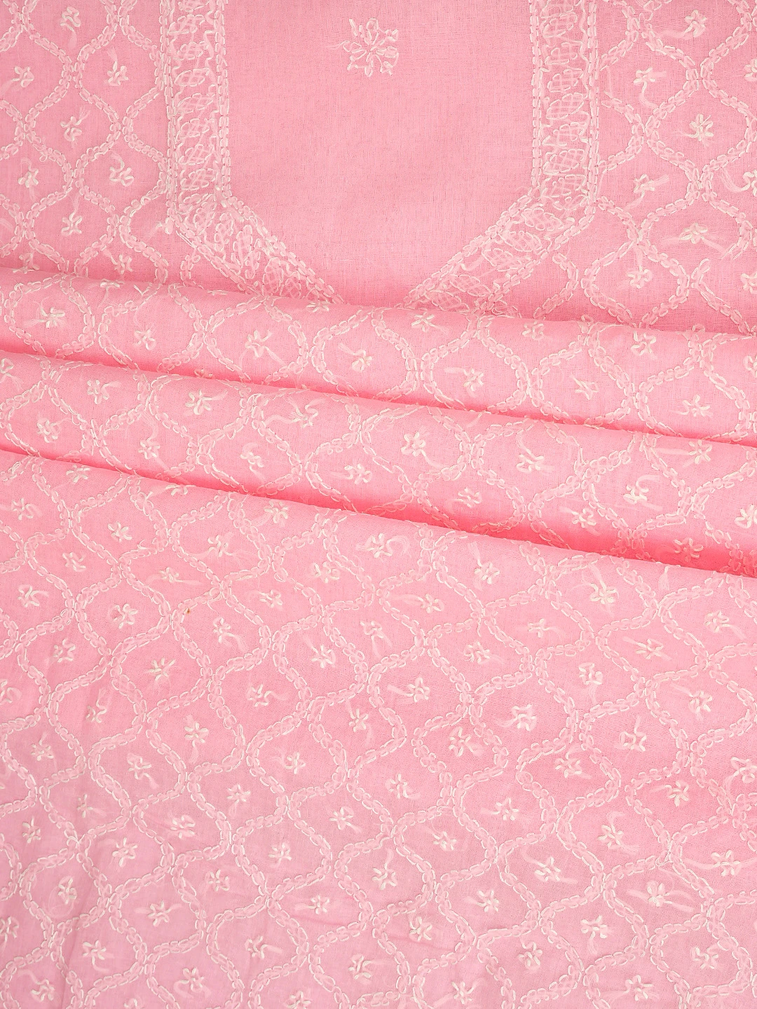 Ada Hand Embroidered Pink Cotton Lucknowi Chikankari Unstitched Suit Piece 01A854944