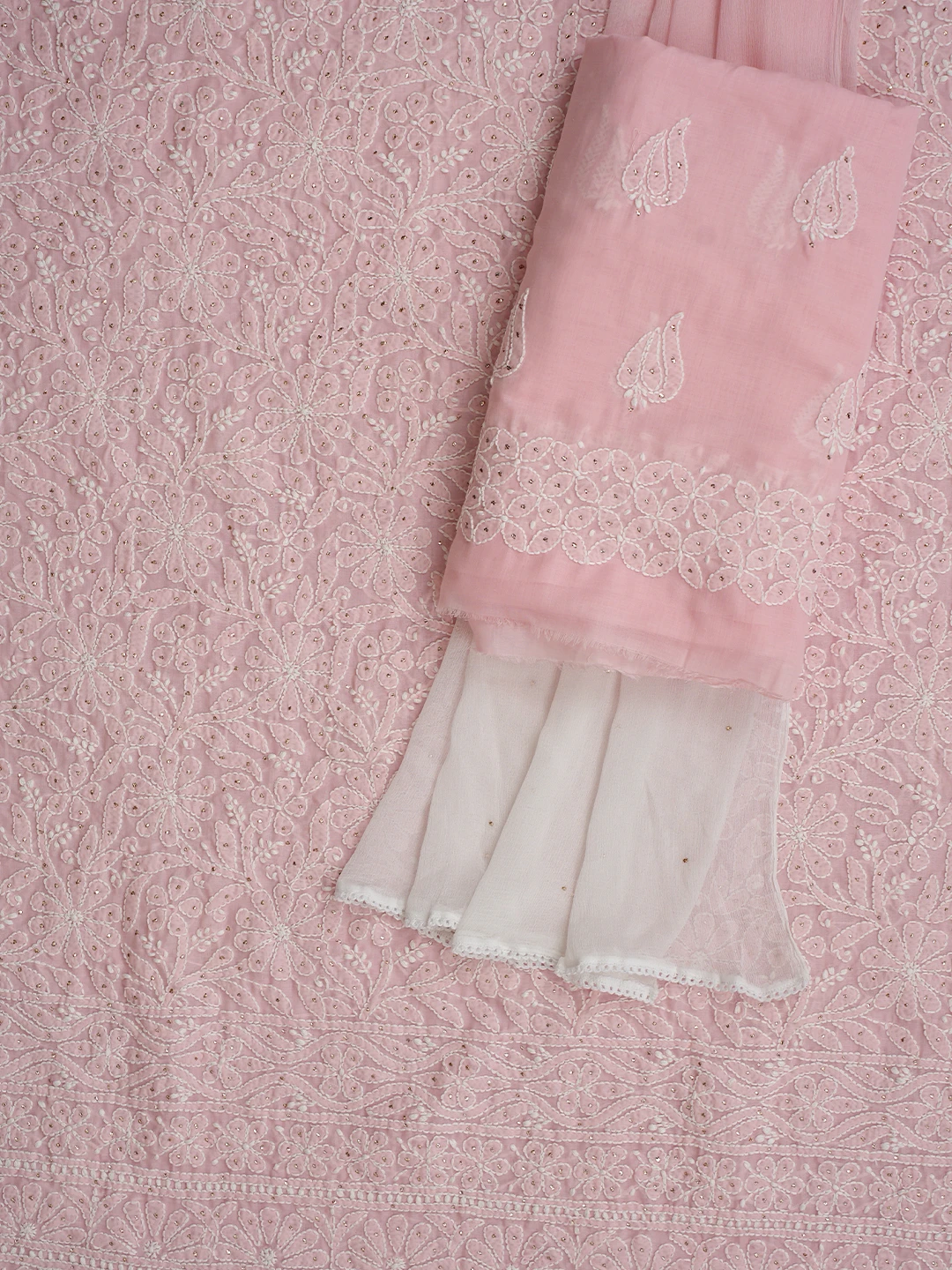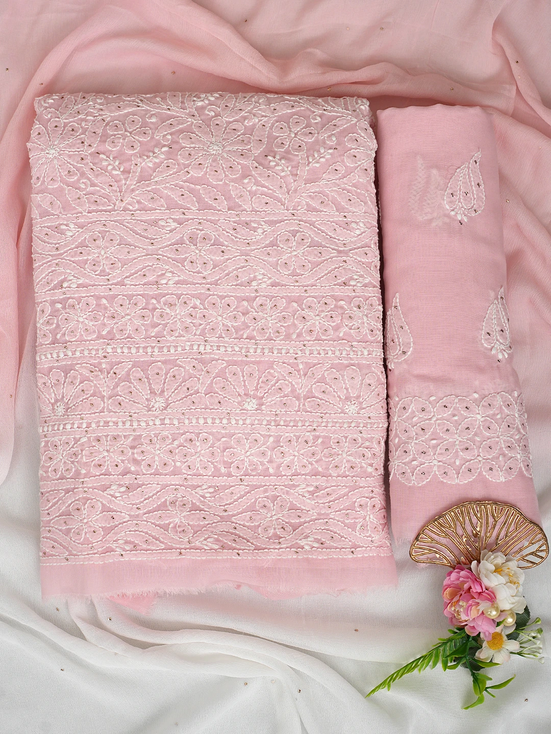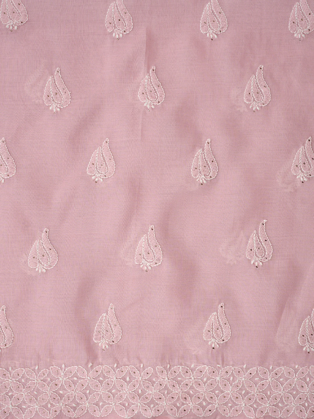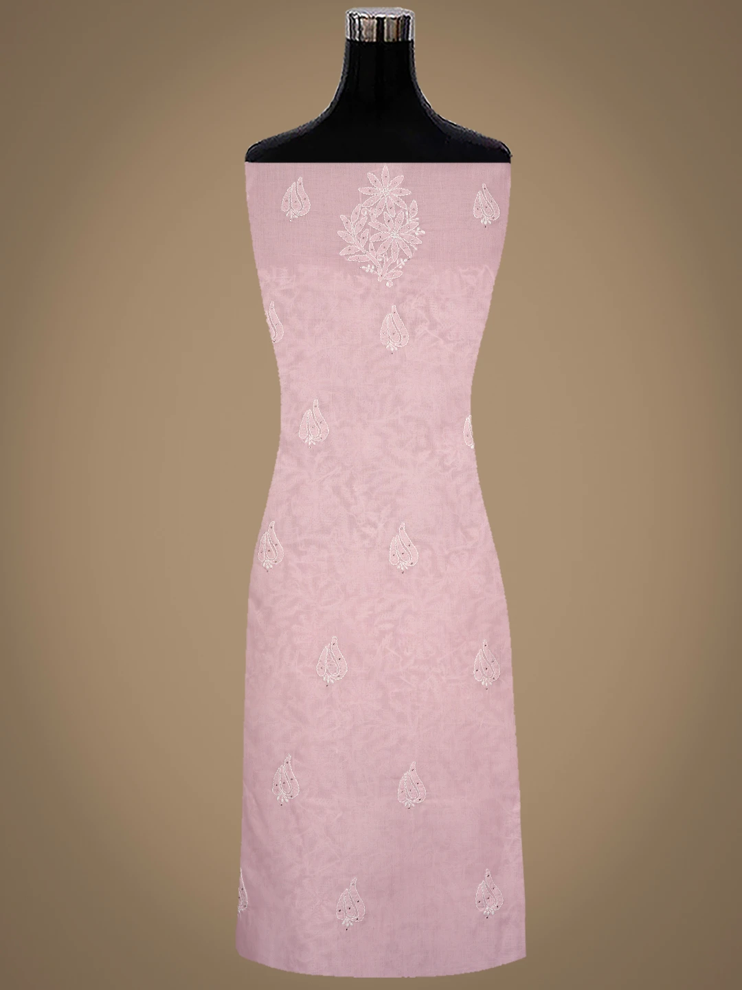Ada Hand Embroidered Pink Cotton Lucknowi Chikankari Unstitched Suit Piece With Mukaish Work 01A847349