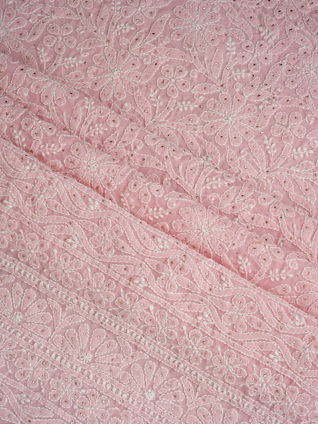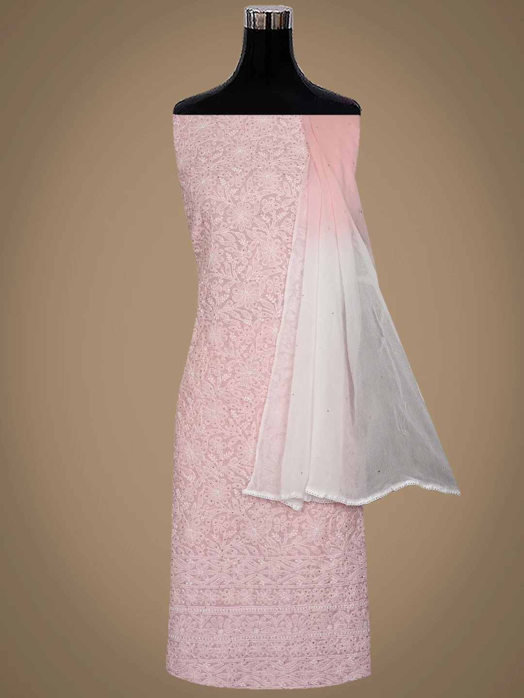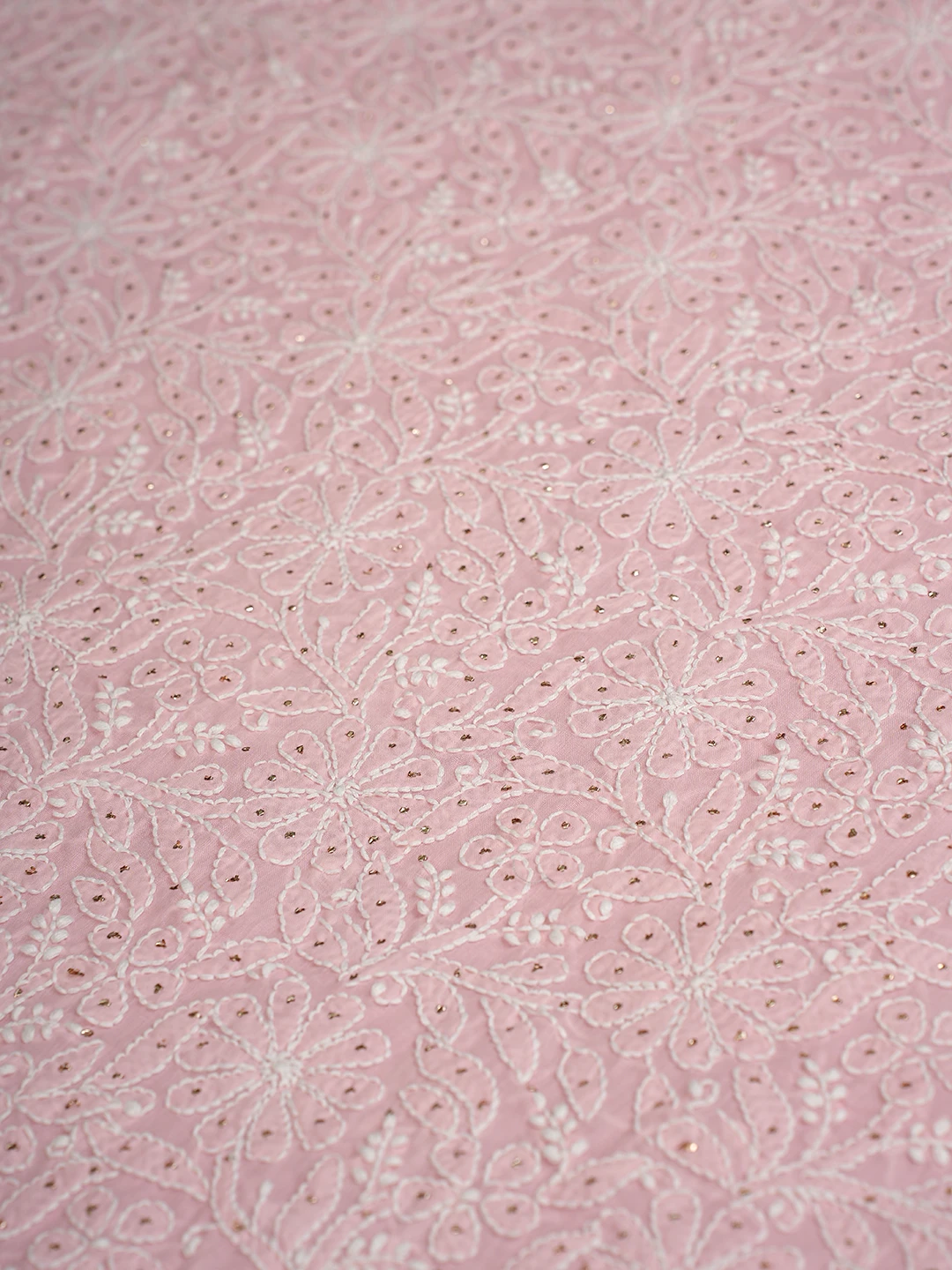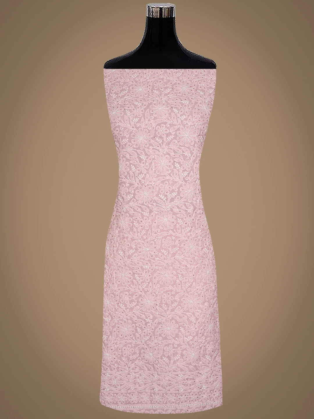Ada Hand Embroidered Pink Cotton Lucknowi Chikankari Unstitched Suit Piece With Mukaish Work 01A847349