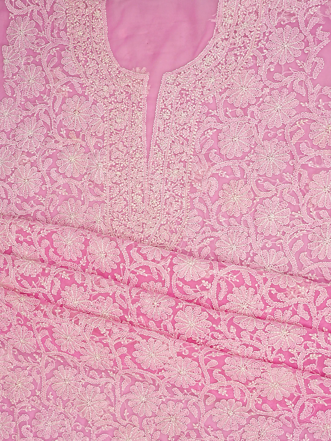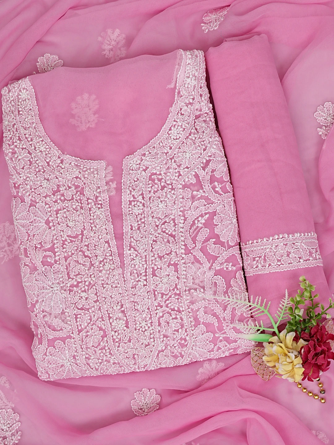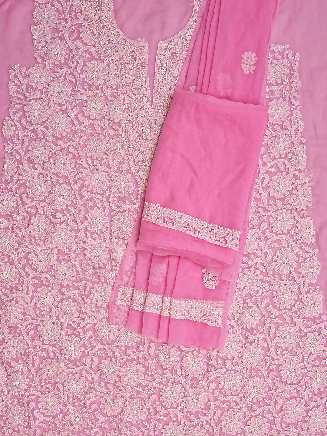 Ada Hand Embroidered Pink Georgette Lucknowi Chikan Unstitched Suit Piece 01A859809