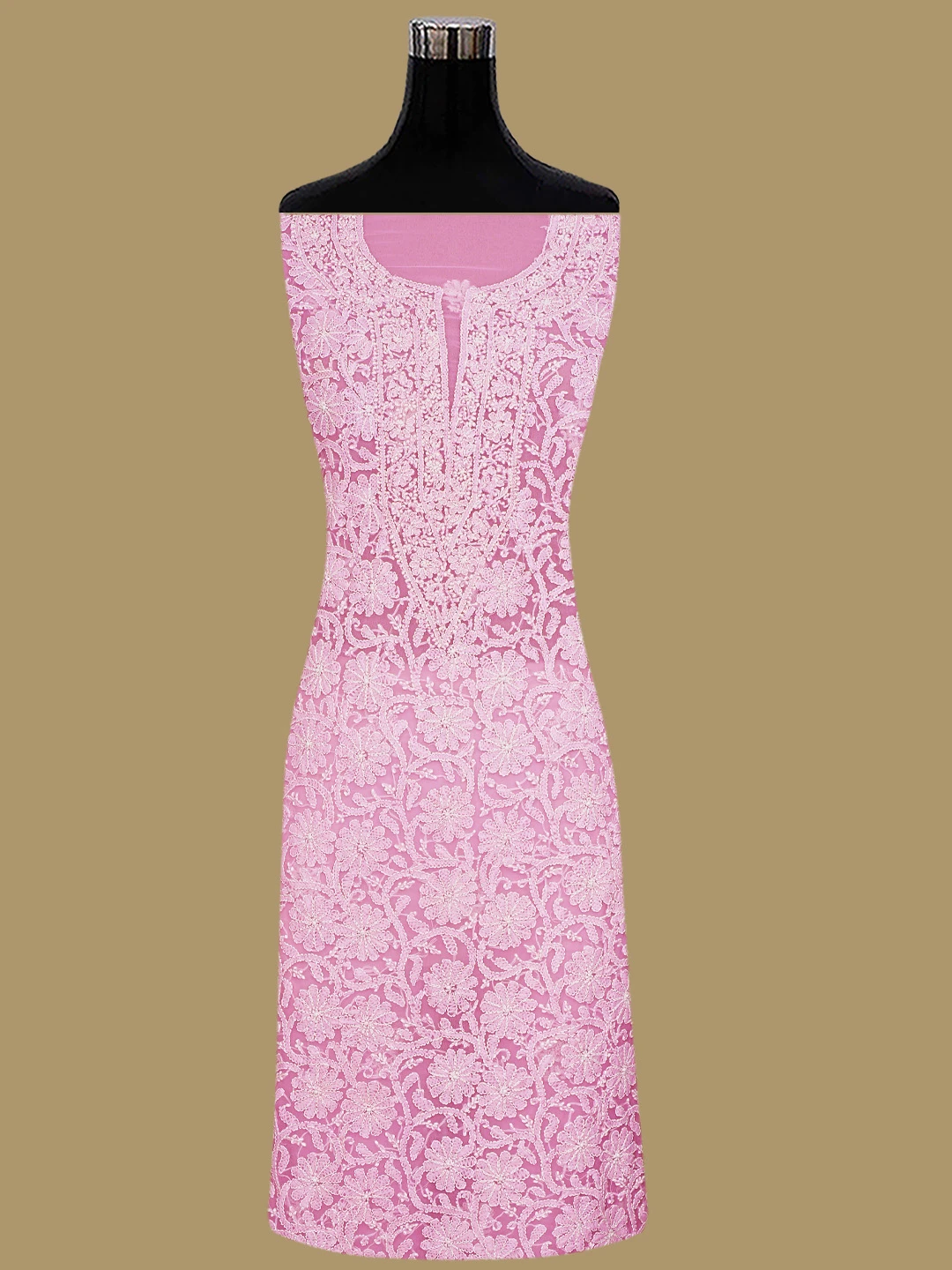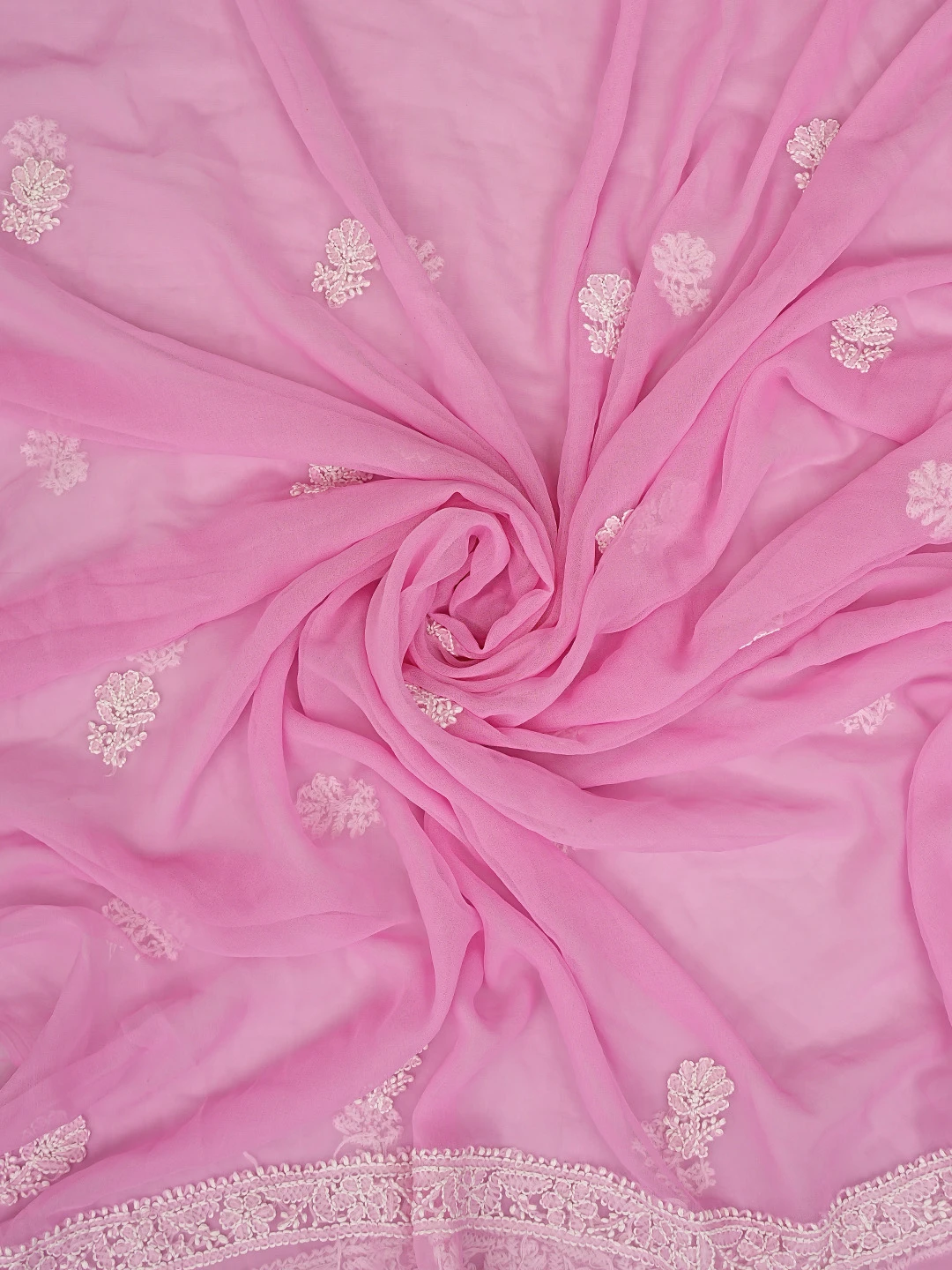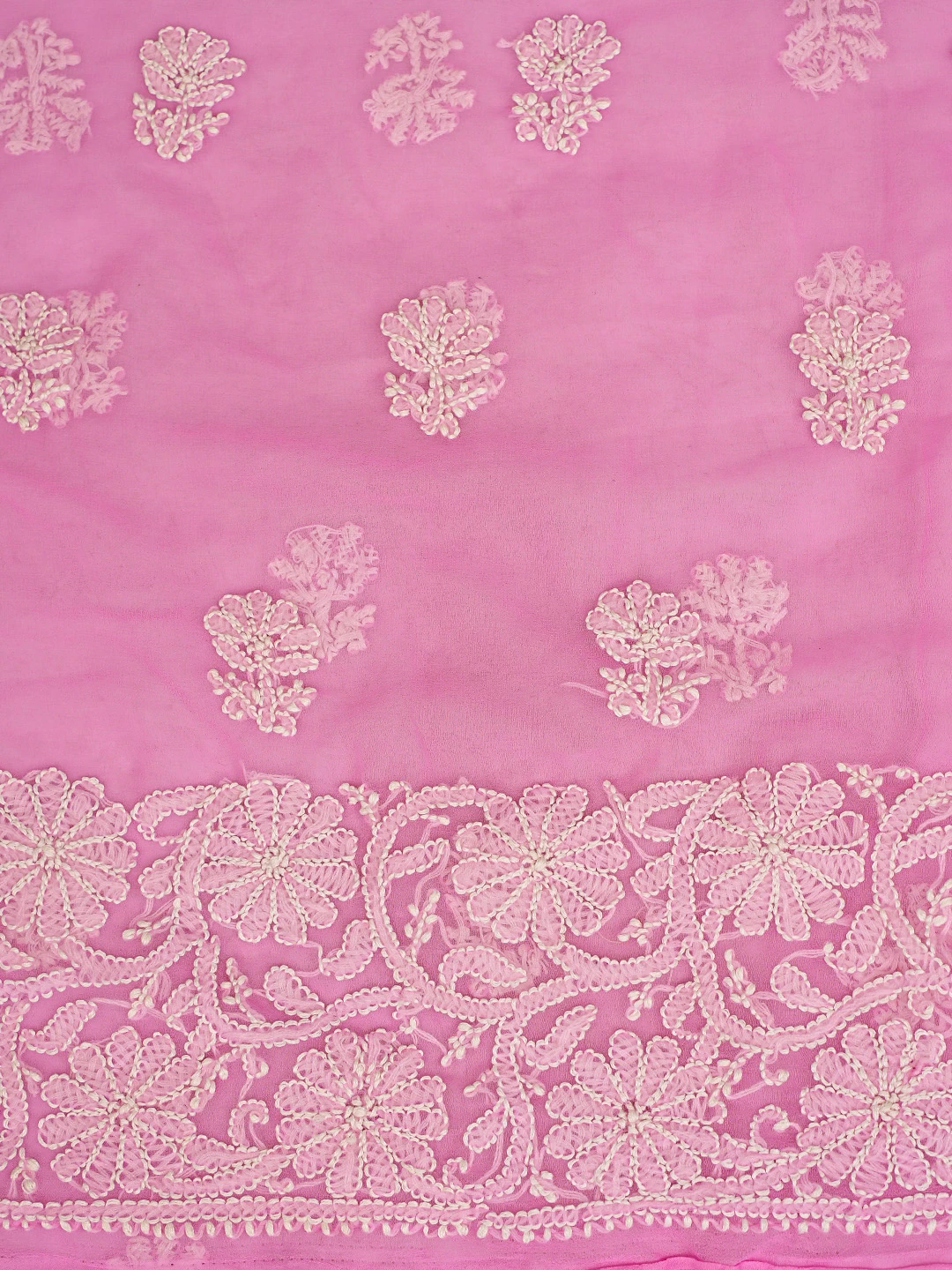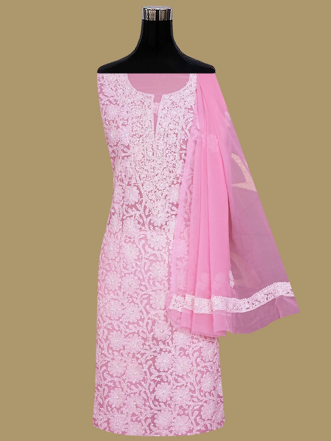 Ada Hand Embroidered Pink Georgette Lucknowi Chikan Unstitched Suit Piece 01A859809